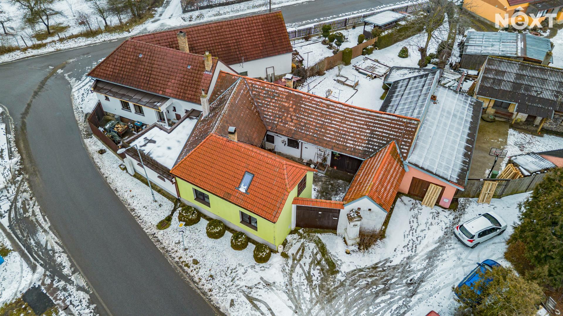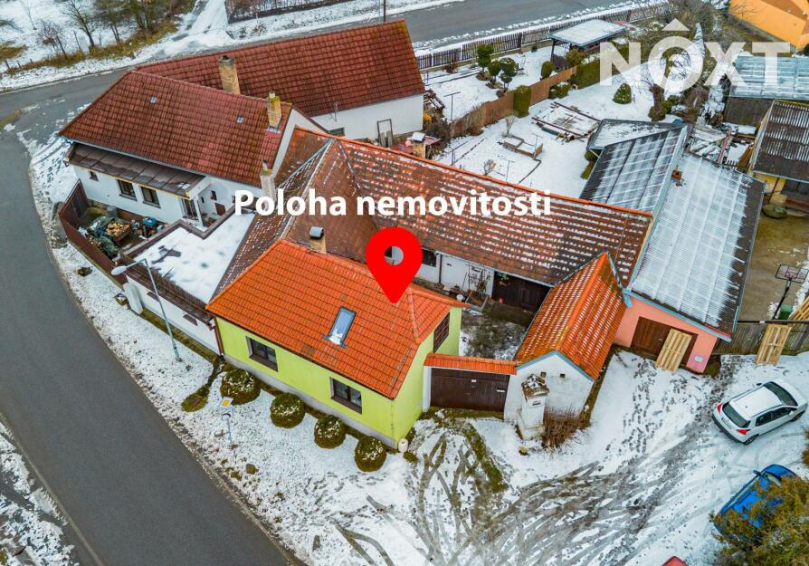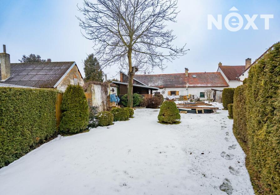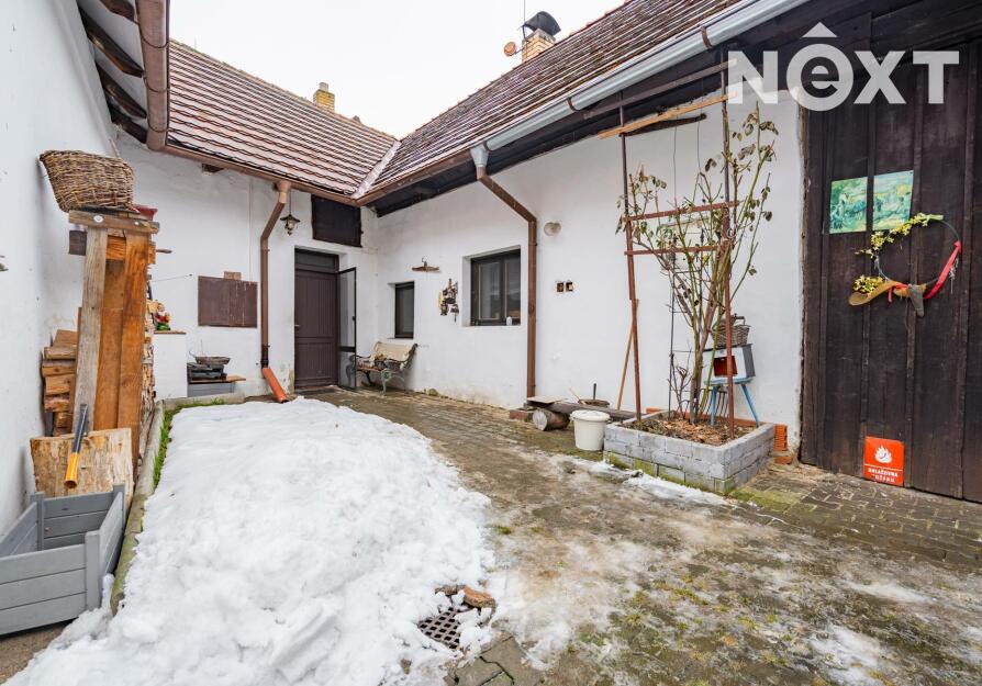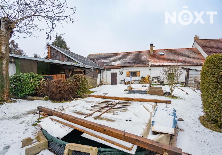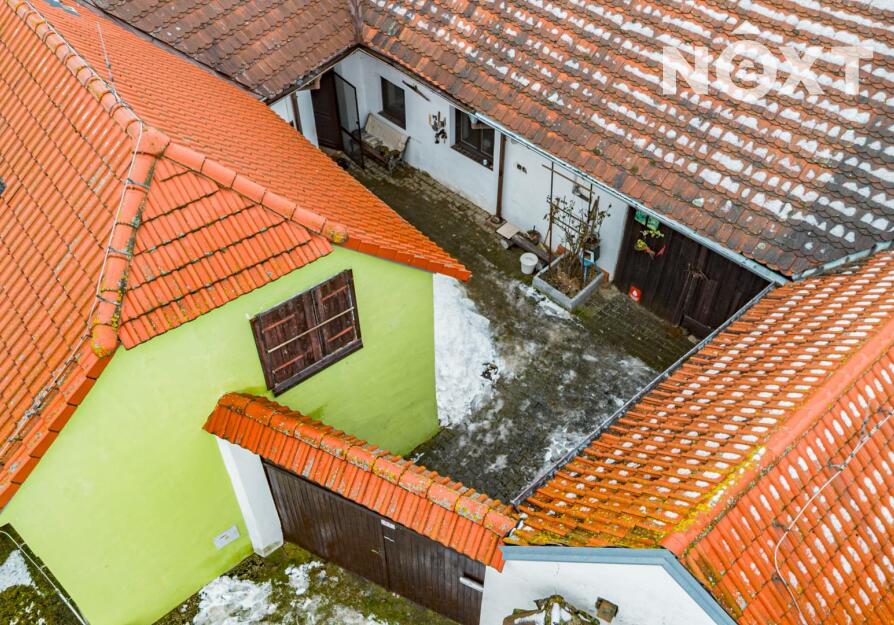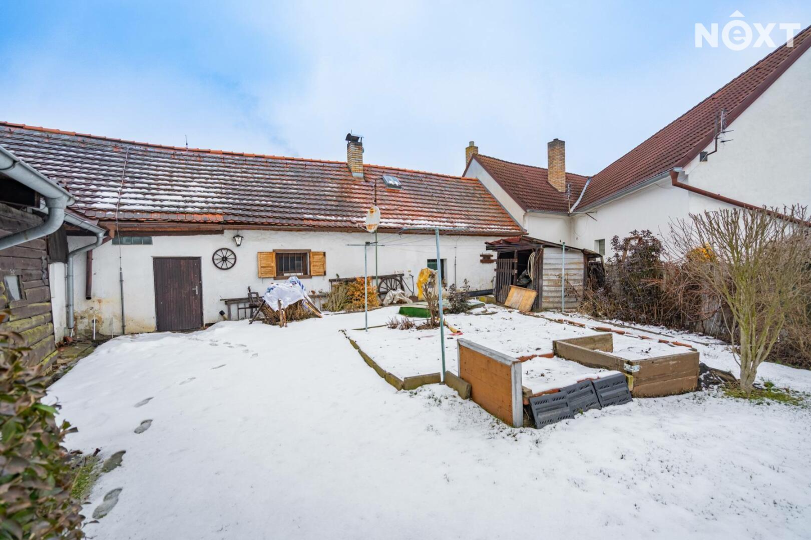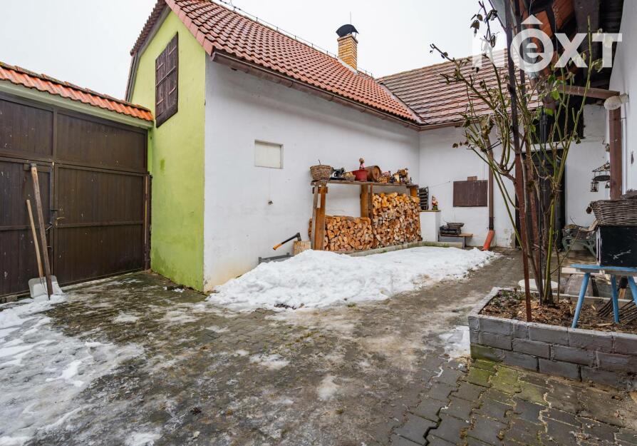 Nemovitost je vystavěna kolem uzavřeného dvora, který poskytuje maximální soukromí a typickou atmosféru venkovské usedlosti. Na dvůr navazuje garáž s dílnou, a dále vstup na oplocenou zahradu o výměře 282 m².