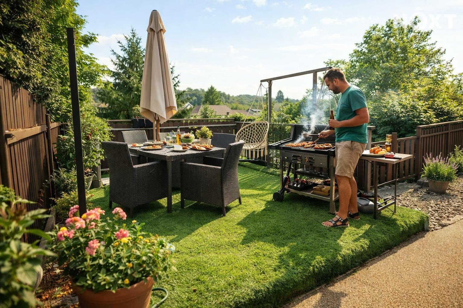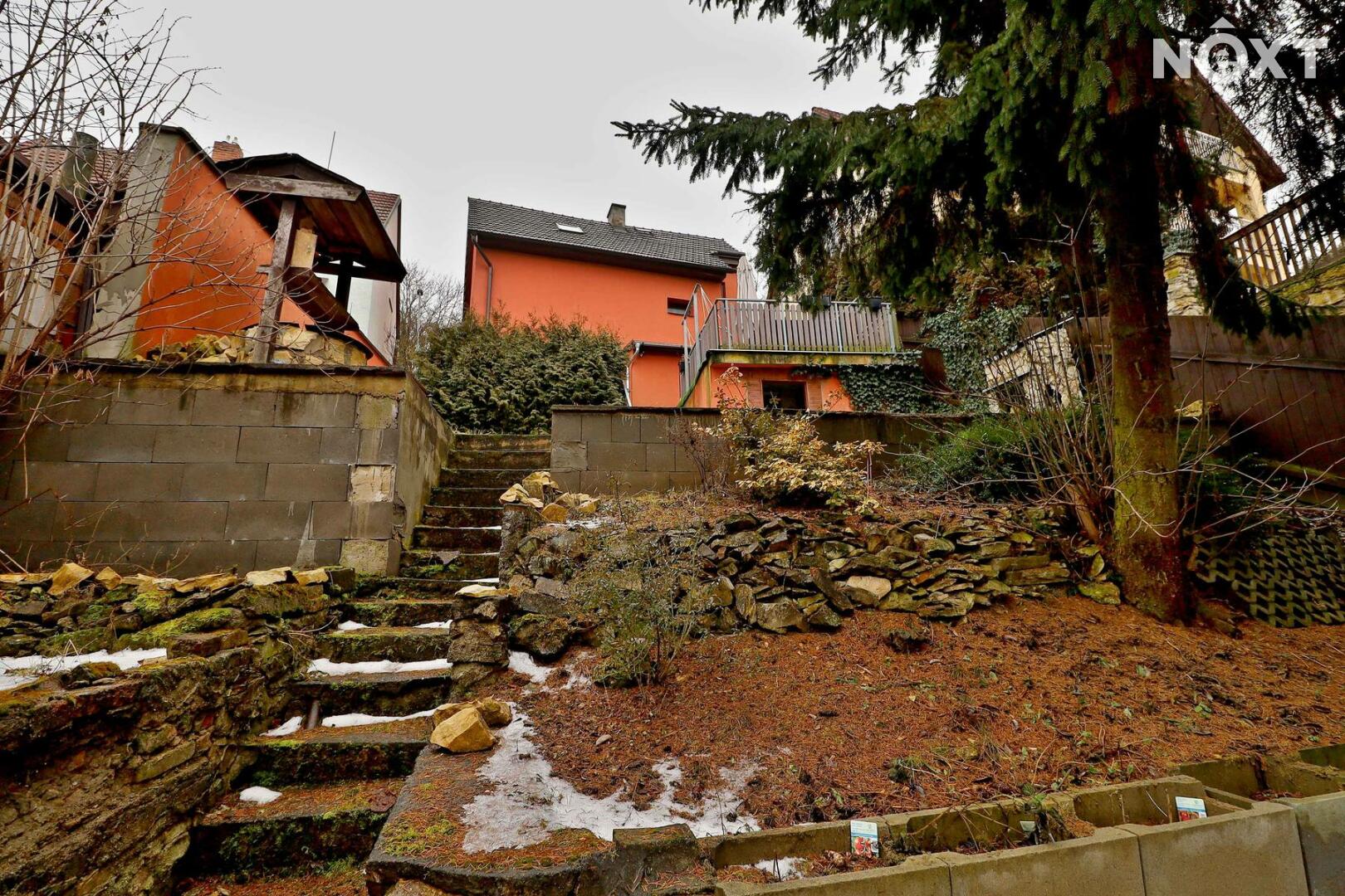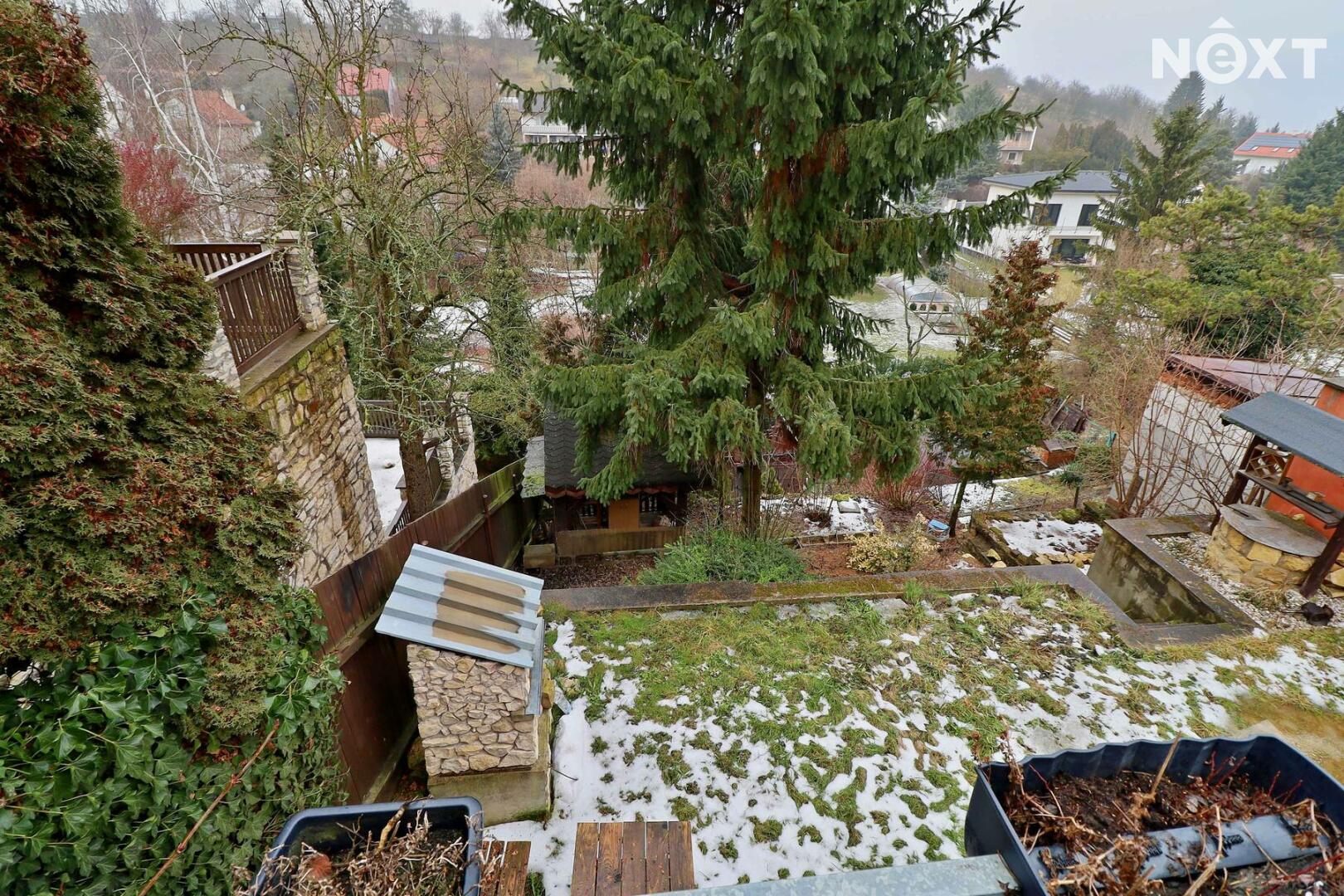 Zahrada za domem je kaskádovitá, v úrovni domu se nachází terasa s posezením a také studna pro užívání na zahradu.