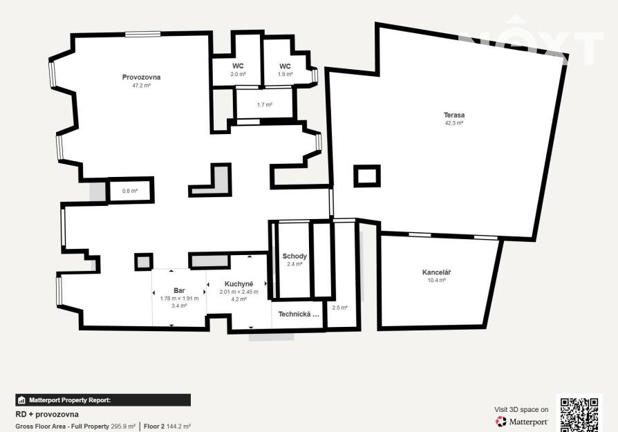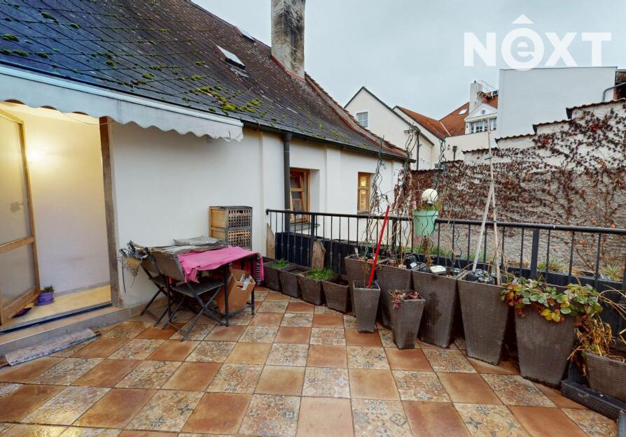 V horním podlaží se nachází bytová jednotka 2+1 o celkové ploše 114 m² s terasou orientovanou do dvora.