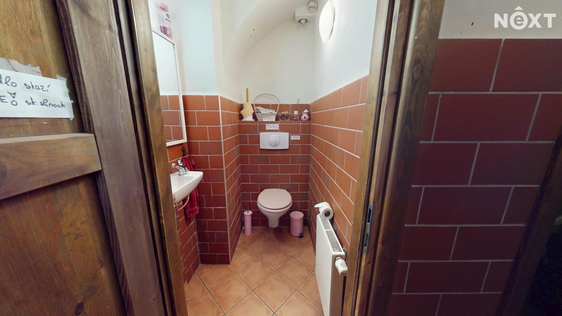 Z chodby je přímý vstup na dvůr s venkovním posezením a grilem, ideální pro sezónní provoz, akce nebo rozšíření služeb.