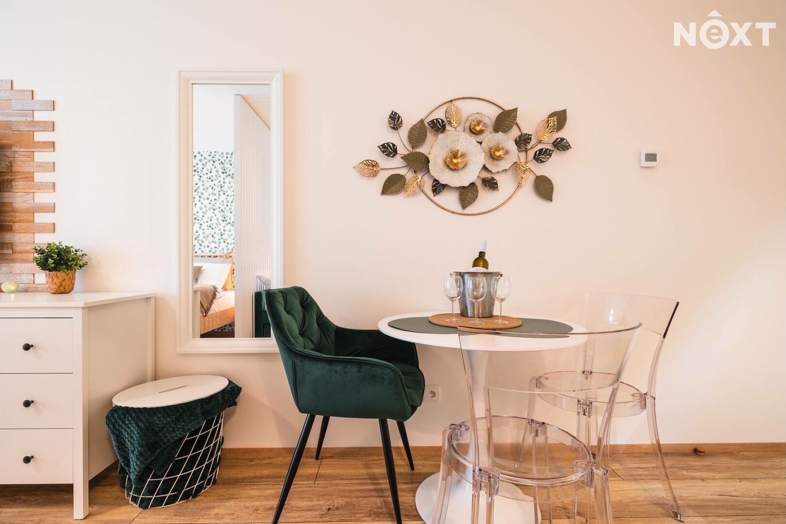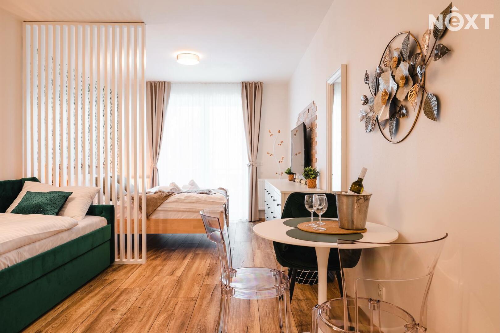 K apartmánu je možné dokoupit kryté garážové stání za cenu 400.000 Kč, což zajišťuje komfortní parkování po celý rok. Pro komunikaci uvádějte evidenční číslo zakázky N116212.