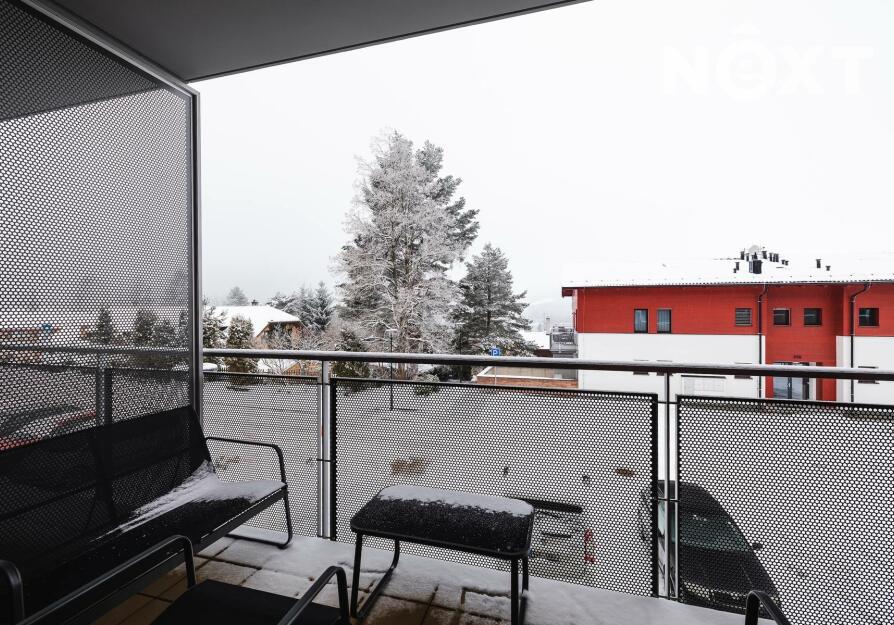 Apartmán má užitnou plochu 33 m² a jeho velkou předností je prostorný balkon o výměře 5,5 m², ideální pro ranní kávu, relax nebo posezení po dni stráveném u vody či na horách. K apartmánu dále náleží sklepní kóje o velikosti 2 m², která poskytuje praktický úložný prostor například pro sportovní vybavení.