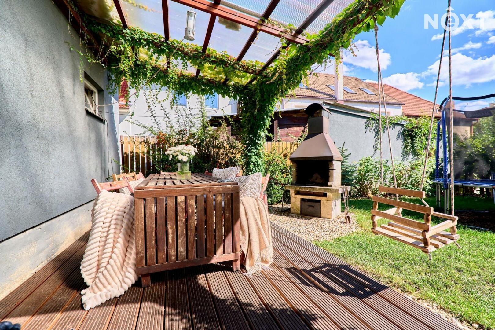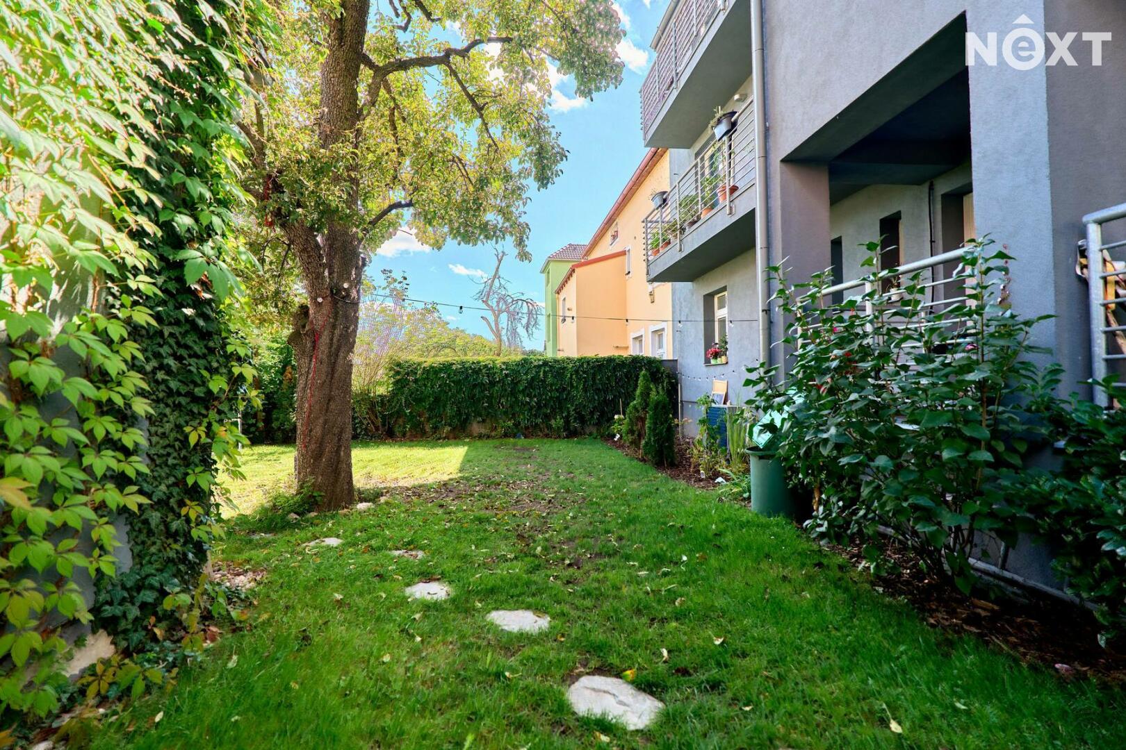 K bytu náleží garážové stání s pohodlným vjezdem přímo z ulice a spoluvlastnický podíl na krásné zahradě, kde můžete trávit volné chvíle s rodinou či přáteli u posezení nebo grilování.