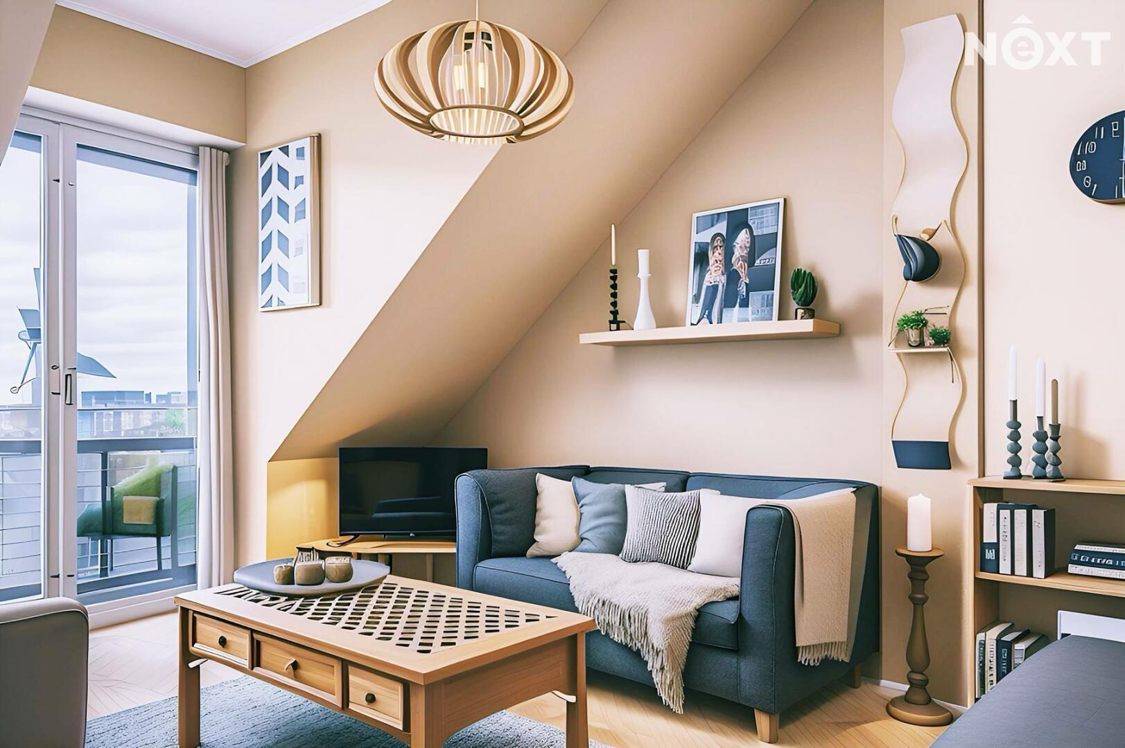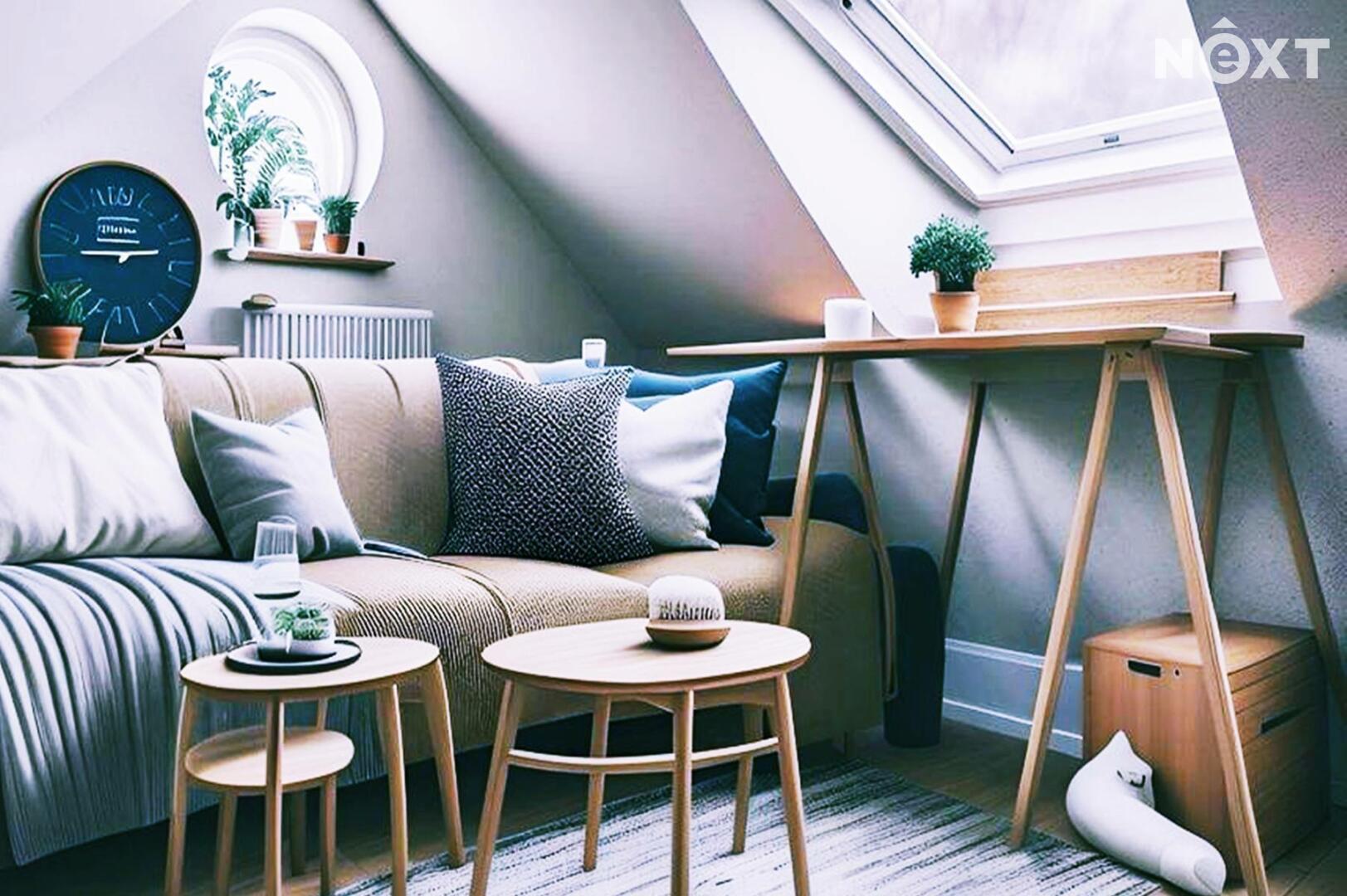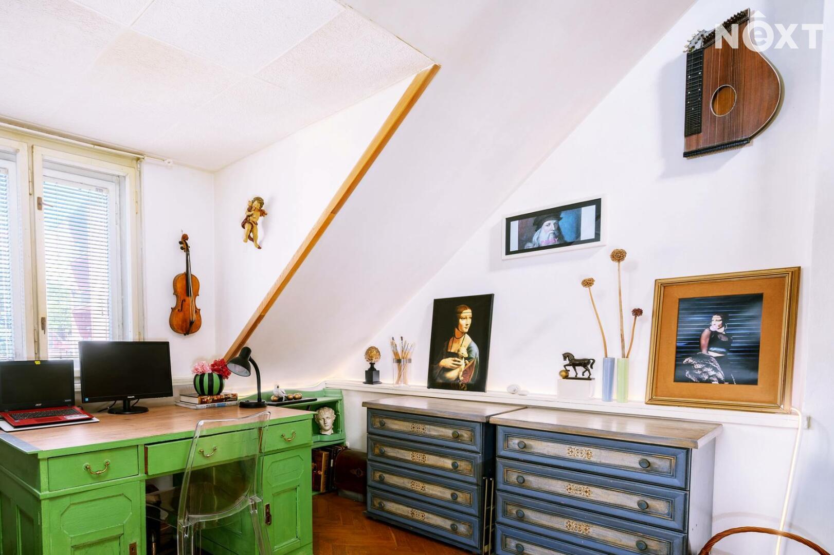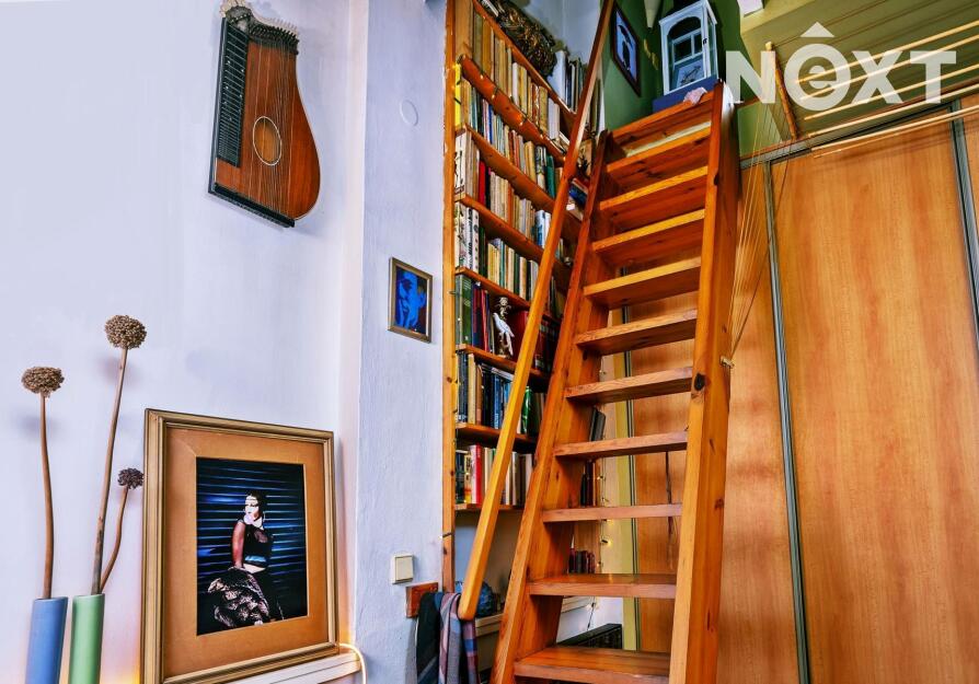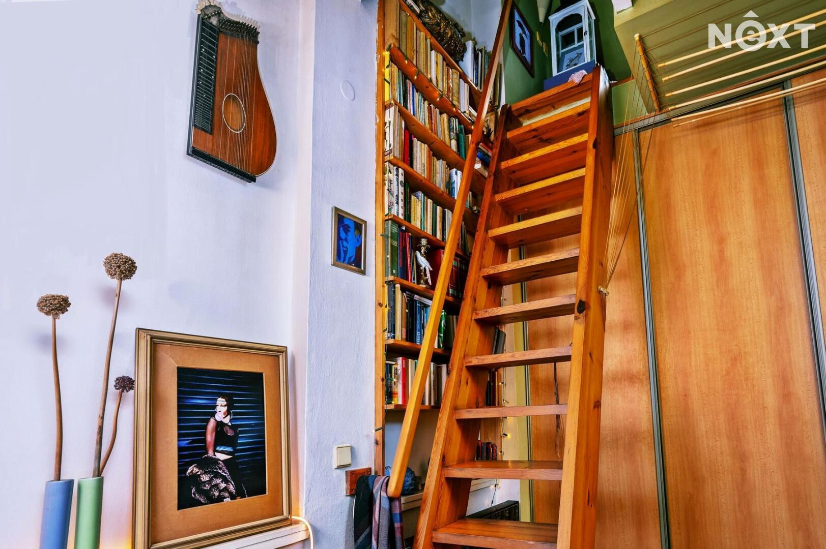 Jedinečné bydlení s orientací na jih a sever vzniklo v 90. letech rozšířením a citlivou přestavbou půdního bytu v menším prvorepublikovém domě. Stojí za ní tým akad. architektů, jenž promyšleně navrhl nejen praktickou dispozici všech neprůchozích místností, ale i chytré a estetické detaily, které bytu dodaly charakter.
