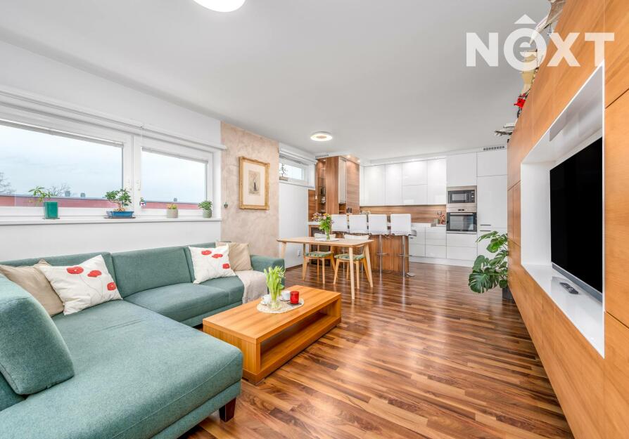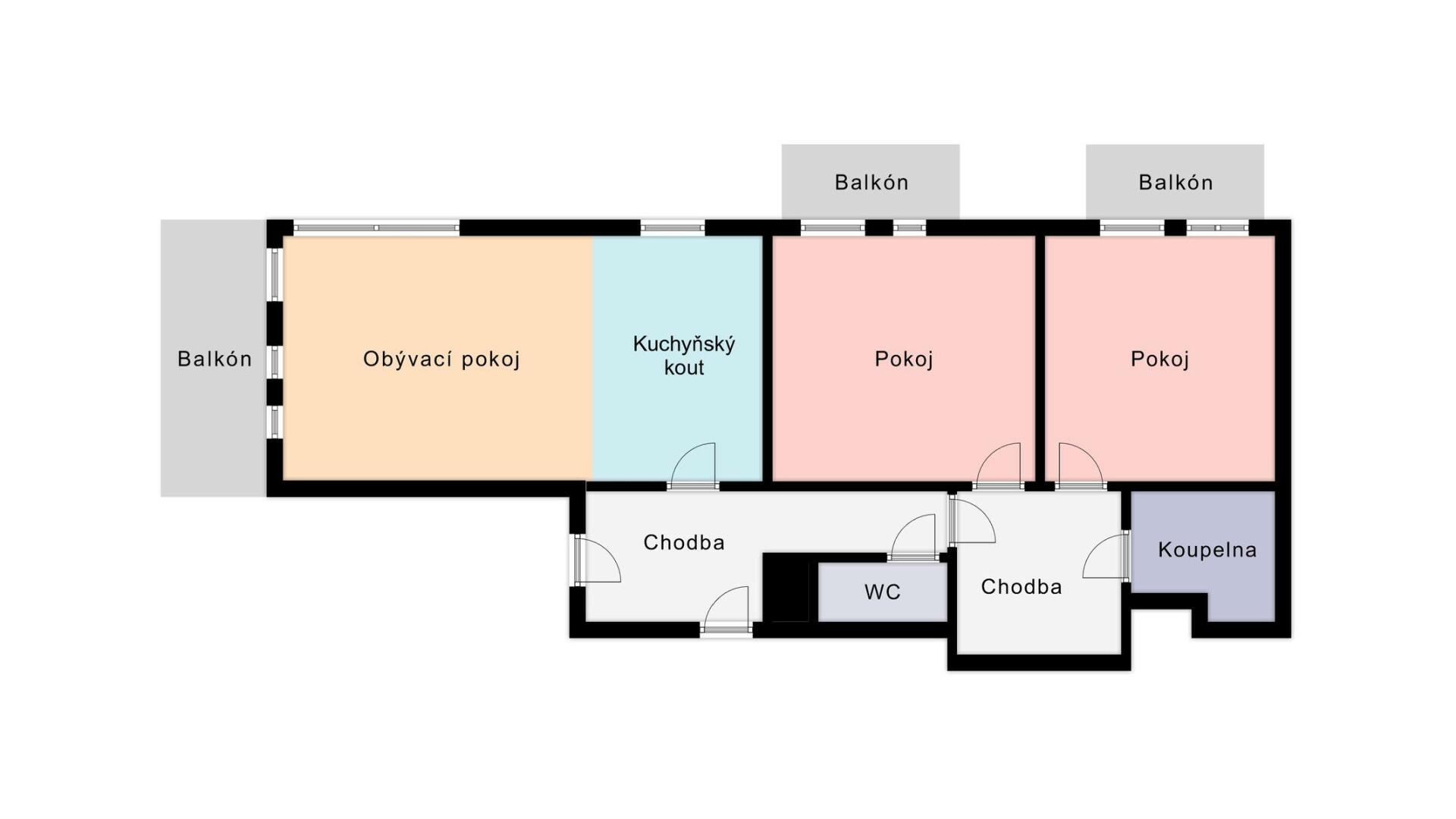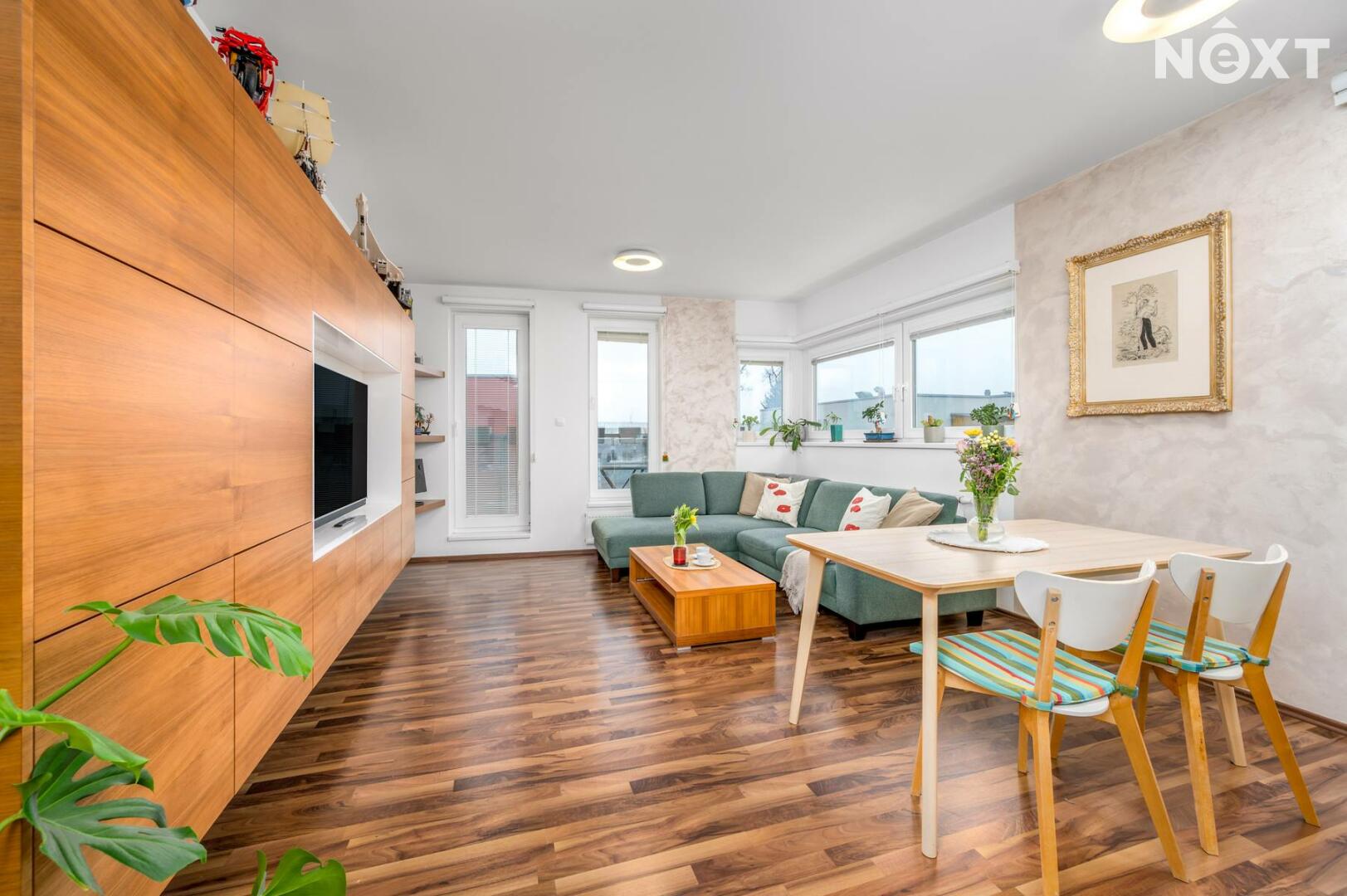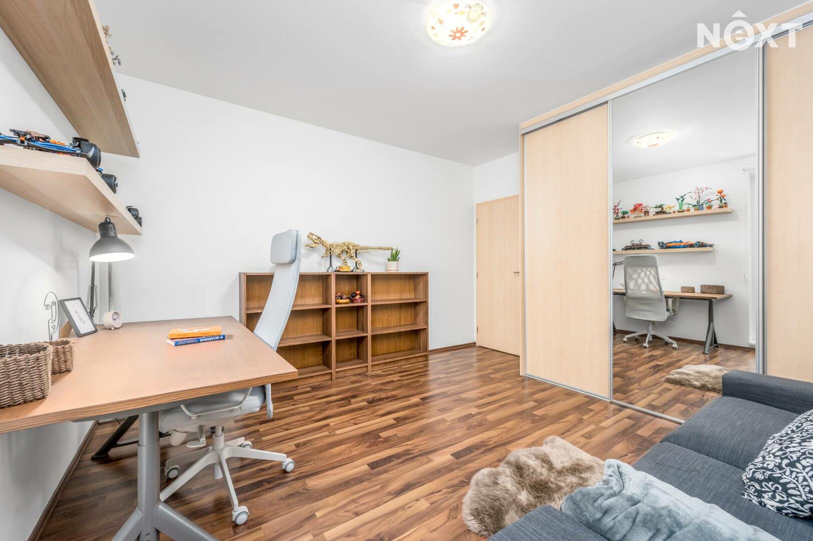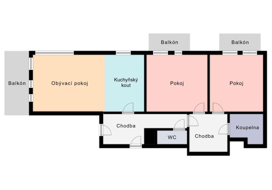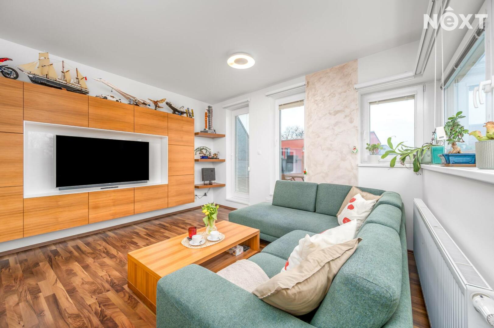 Interiér je světlý, logicky uspořádaný a působí velmi civilně – nic nepůsobí okázale, ale všechno funguje. Obývací část s kuchyní je přirozeným srdcem bytu, místem pro společný čas i běžný rodinný provoz. Dvě samostatné ložnice poskytují klid na spaní, práci i dětský svět. Tři balkony nejsou jen číslo v inzerátu – každý z nich rozšiřuje byt o další využitelný prostor, ať už pro ranní kávu, bylinky nebo tiché večery venku.