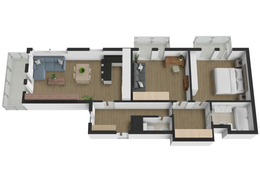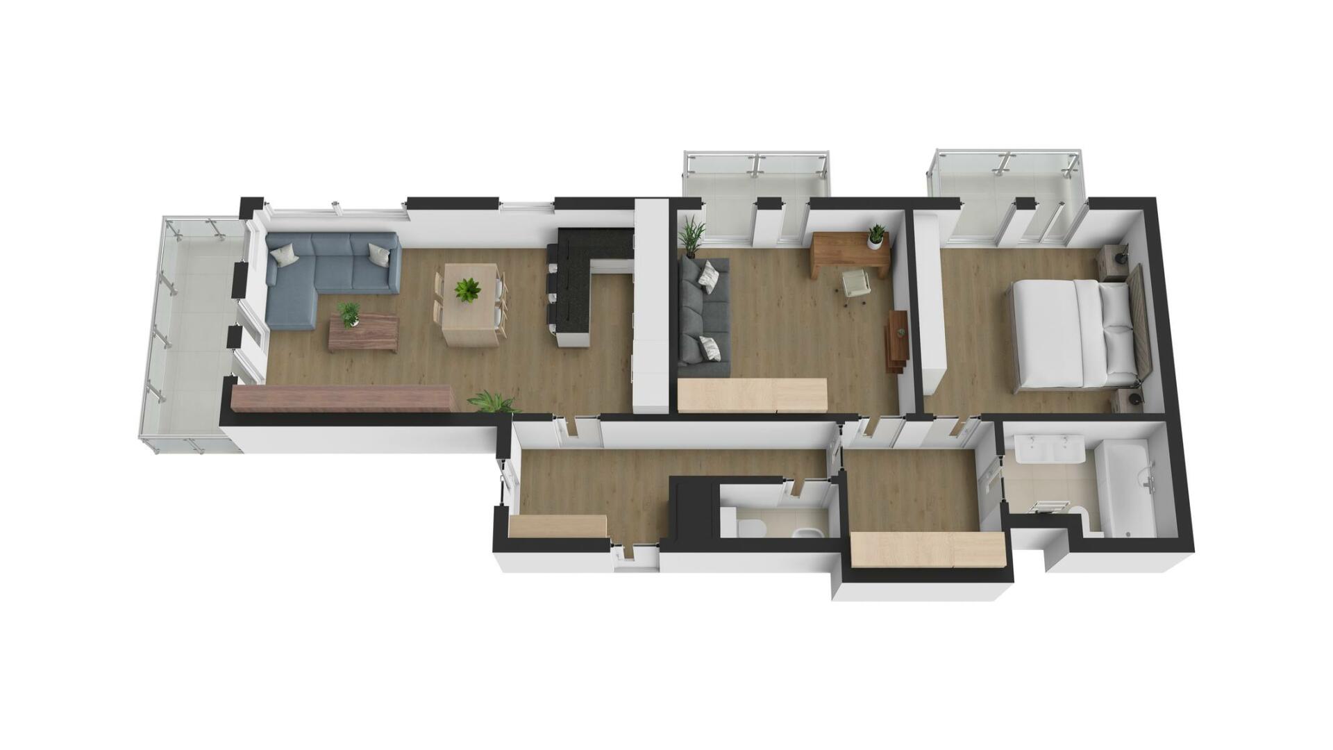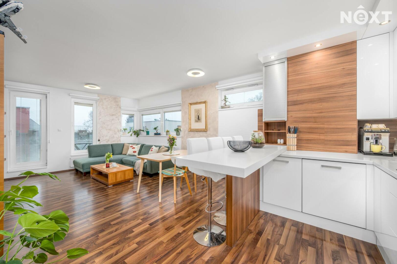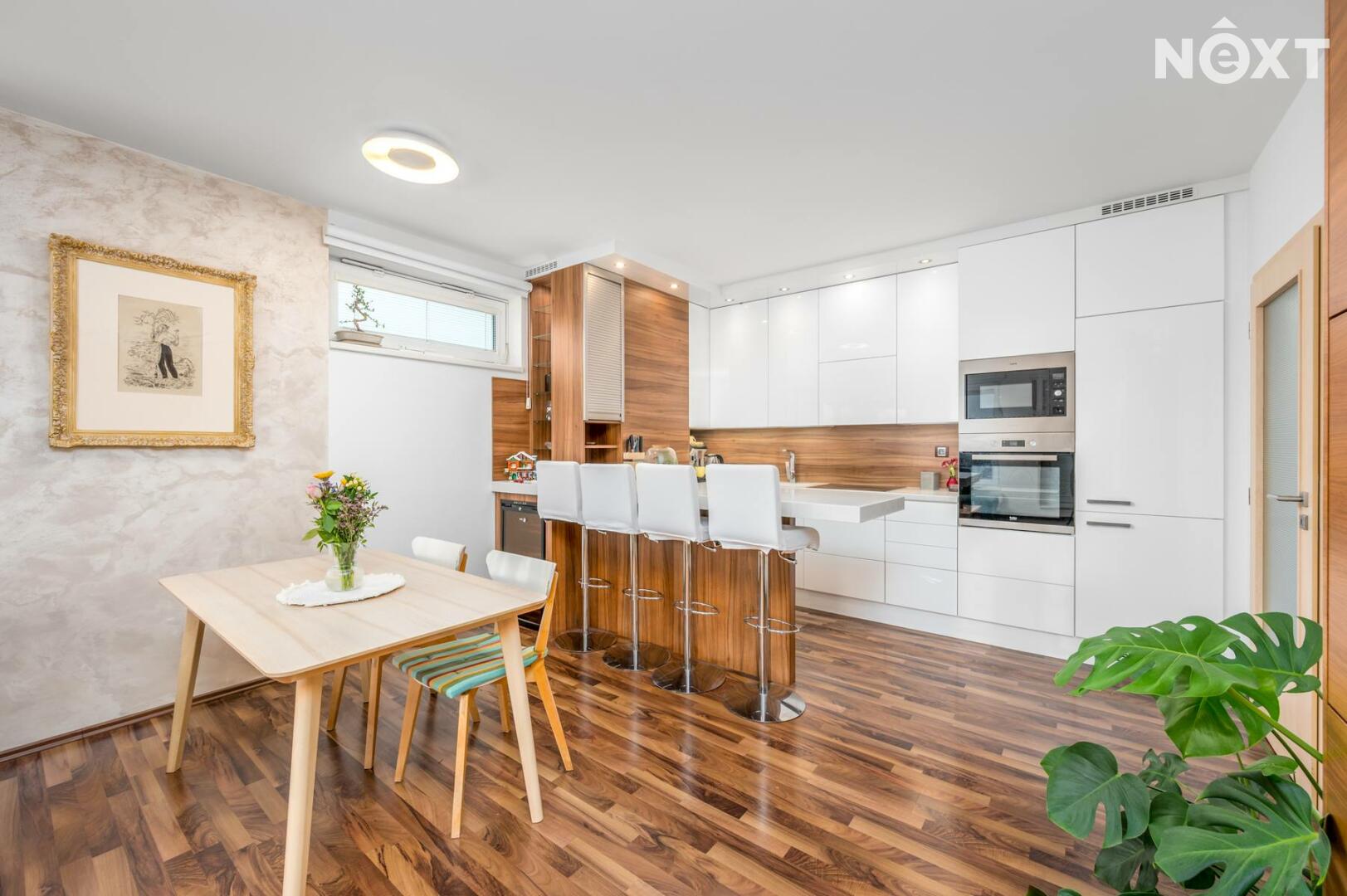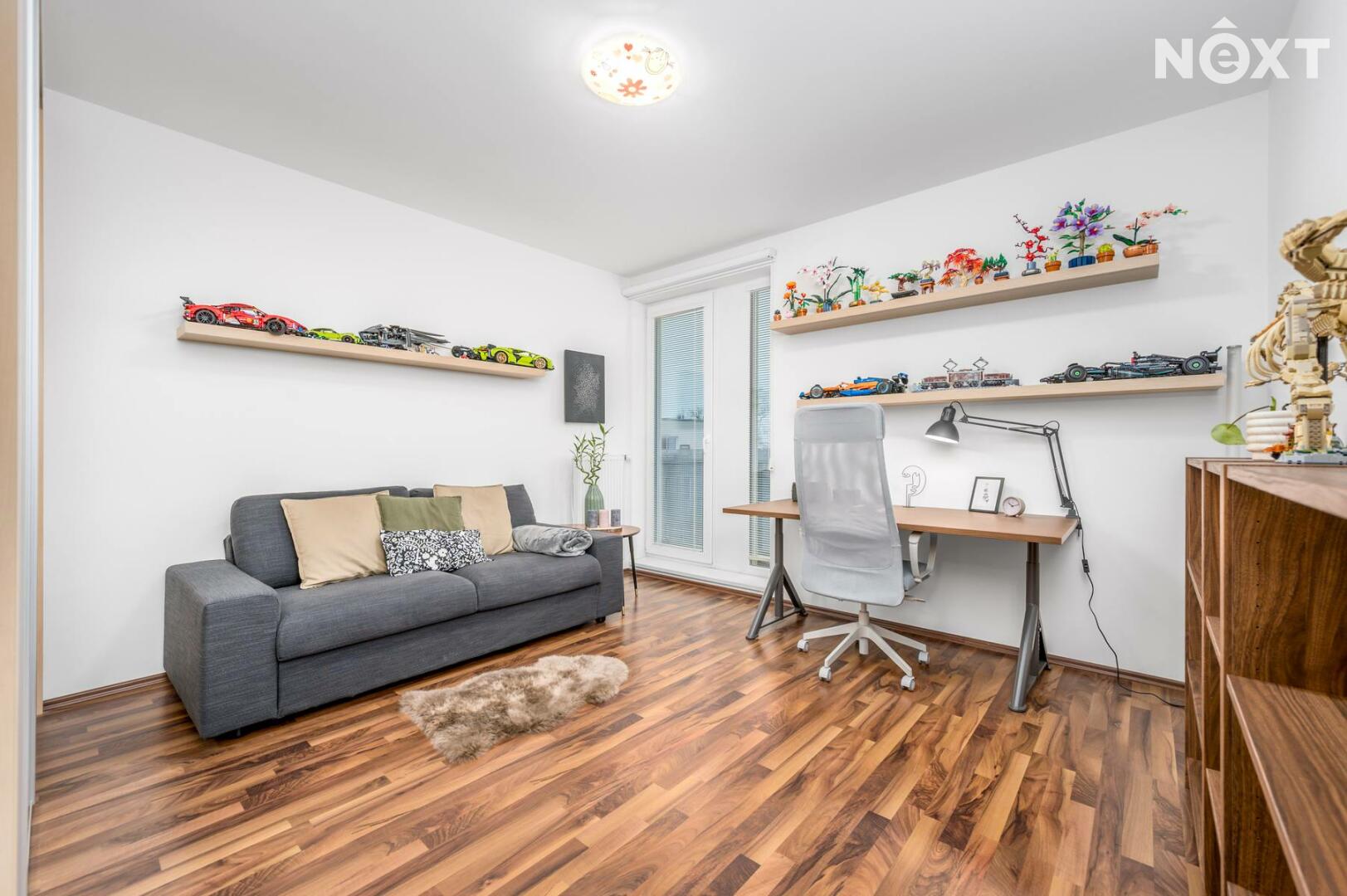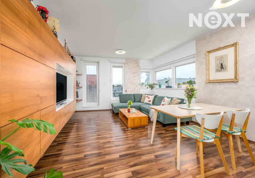 Interiér je světlý, logicky uspořádaný a působí velmi civilně – nic nepůsobí okázale, ale všechno funguje. Obývací část s kuchyní je přirozeným srdcem bytu, místem pro společný čas i běžný rodinný provoz. Dvě samostatné ložnice poskytují klid na spaní, práci i dětský svět. Tři balkony nejsou jen číslo v inzerátu – každý z nich rozšiřuje byt o další využitelný prostor, ať už pro ranní kávu, bylinky nebo tiché večery venku.