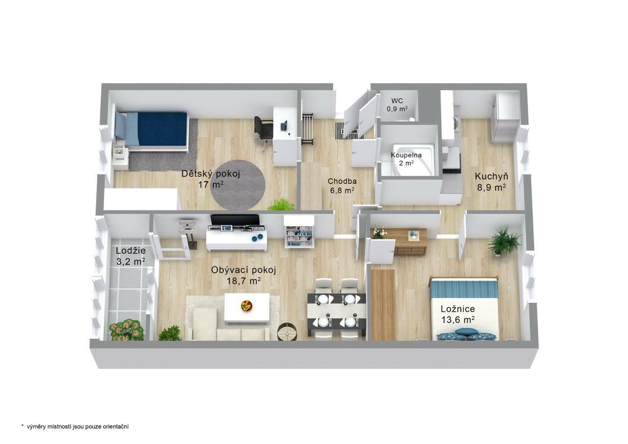 Nabízíme k prodeji byt v osobním vlastnictví o dispozici 3 + 1 se zasklenou lodžií, o celkové velikosti 72m2, který se nachází v sídlištní části města Chodova, v ulici Osadní.