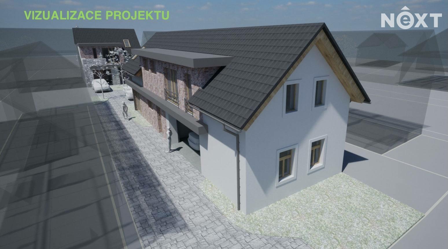 Součástí projektu je také samostatná garáž s prostorným zázemím, které může sloužit jako dílna, ateliér nebo plnohodnotná obytná jednotka – ideální řešení pro vícegenerační bydlení nebo podnikání z domova.