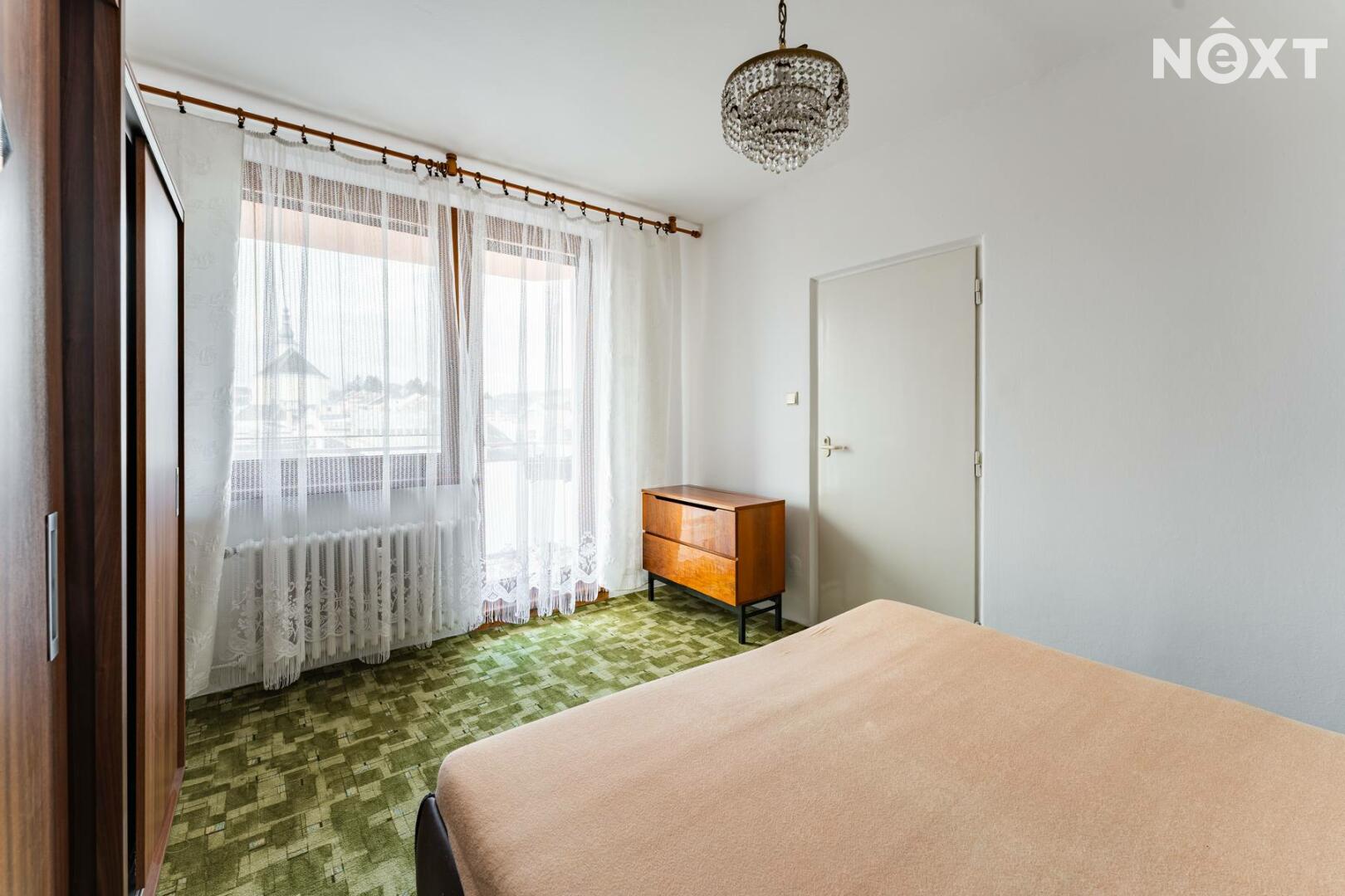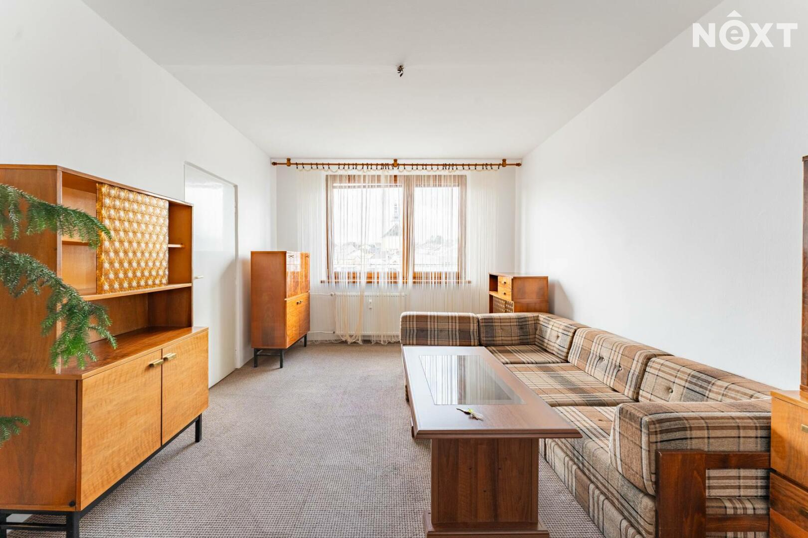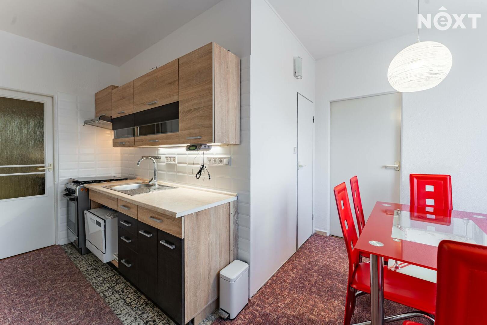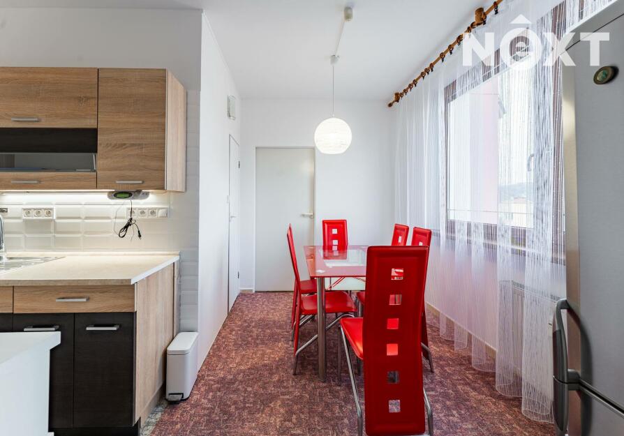 Dispozice je řešena velmi prakticky. Po vstupu do bytu se nachází chodba, ze které se dostanete do obývacího pokoje. Kuchyň je vybavena kuchyňskou linkou, plynovým sporákem a lednicí. V koupelně najdete sprchový kout, umyvadlo se zrcadlem a pračku. Dále v bytě naleznete dva prostorné neprůchozí pokoje přičemž jeden z nich nabízí vstup na lodžii. Velkou výhodou je samostatná šatna v bytě, která nám nabízí spoustu úložného prostoru.