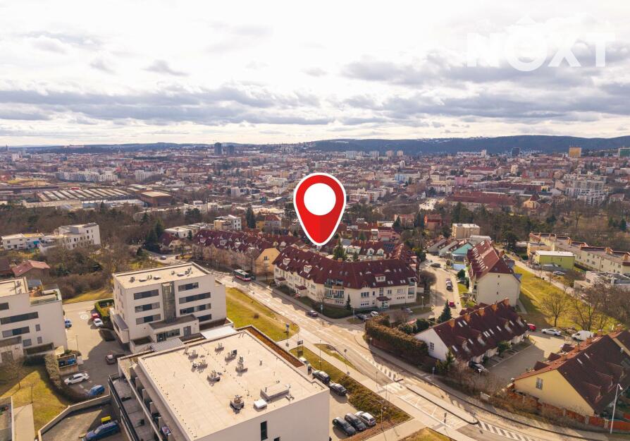 Velkou výhodou je samotná lokalita. V docházkové vzdálenosti se nachází supermarket Albert nebo kavárna. Zastávka MHD je téměř před domem, což zajišťuje pohodlné a rychlé spojení do centra Brna. Okolí nabízí také dostatek zeleně a přírody pro aktivní odpočinek.