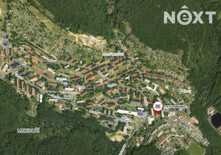 Byt se nachází v klidné a vyhledávané lokalitě Meziboří s kompletní občanskou vybaveností. V docházkové vzdálenosti najdete základní a mateřskou školu, obchody, poštu, lékaře a další služby. Zastávka MHD je vzdálena pouze 150 metrů s pravidelným spojením do Litvínova a okolí. Lokalita nabízí také sportovní vyžití, městskou knihovnu a dětská hřiště.