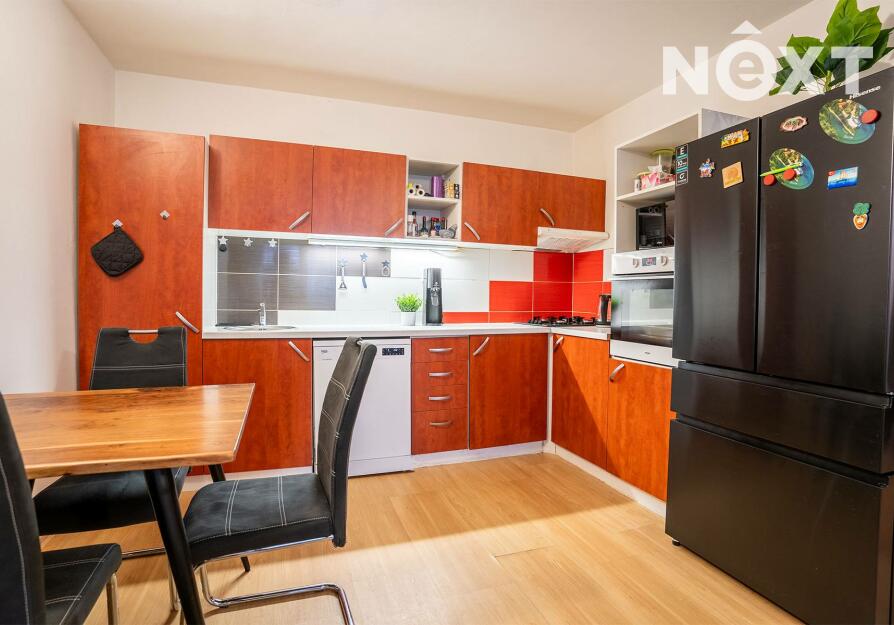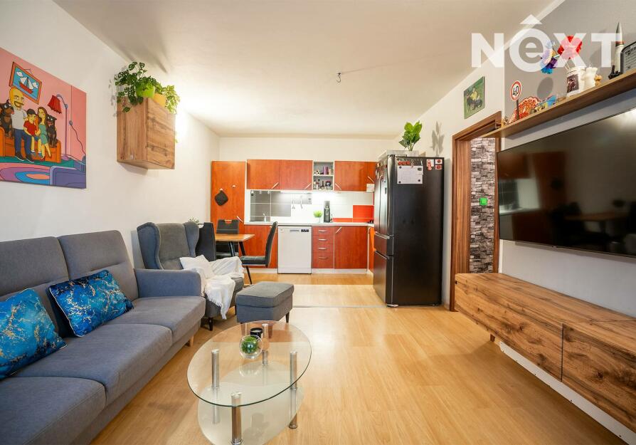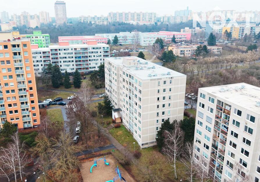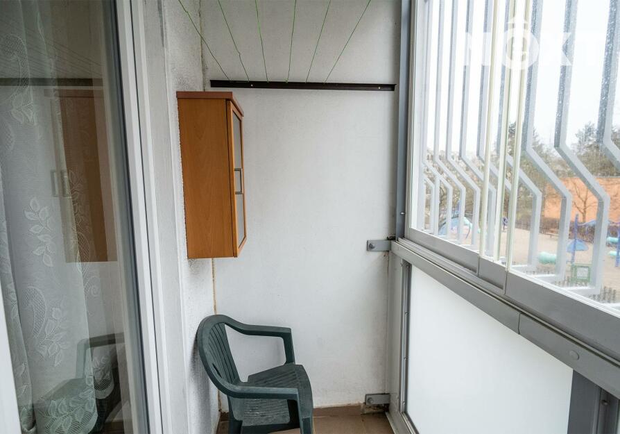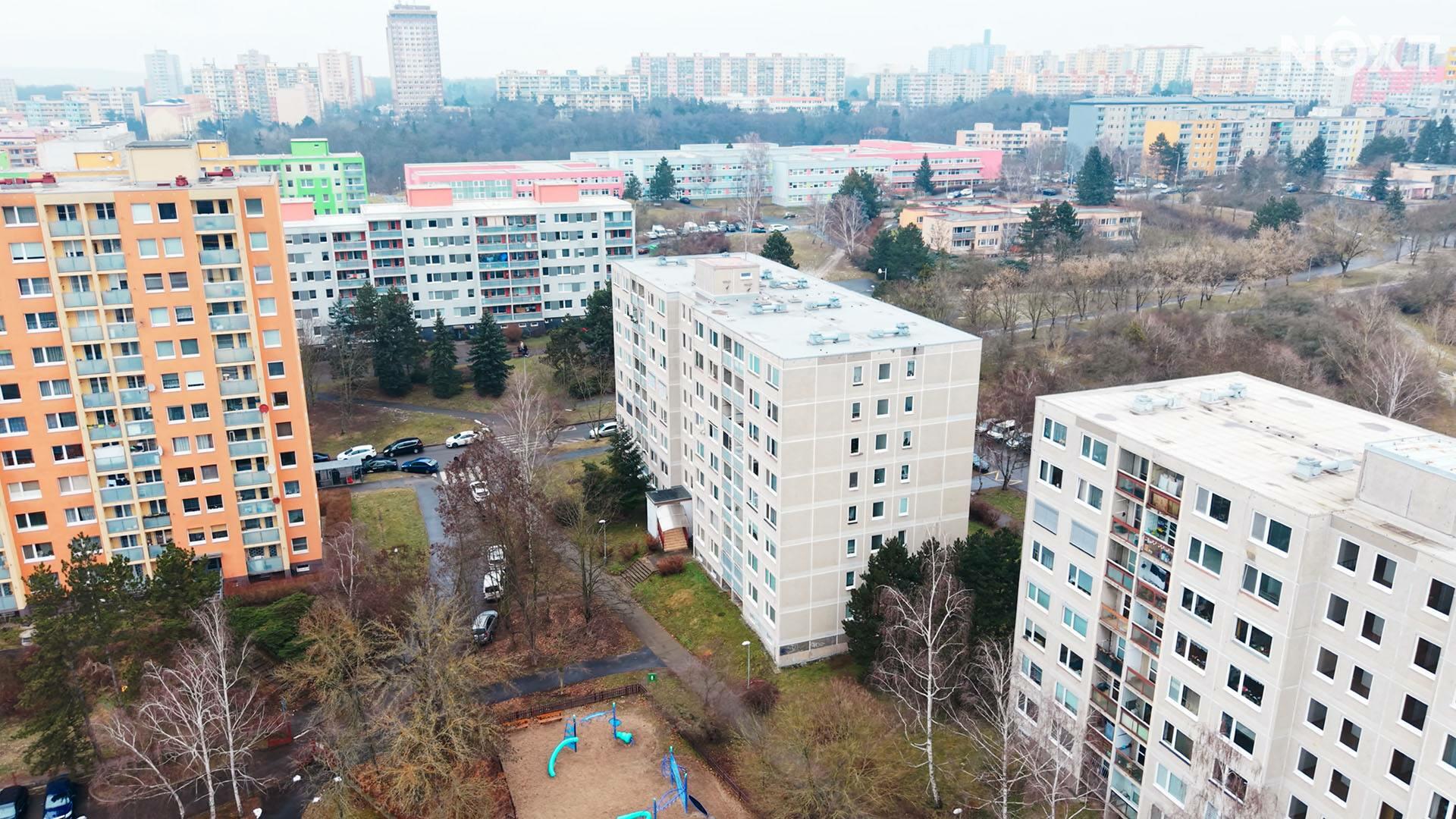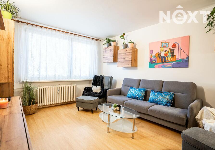 Byt má dispozici 3+kk a výměru 58 m². Nachází se v 1. patře osmipatrového domu, takže se s nákupem nebudete tahat do schodů. Skládá se z obývacího pokoje s kuchyňským koutem, dvou pokojů, koupelny, samostatného WC a lodžie.