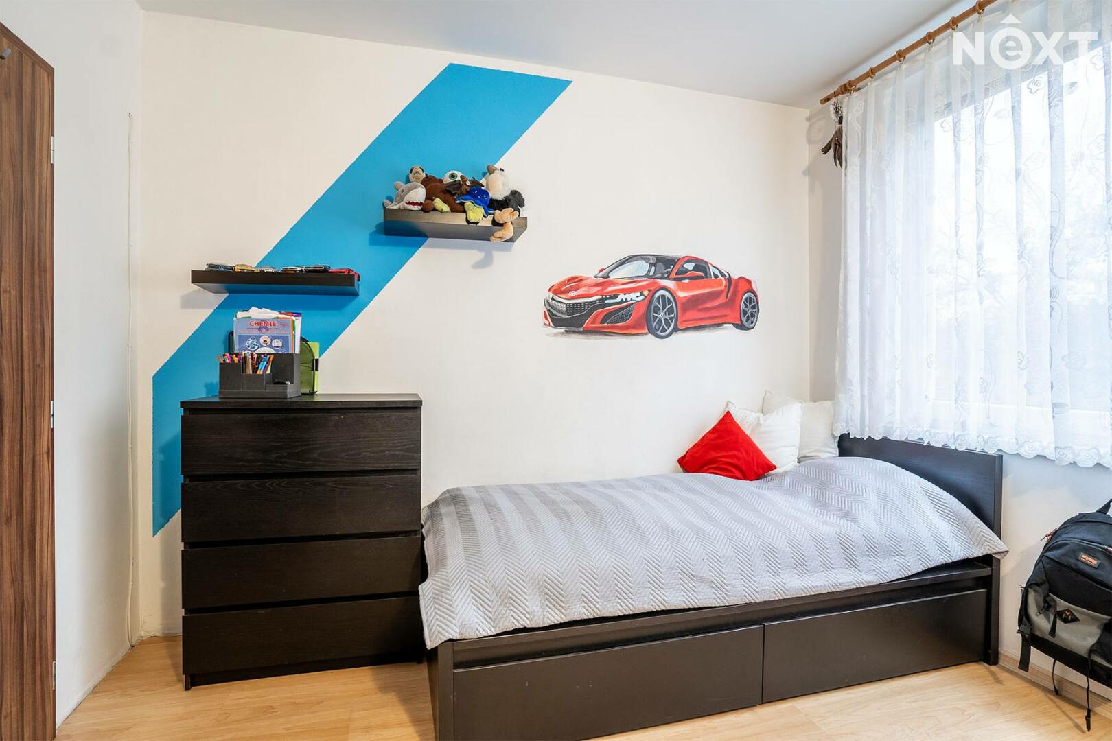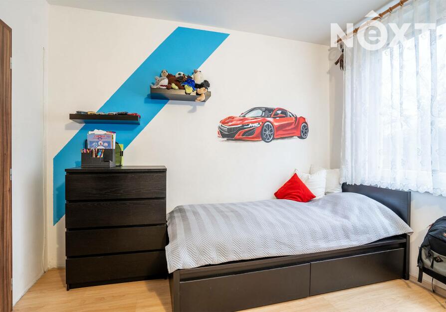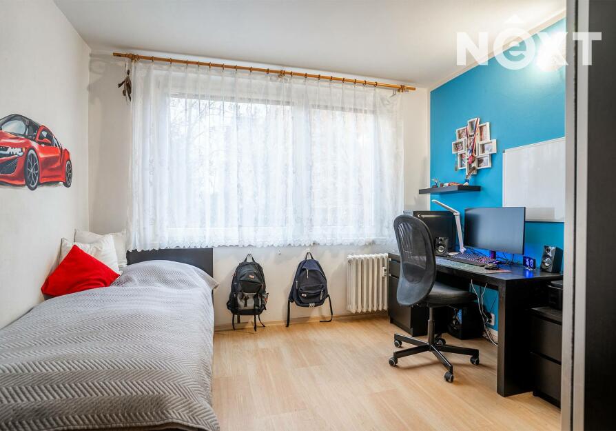 První ložnice má přístup na zasklenou lodžii, kde můžete sušit prádlo nebo pěstovat rajčata. A až děti vyrazí na hřiště pod okny, budete je mít pořád na očích. V dětském pokoji je dost místa na hračky i pracovní stůl.