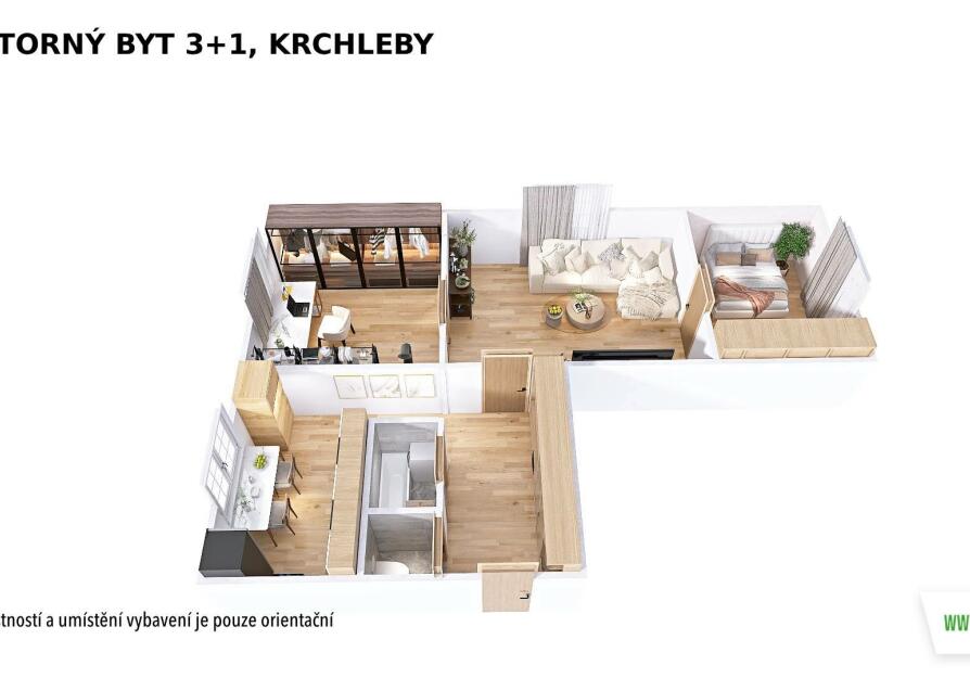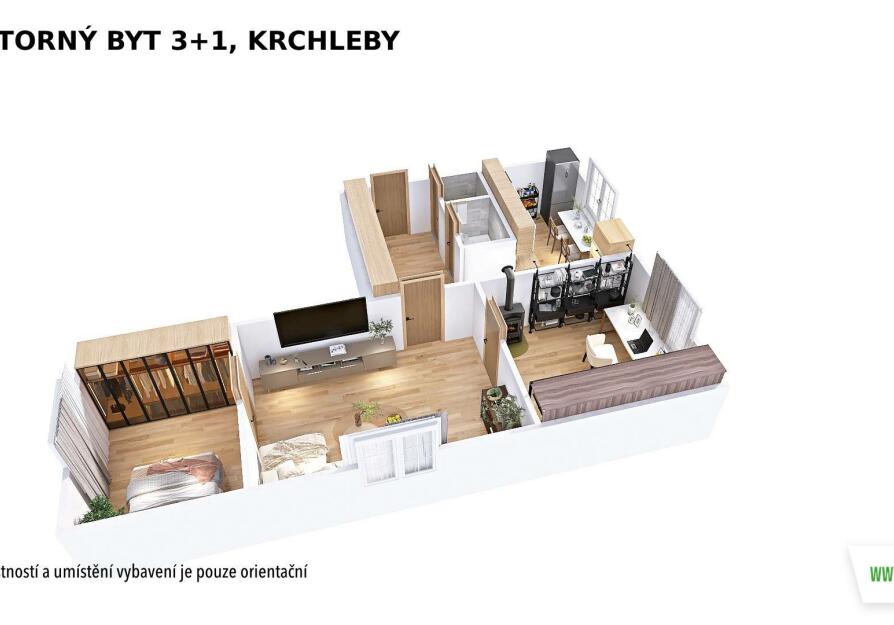 PRONÁJEM prostorného bytu 3+1, Krchleby