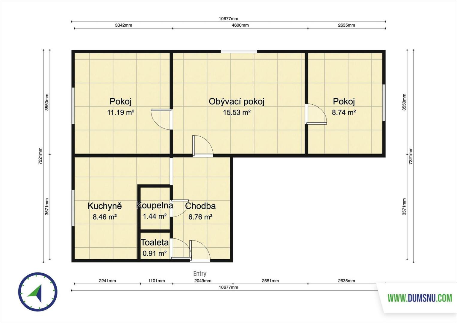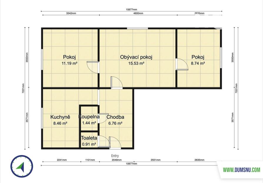 V bytě se nacházejí tři pokoje. Jeden z nich je průchozí a ideálně poslouží jako obývací pokoj, z něhož se vstupuje do dvou samostatných neprůchozích pokojů, které mohou sloužit jako ložnice, dětský pokoj či pracovna. K vytápění slouží krbová kamna umístěná v jednom z neprůchozích pokojů a elektrické přímotopy.