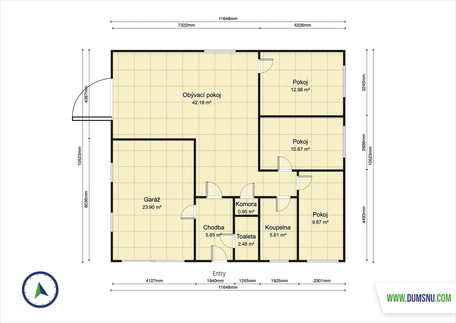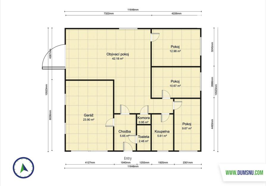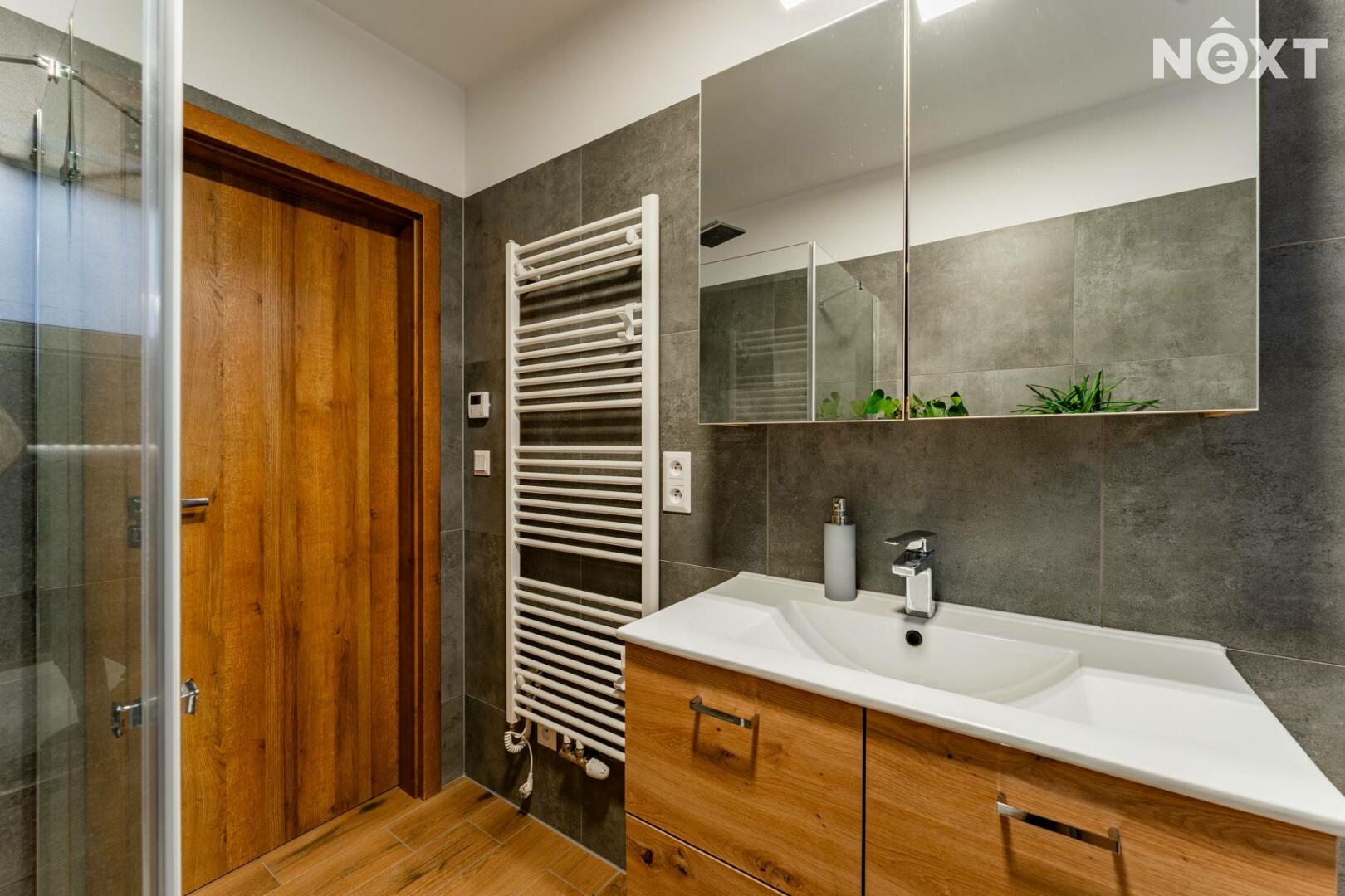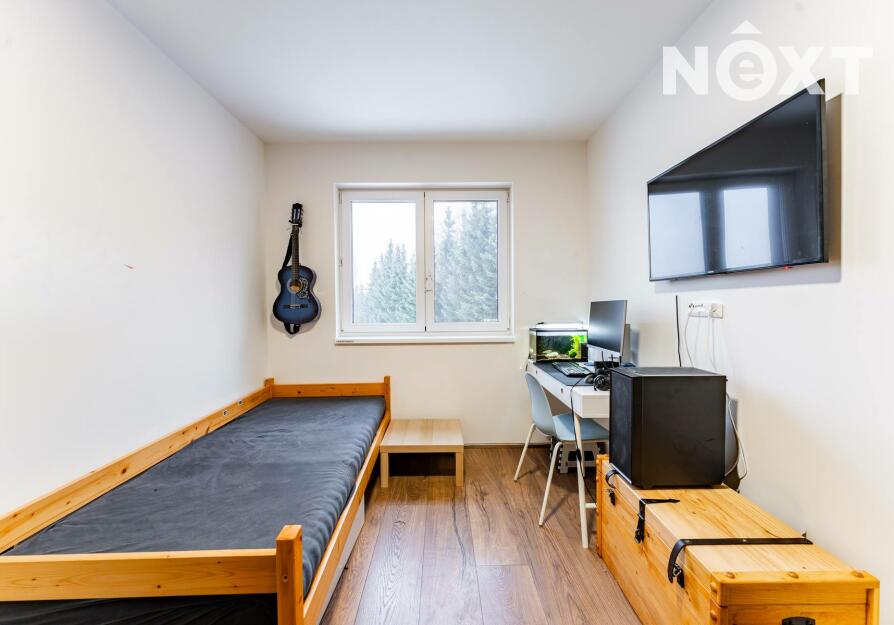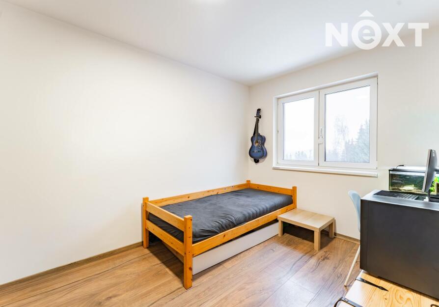 Dále zde naleznete samostatnou toaletu a moderní koupelnu vybavenou vanou i sprchovým koutem. K dispozici jsou také tři samostatné pokoje, které mohou sloužit jako ložnice, dětský pokoj nebo pracovna či studovna. Součástí domu je garáž a spíž, která poskytuje dostatek úložného prostoru.