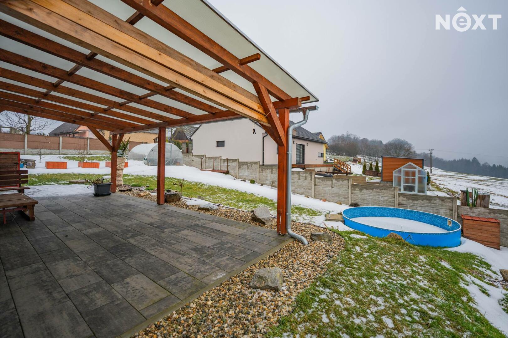 Na pozemku se nachází kulatý bazén, skleník a kůlna. Celý pozemek je oplocen betonovým plotem, který zajišťuje dostatek soukromí i bezpečí.