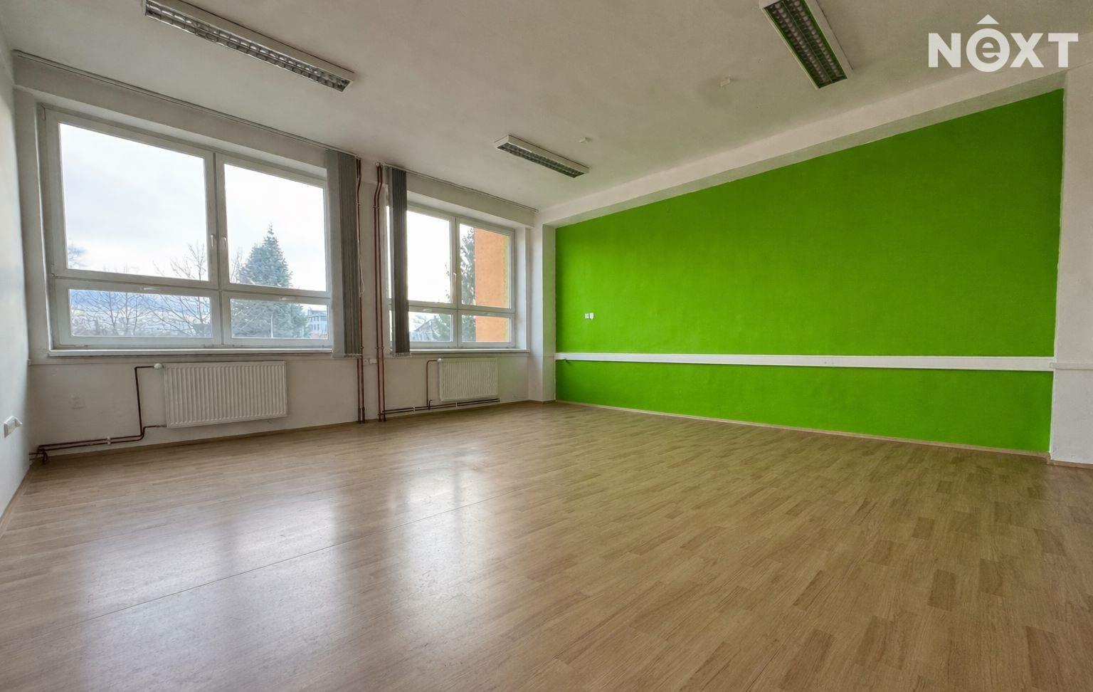 Nabízíme k pronájmu kancelář o celkové výměře 48 m², kterou tvoří jedna velká, prostorná místnost navazující na menší samostatnou místnost, již vybavenou nábytkem. Dispozičně je prostor velmi praktický a poskytuje dostatek soukromí i variability využití.