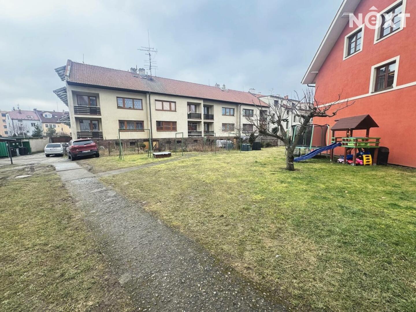 Příslušenstvím je lodžie, sklep a venkovní parkovací stání v uzavřeném dvoře se samostatným vjezdem.