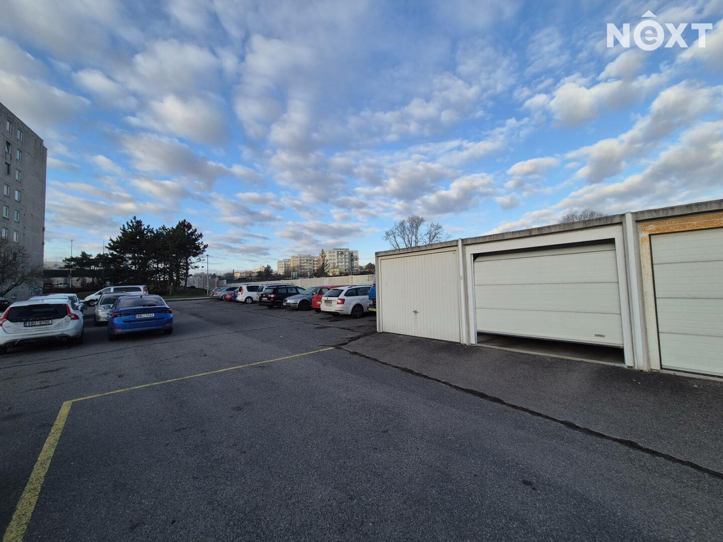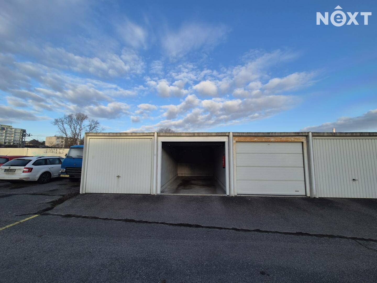 Garáž se nachází na vlastním pozemku. Elektrická vrata na dálkové ovládání. V garáži je osvetlění a el. zásuvka. Příjezdová komunikace je ve vlastnictví města.