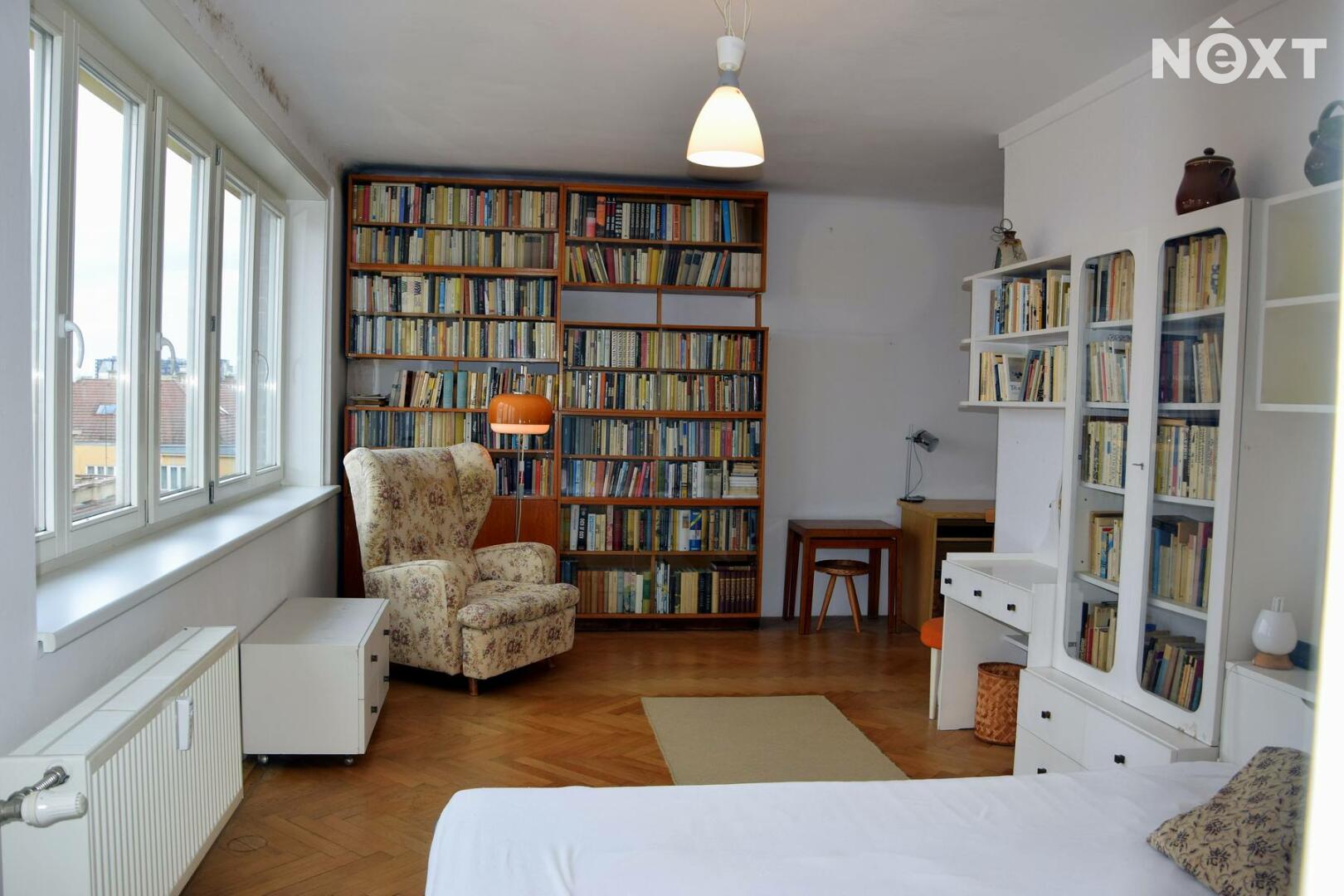 Velkorysá ložnice má samostatný vstup z haly. Dominantou pokoje jsou velká okna s nádherným výhledem do okolí a na vrch Vítkov.