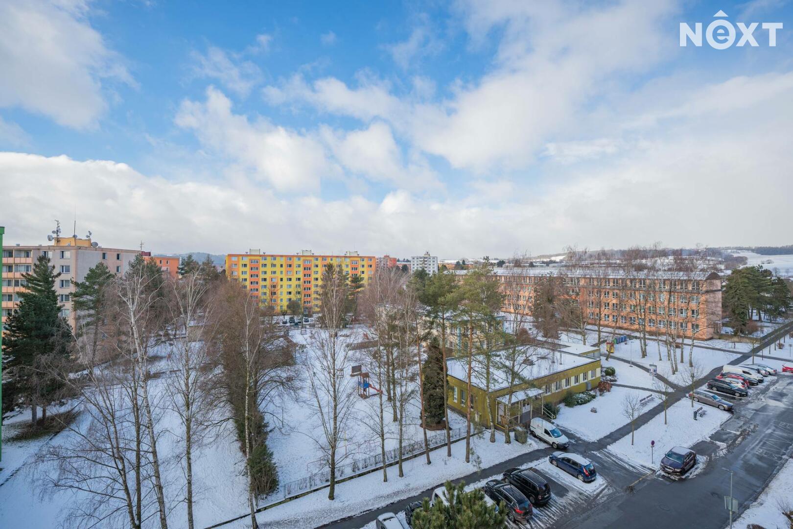 Panelový dům je po částečné revitalizaci: má plastová okna, novou fasádu se zateplením a výtah. Parkování je možné před domem.