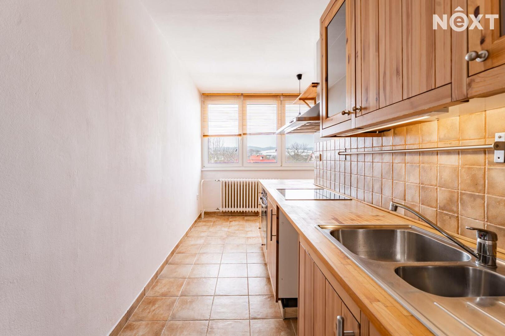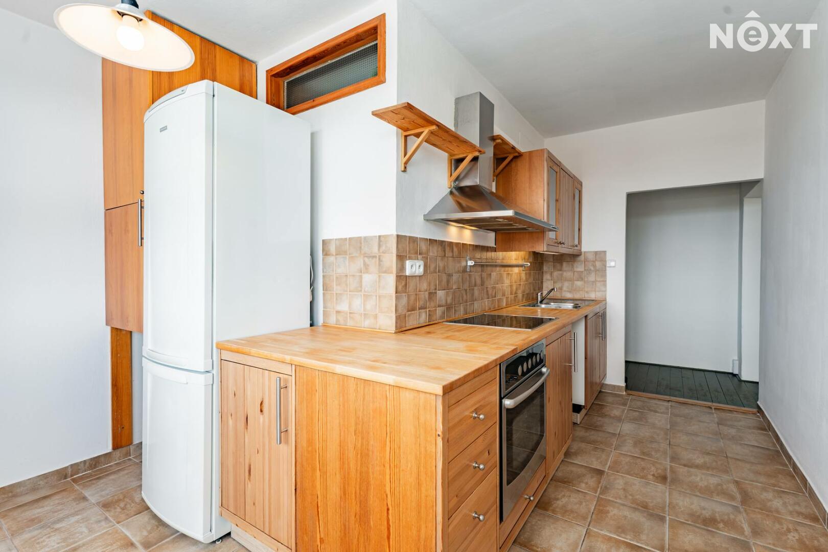 Ze vstupní chodby se vstupuje do kuchyně, která je vybavena kuchyňskou linkou, troubou, varnou deskou a lednicí. V kuchyni je také prostor pro myčku i pračku. Okna jsou plastová s dvojskly.