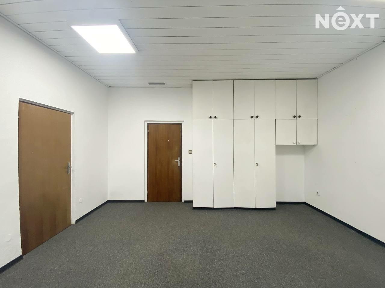 Každá kancelář má vlastní vstup z chodby a jsou průchozí společnými dveřmi.