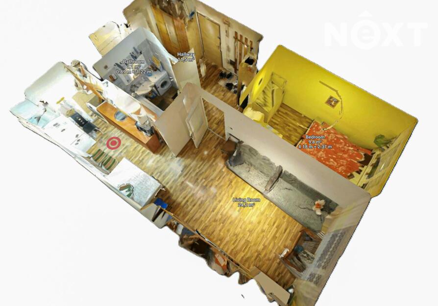 - Celková plocha: 53,32 m² (49,84 m² byt + sklep 3,48 m²)