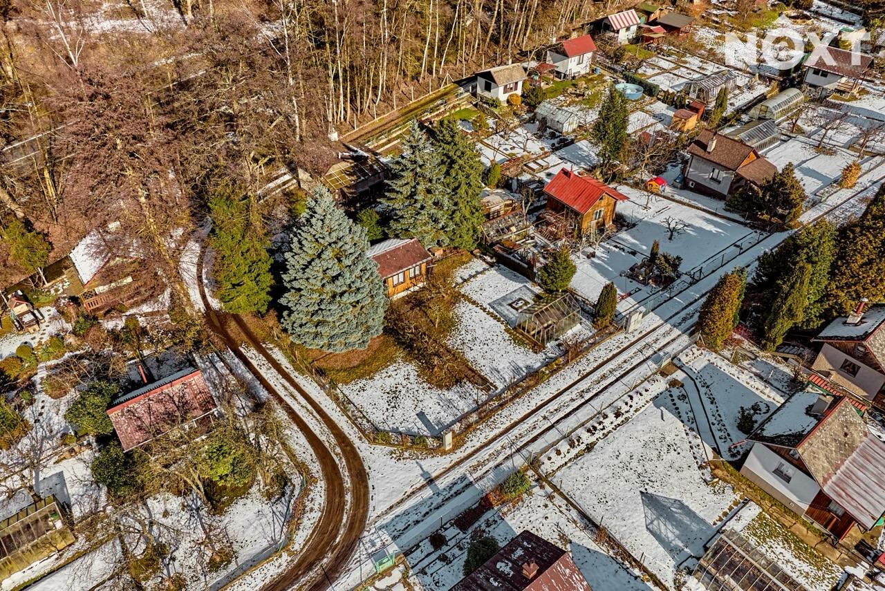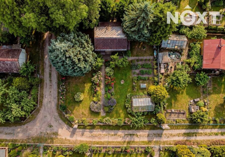 Na oplocené zahradě (plot s betonovou podezdívkou) o celkové ploše 381 m2 (soubor pozemků) najdete jak vzrostlé, tak okrasné dřeviny, jabloně, trvalé zahradní květiny a skleník. Na pozemek je zaveden rozvod užitkové vody čerpané ze společné vodní plochy v kolonii.