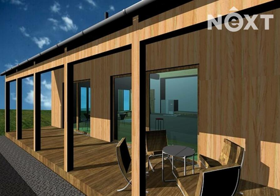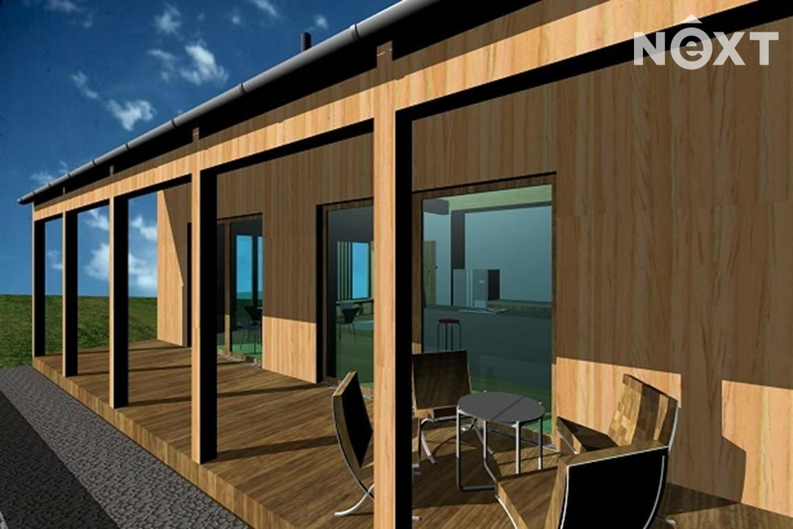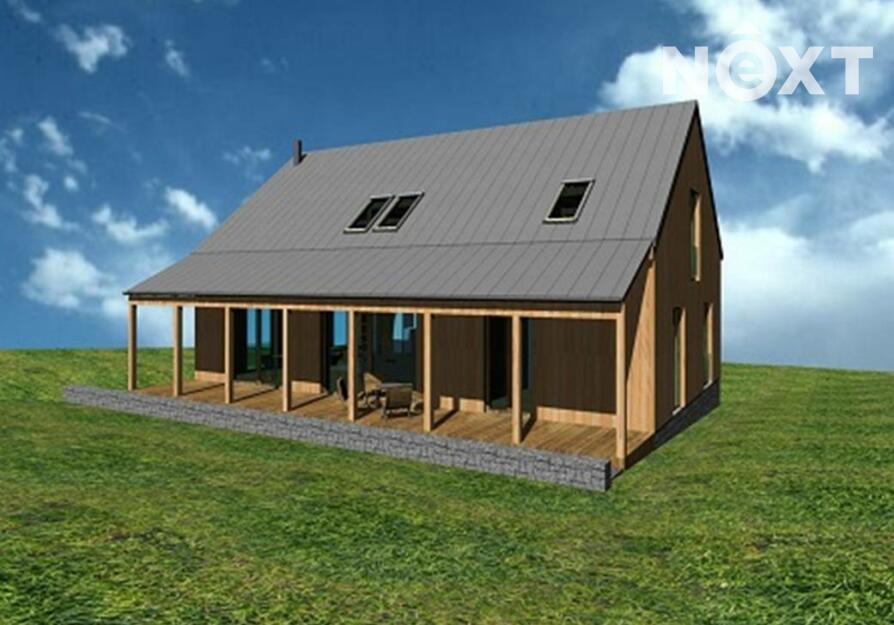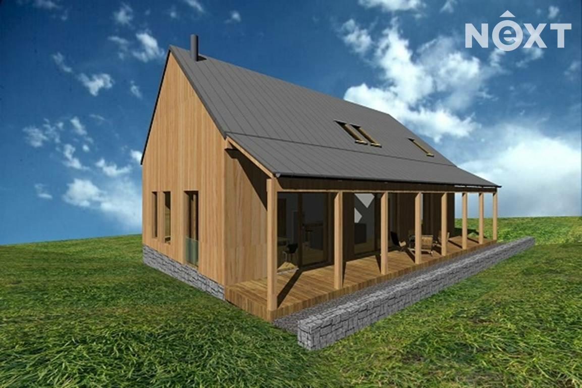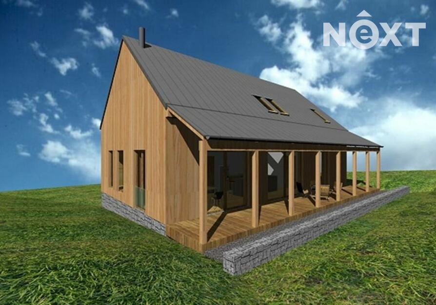 - Projekt rodinného domu v ceně: součástí prodeje je kompletní projektová dokumentace na jednopodlažní dřevostavbu se sedlovou střechou a obytným podkrovím (půdorys cca 14 × 8 m).