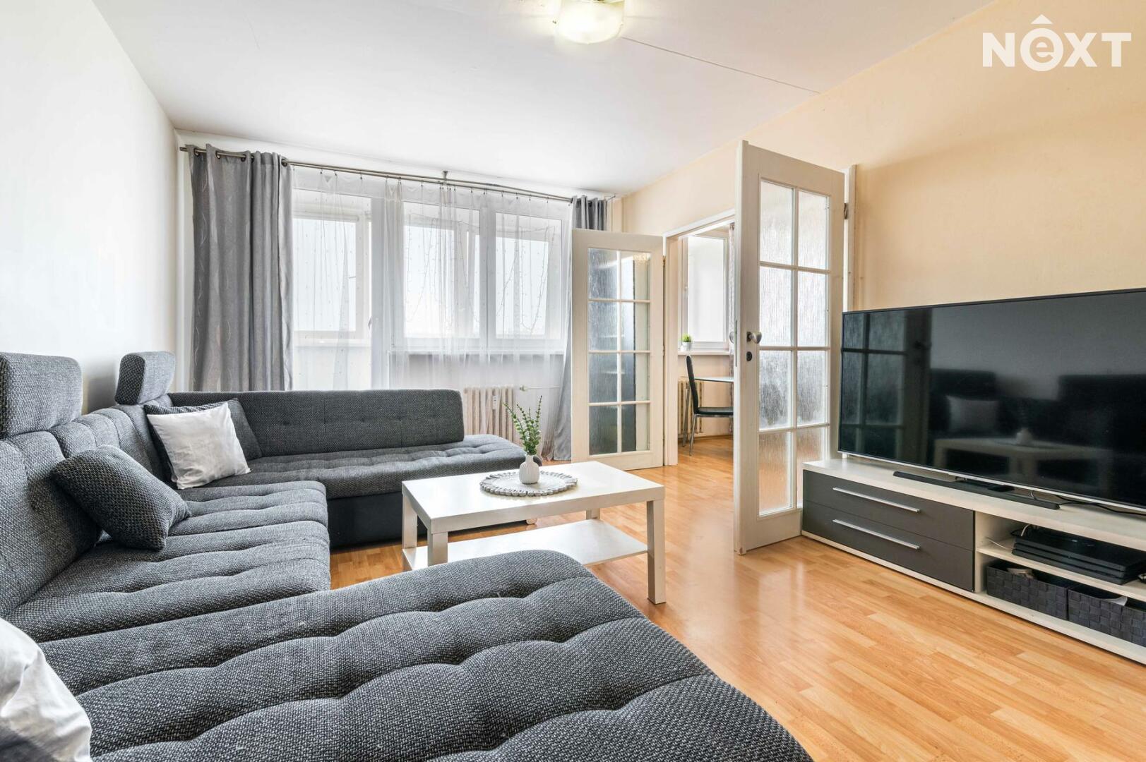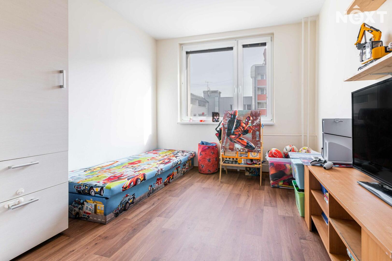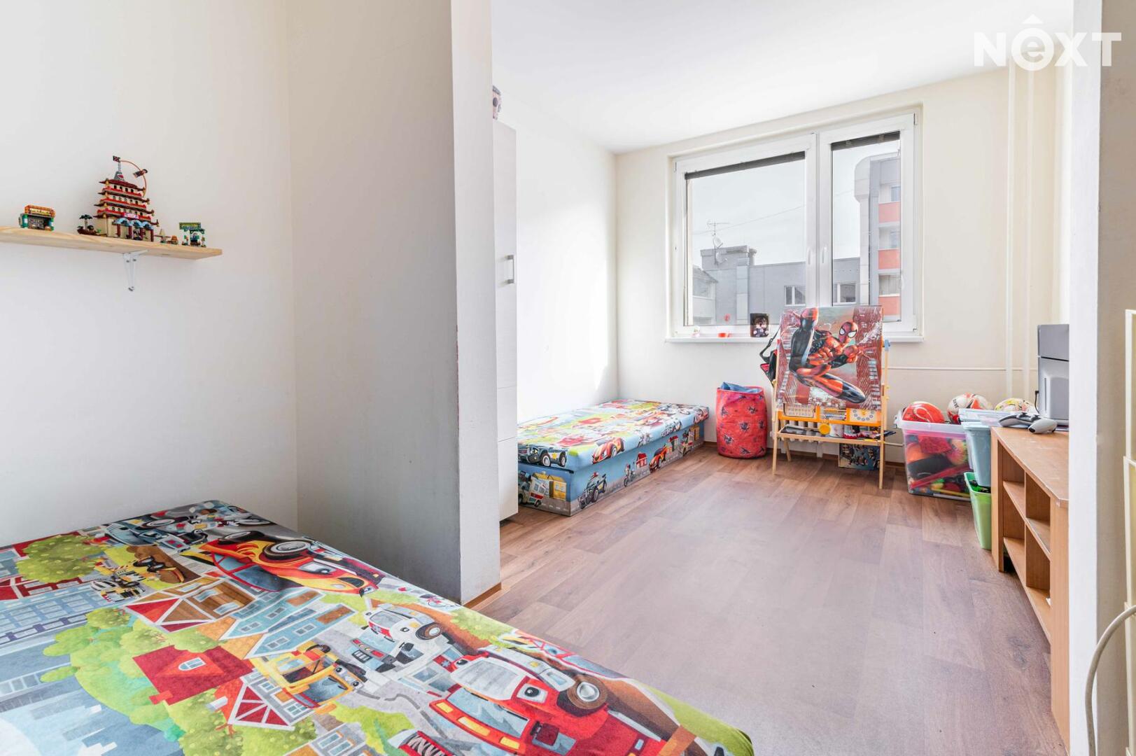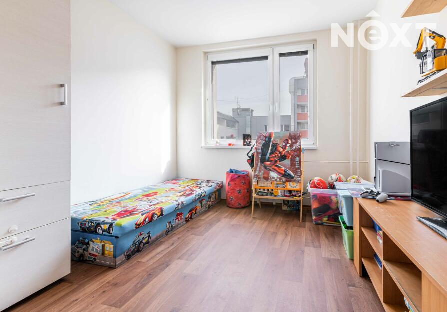 Dispozičně byt nabízí prostornou chodbu, ložnici a dětský pokoj orientované na severovýchod, zatímco obývací pokoj s kuchyní směřuje na jihozápad – ideální pro odpolední posezení na slunci. Nechybí samostatné WC a koupelna s vanou.