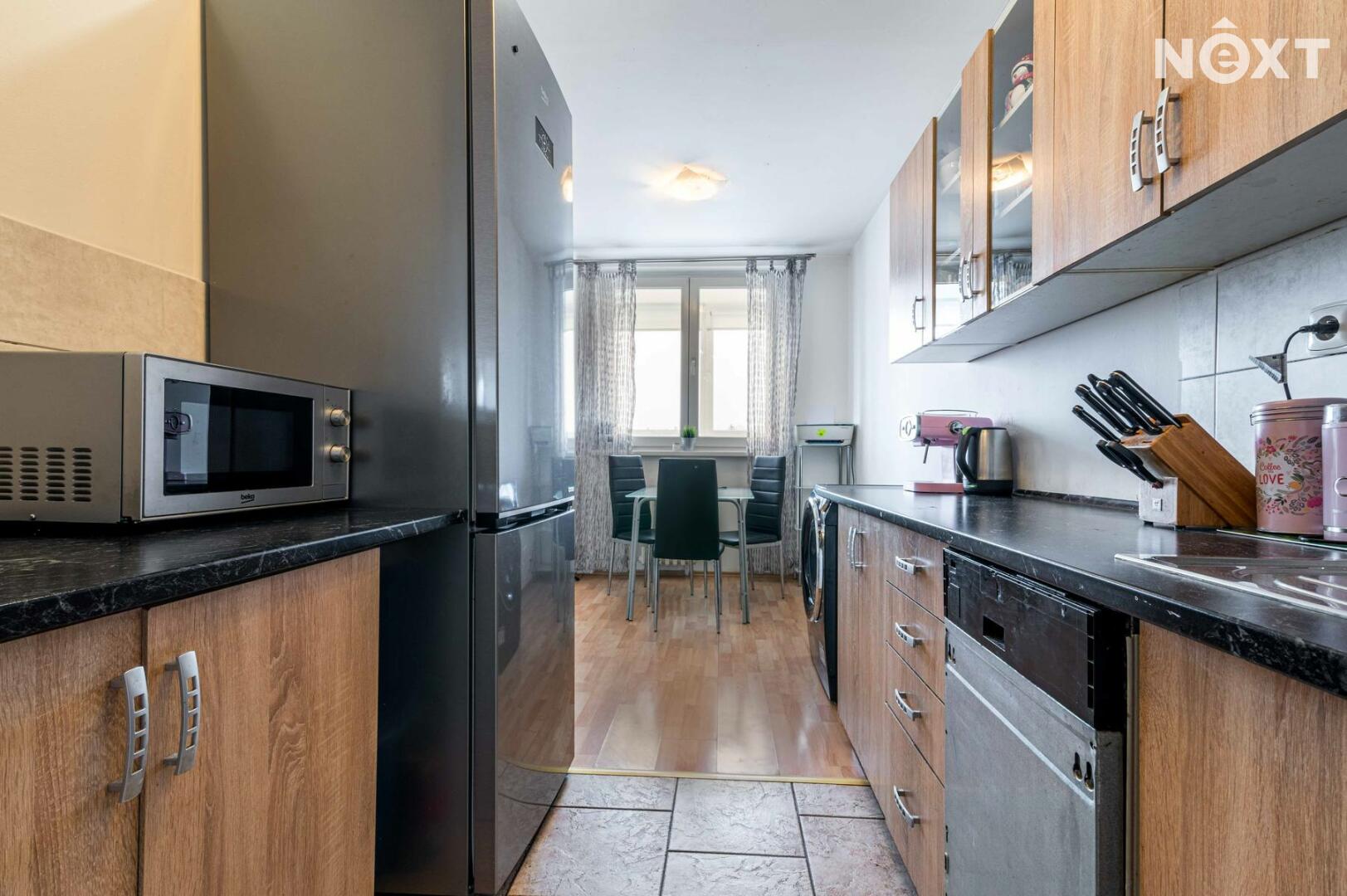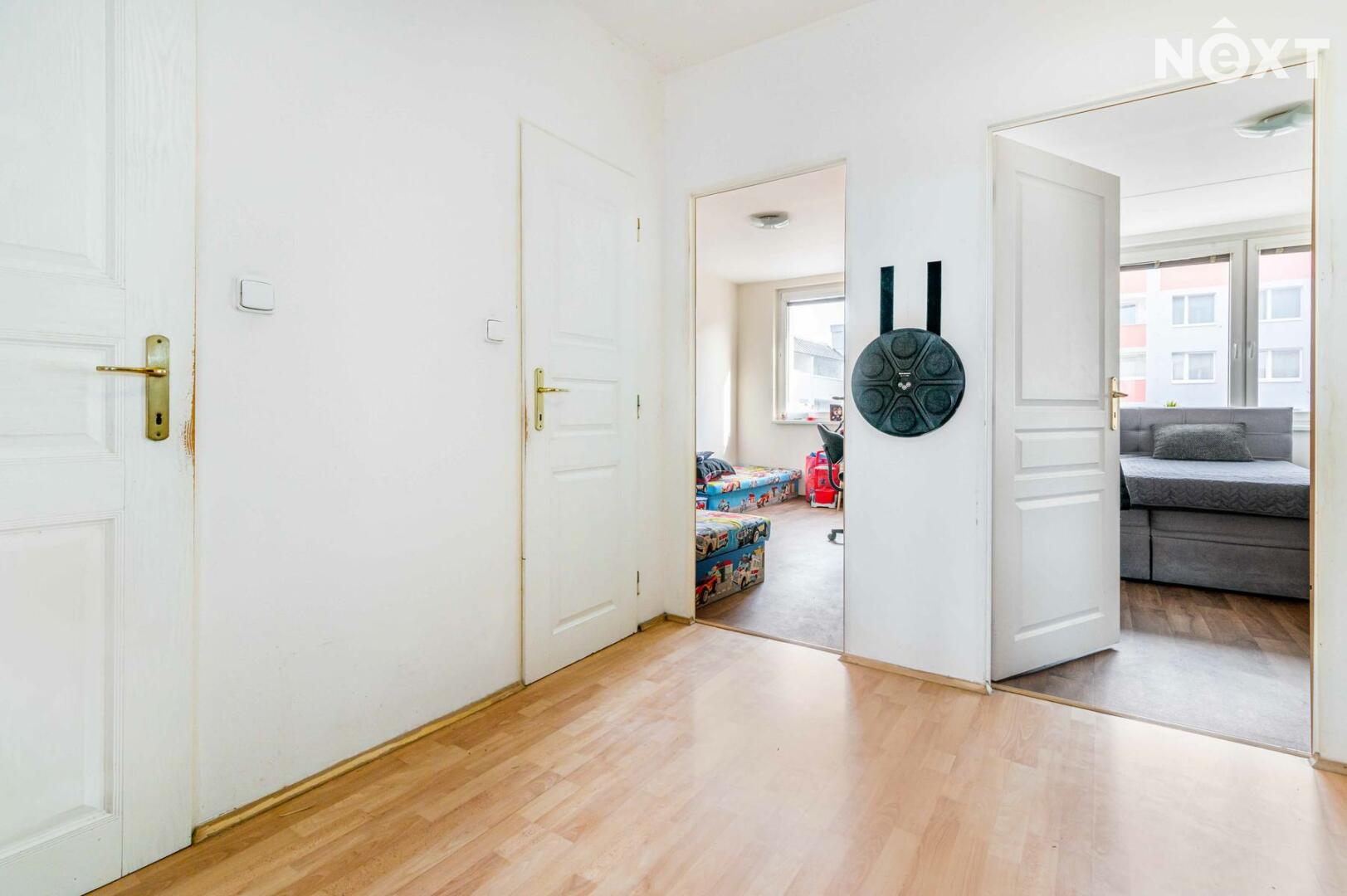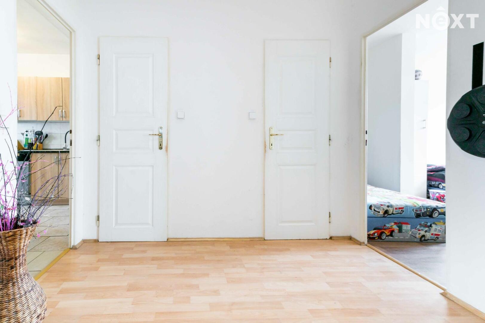 Dispozičně byt nabízí prostornou chodbu, ložnici a dětský pokoj orientované na severovýchod, zatímco obývací pokoj s kuchyní směřuje na jihozápad – ideální pro odpolední posezení na slunci. Nechybí samostatné WC a koupelna s vanou.