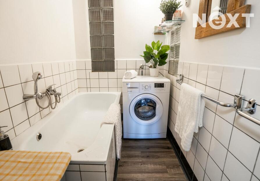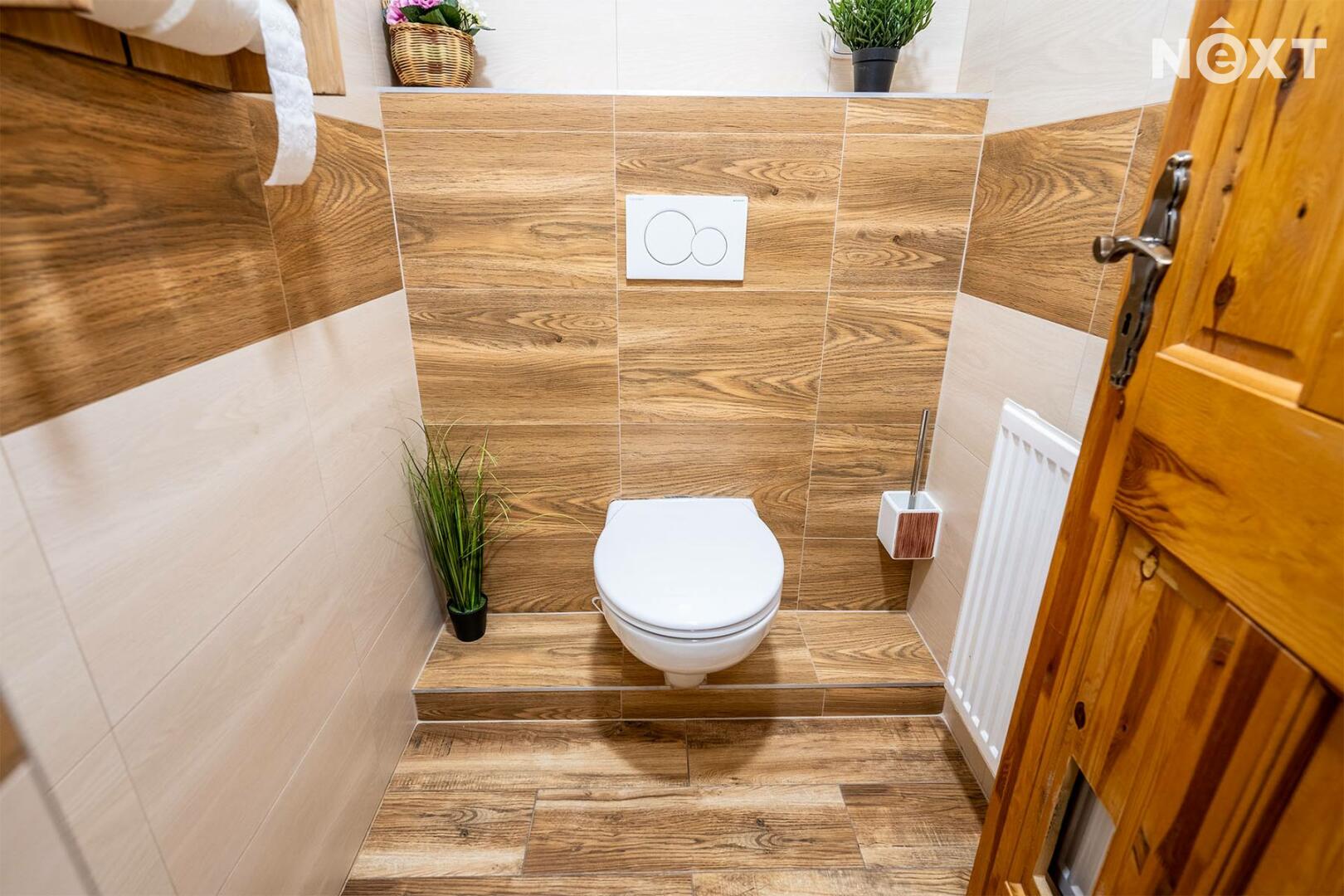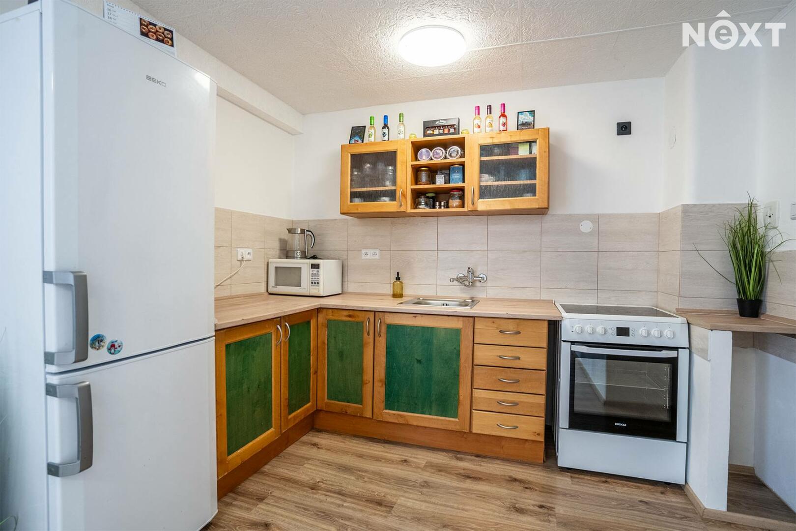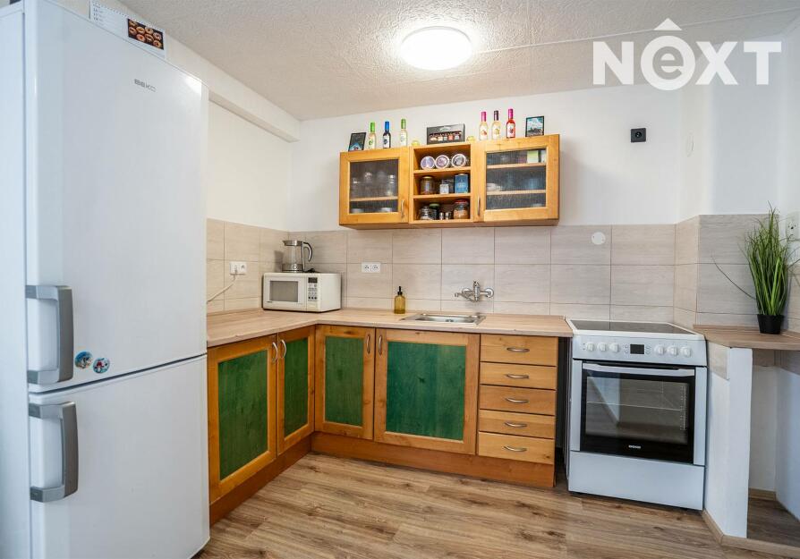 V kuchyni je menší kuchyňská linka, prostor na jídelní kout a hlavně vstup na velkou terasu orientovanou do zahrady. Koupelna má vanu a samostatná toaleta je hned vedle.