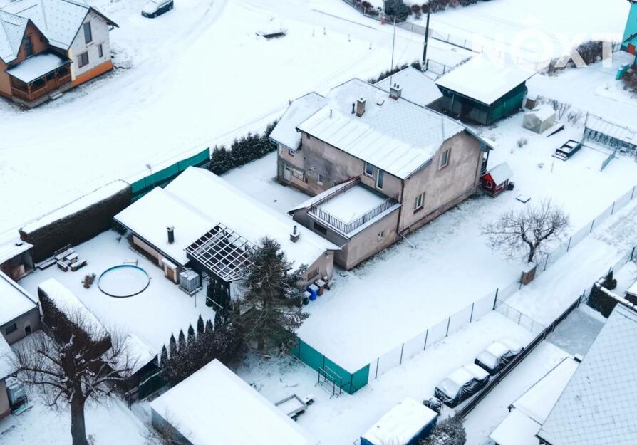 Dům stojí na pozemku o velikosti 1 332 m² a má celkovou podlahovou plochu 178 m². Je rozdělený na dvě bytové jednotky s vlastními vstupy ze společné chodby. Hodí se tak pro vícegenerační bydlení nebo třeba pronájem.