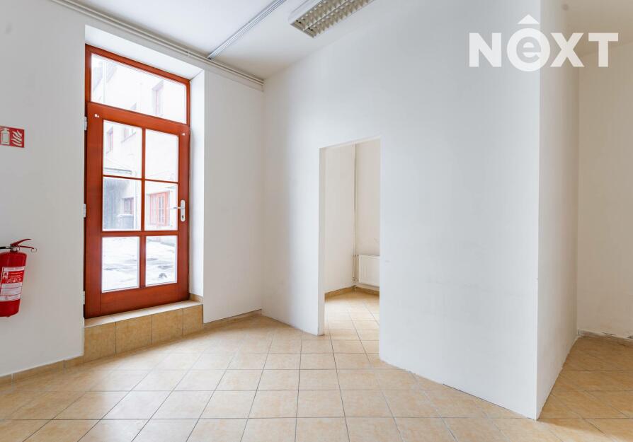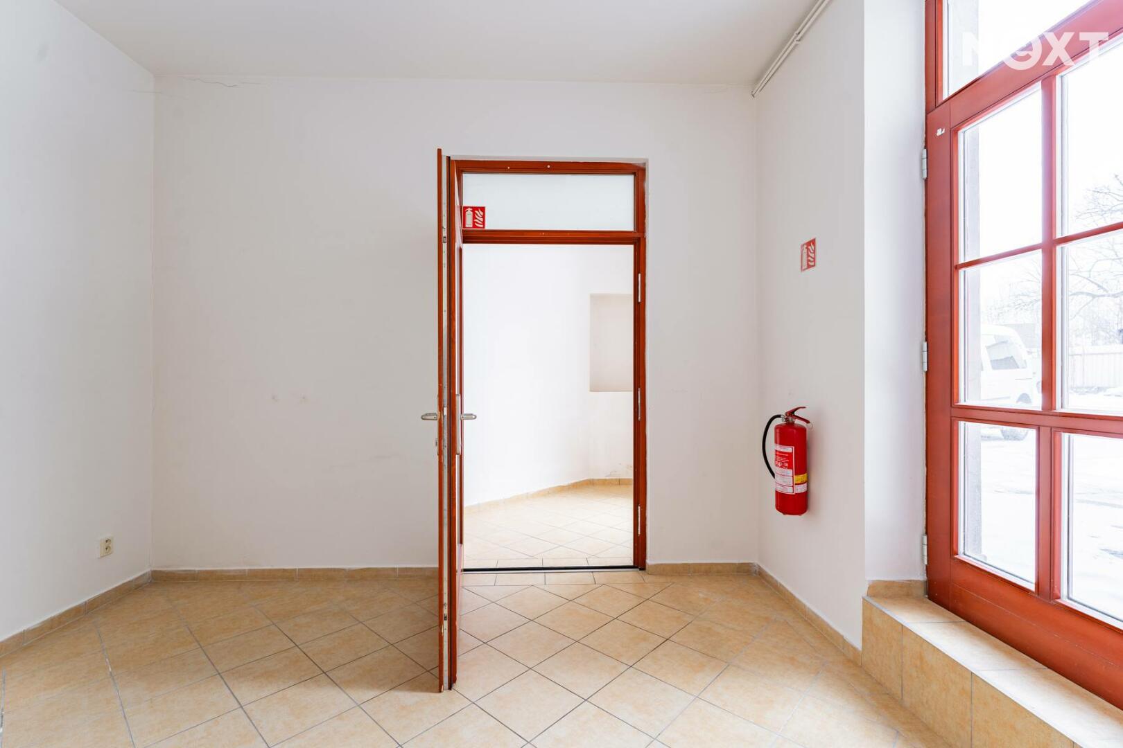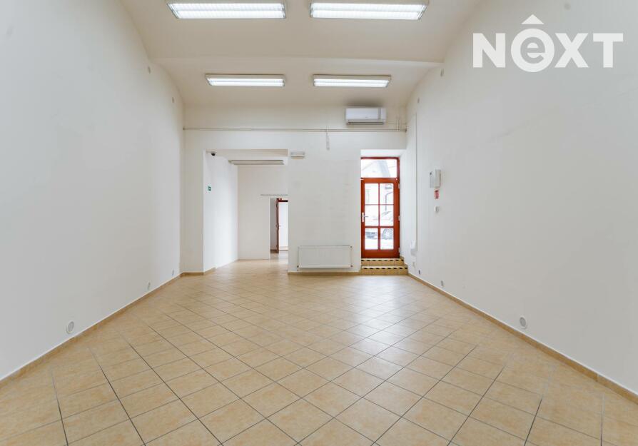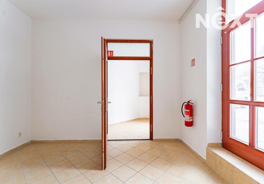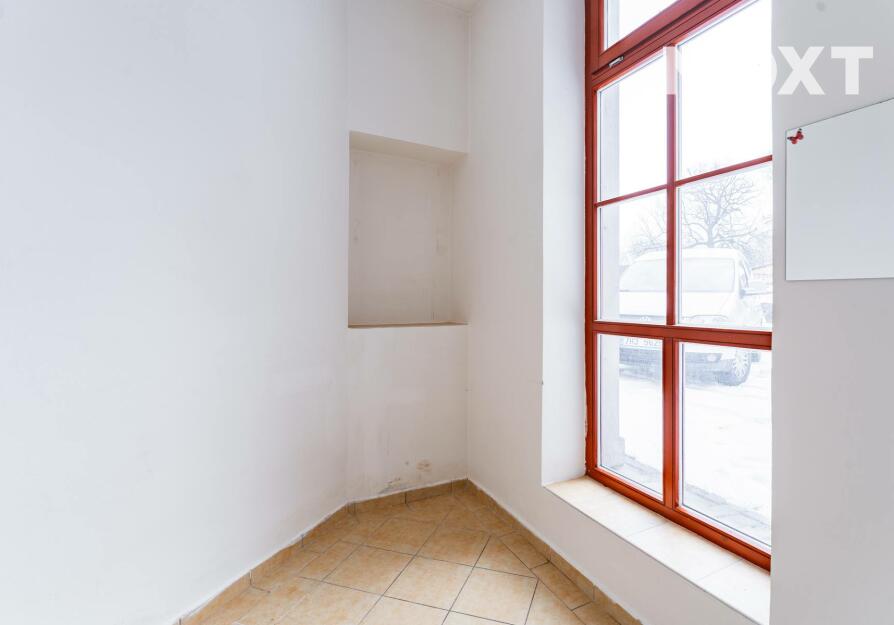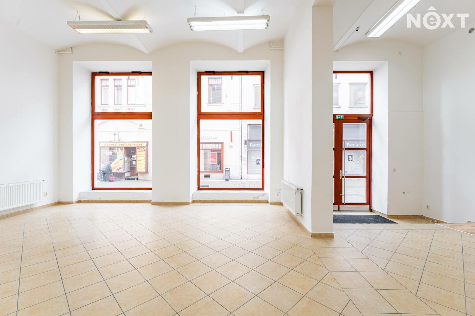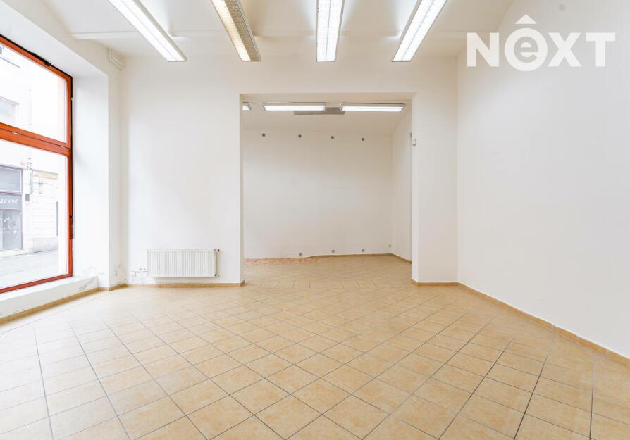 Prostor s výlohami má přímý vstup z pěší zóny a v minulosti sloužil jako prodejna. Dispozičně je řešen převážně jako otevřený prostor vhodný pro prodej nebo showroom, doplněný o menší zázemí a samostatnou místnost, kterou lze využít jako sklad, šatnu či menší kancelář.