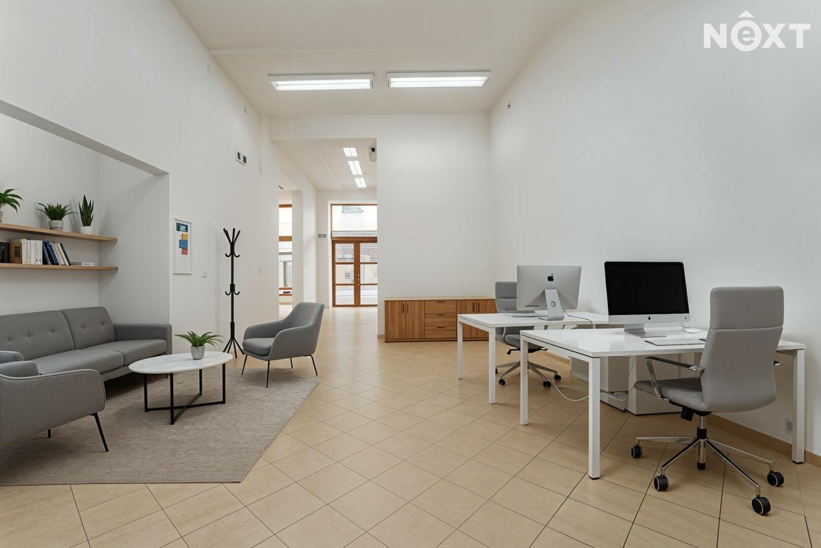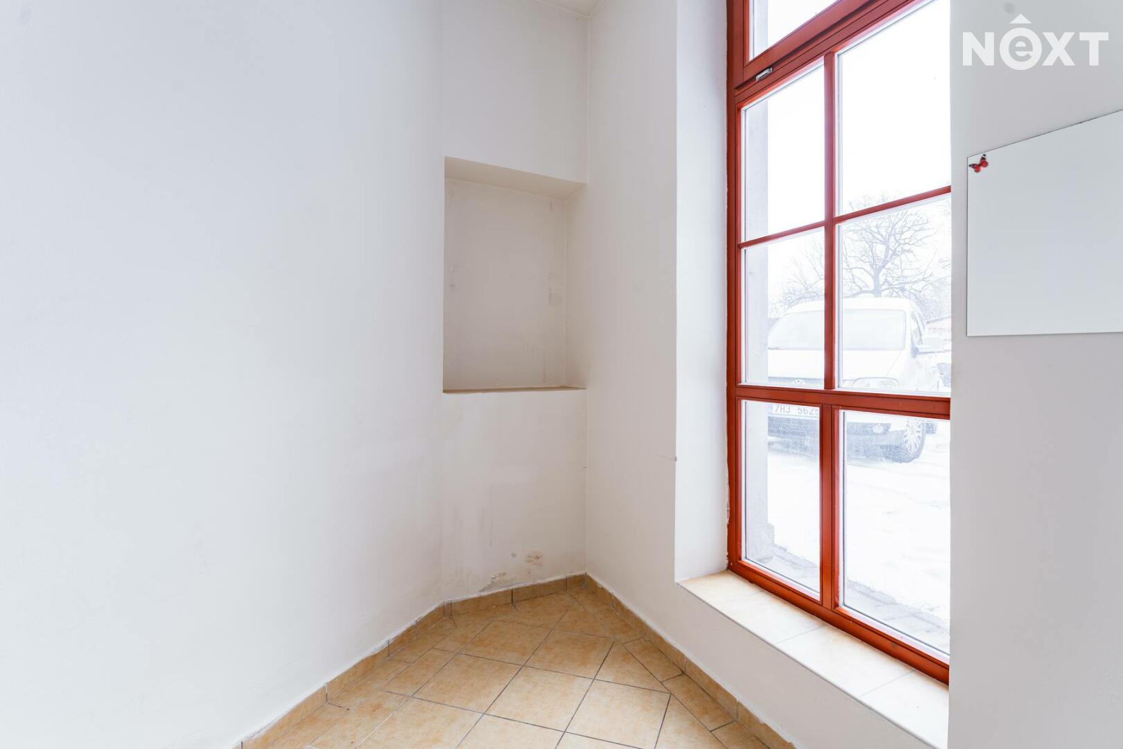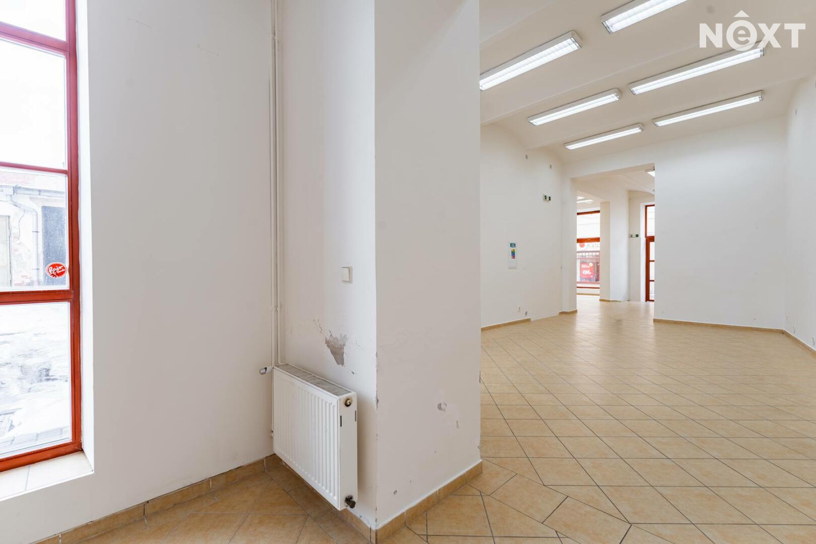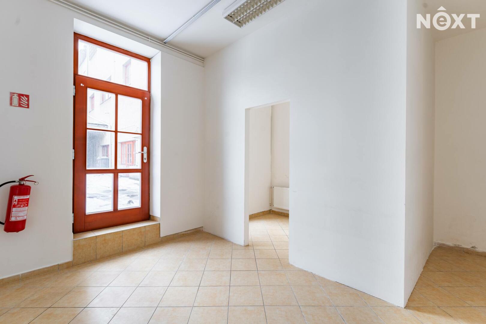 Prostor s výlohami má přímý vstup z pěší zóny a v minulosti sloužil jako prodejna. Dispozičně je řešen převážně jako otevřený prostor vhodný pro prodej nebo showroom, doplněný o menší zázemí a samostatnou místnost, kterou lze využít jako sklad, šatnu či menší kancelář.