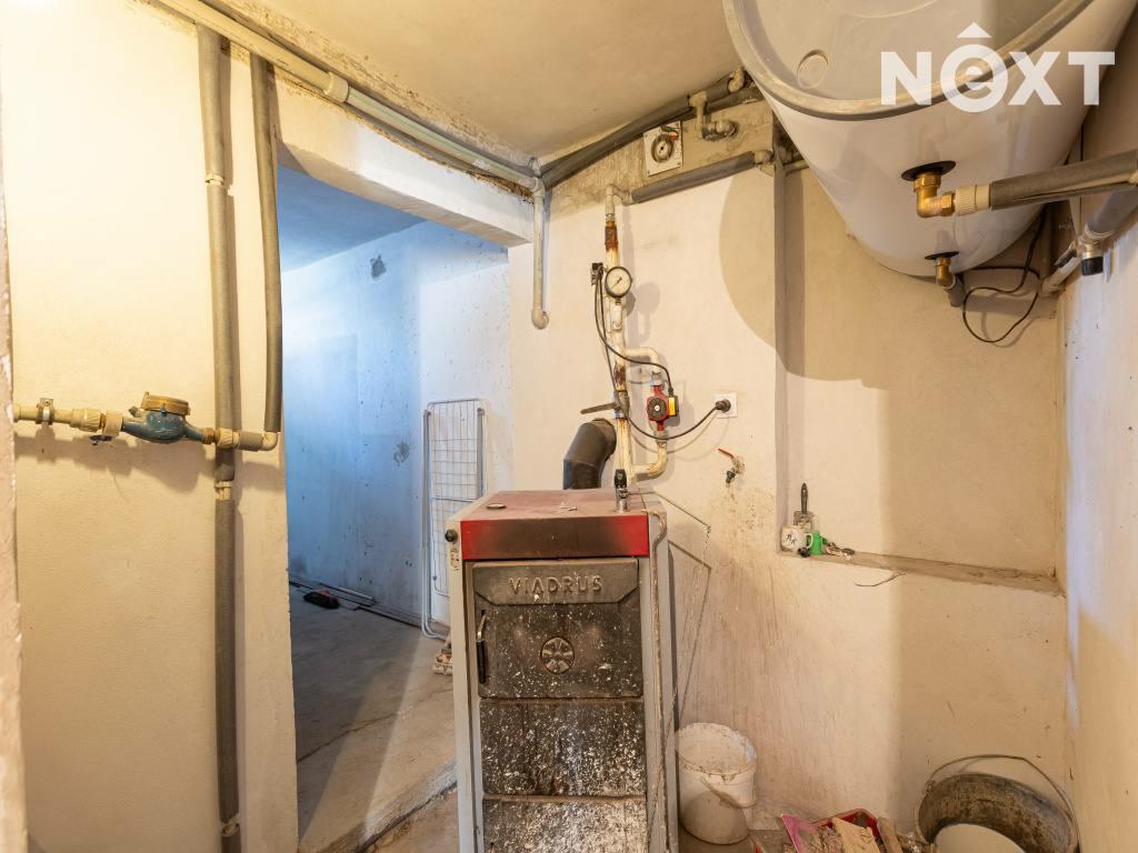 Dispozice domu je řešena velmi prakticky. V přízemí se nachází technická místnost s kotelnou (kombinovaný kotel Viadrus na tuhá paliva, ohřev vody zajištěn kotlem nebo elektricky), dále garáž, šatna, hostinský pokoj, prádelna a koupelna se sprchovým koutem a WC.