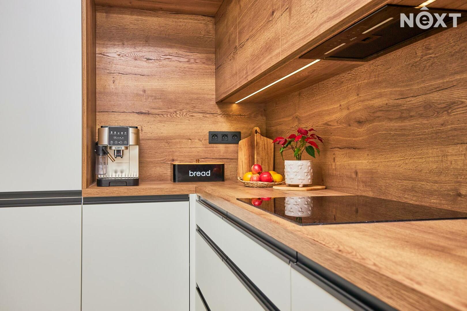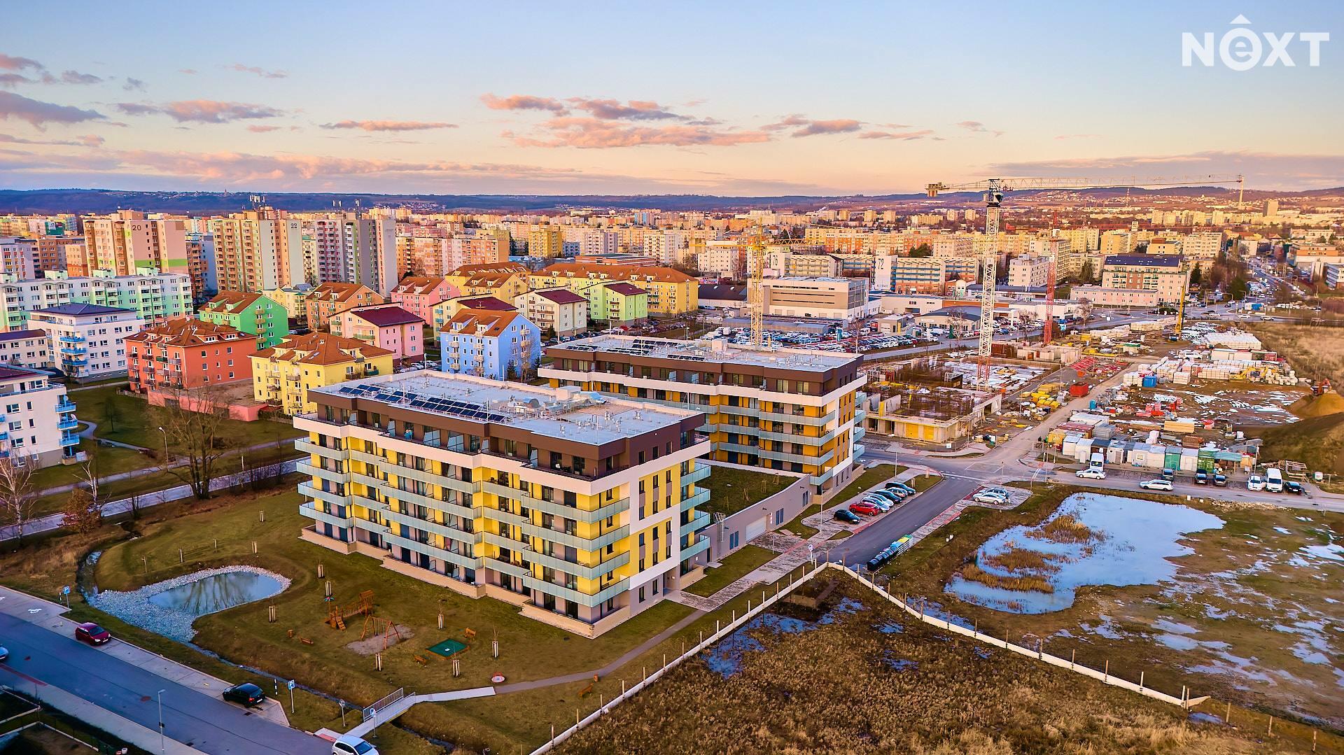 Byt o podlahové ploše 62,2 m² a prostornou terasou o velikosti 15,9 m² situovanou na SV, splňuje požadavky moderního bydlení pro páry a mladé rodiny s dětmi. Elektrické předokenní žaluzie, kvalitní okna s trojskly, vytápění i ohřev vody zajištěný moderním systémem CZT s vysokým podílem energie z obnovitelných zdrojů pak zajišťují vysoký komfort bydlení. Sestává se z předsíně, koupelny, samostatného wc, pokoje, ložnice a obývacího pokoje s jídelnou a kuchyňským koutem. K bytu také náleží garážové stání a velkorysá sklepní kóje o velikosti 5,2 m², které jsou umístěny v 1.podzemním podlaží a dostanete se k nim pohodlně výtahem.