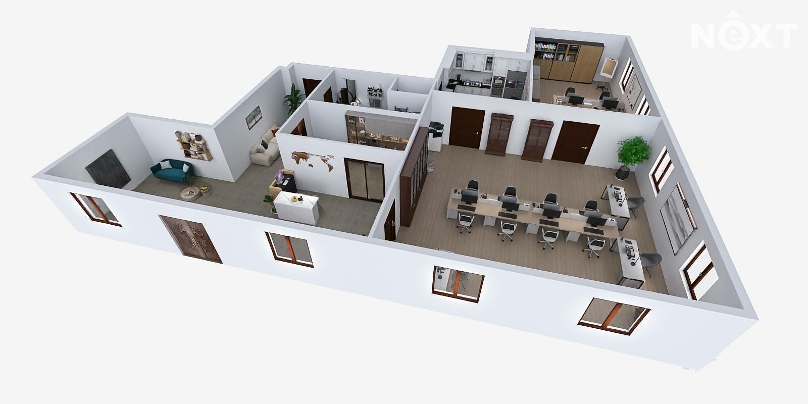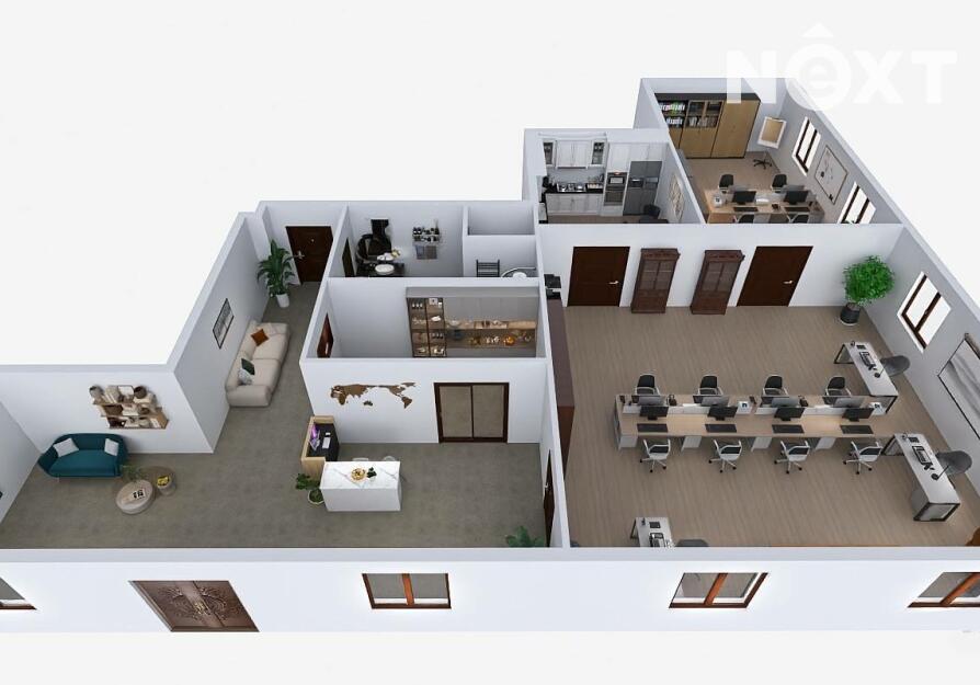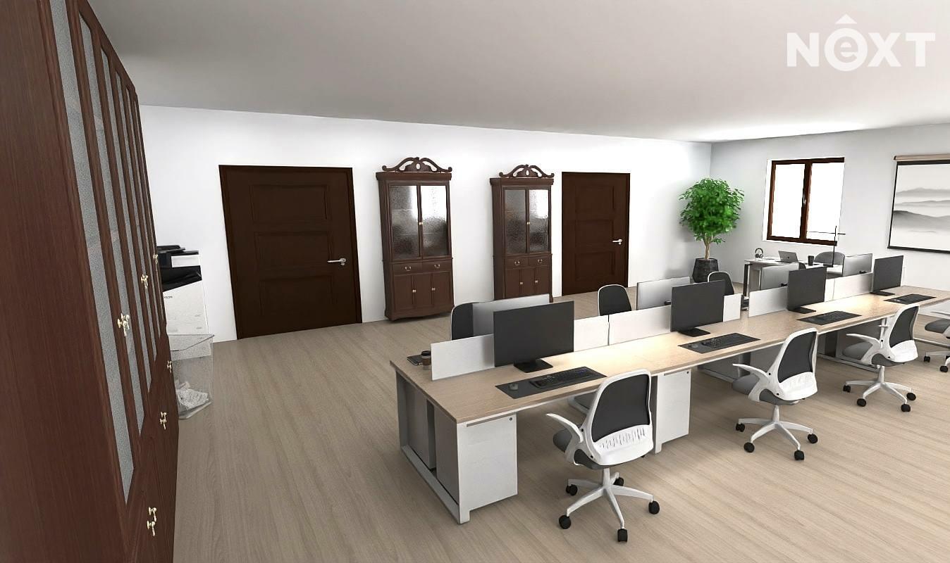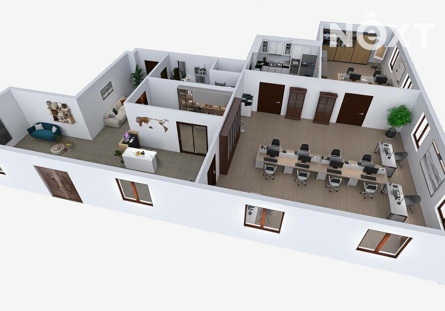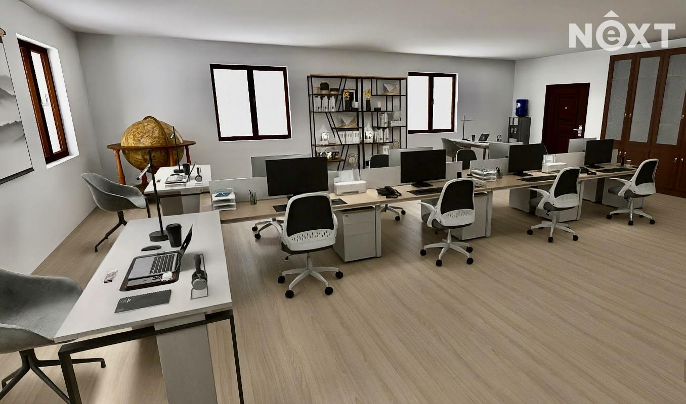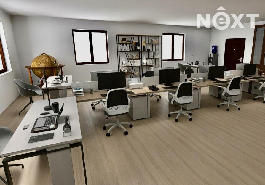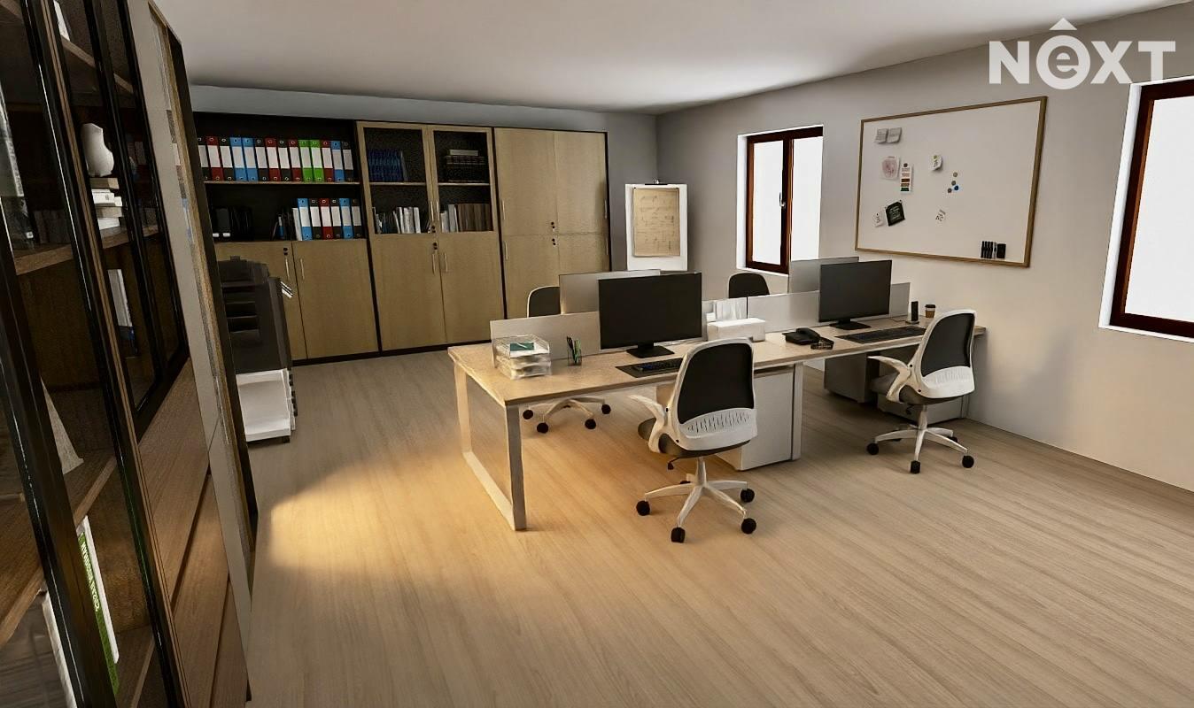 Dispozice prostor je prakticky řešena a nabízí široké možnosti využití. Součástí je hlavní kancelář či obchodní prostor o velikosti 44,20 m² a druhá samostatná kancelář o ploše 23,10 m². Prostory dále doplňuje zázemí recepce o velikosti 6,00 m², čajová kuchyňka o ploše 12,40 m² a sociální zázemí v podobě toalety a sprchy. K dispozici je také prostorná chodba, která slouží jako společná komunikační část pro nájemce v budově. Služby (elektřina, voda, topení atd.) se platí v podobě záloh, které aktuálně vychází na 4000 Kč měsíčně.