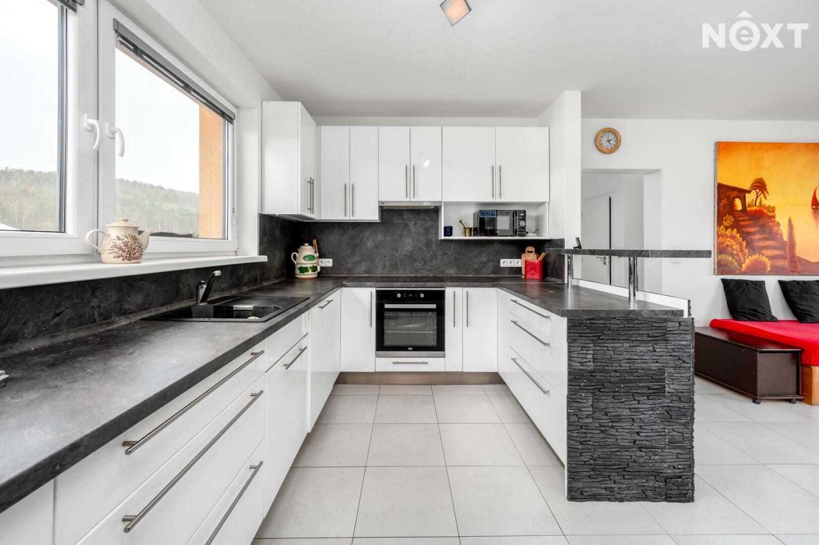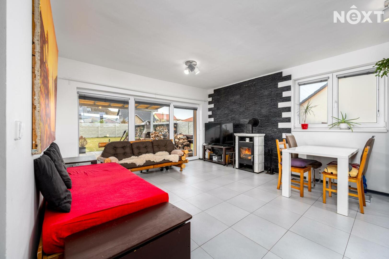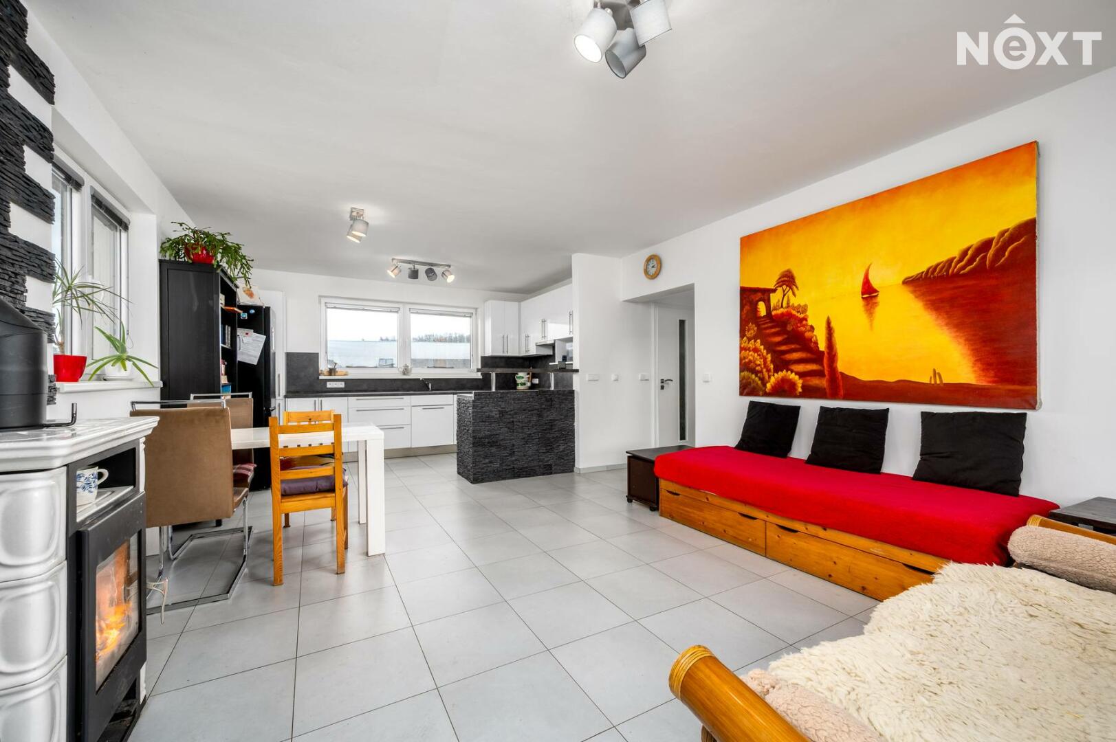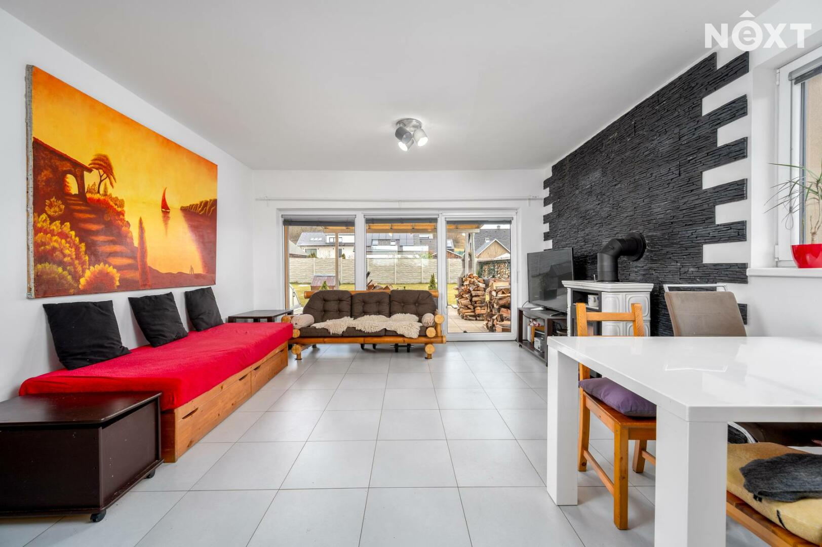 Dům se nachází v klidné vilové zástavbě a jeho srdcem je prostorný obývací pokoj propojený s velkou kuchyní, která nabízí dostatek pracovní i úložné plochy. Dominantou obývací části jsou krásná kamna, která vytvářejí útulnou atmosféru zejména během chladnějších měsíců a dodávají prostoru příjemný charakter. Dispozice poskytuje dostatek prostoru pro rodinu či pár. Celková užitná plocha domu činí 130 m².