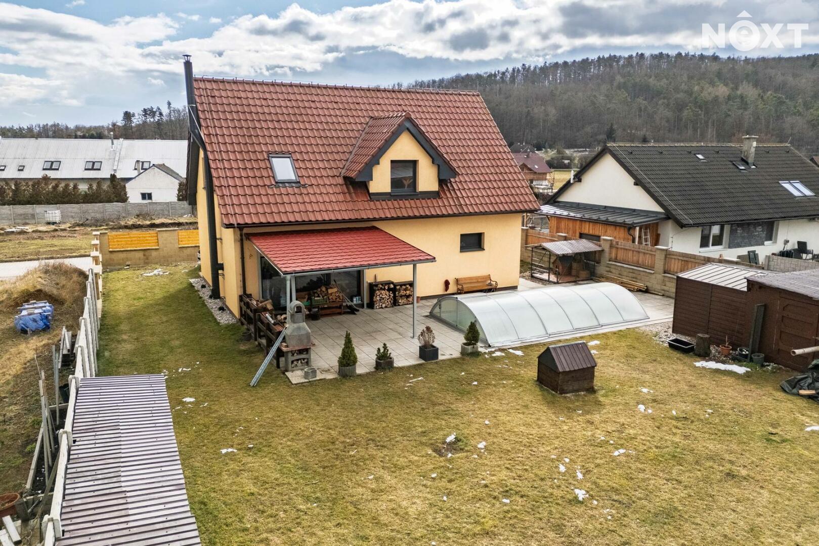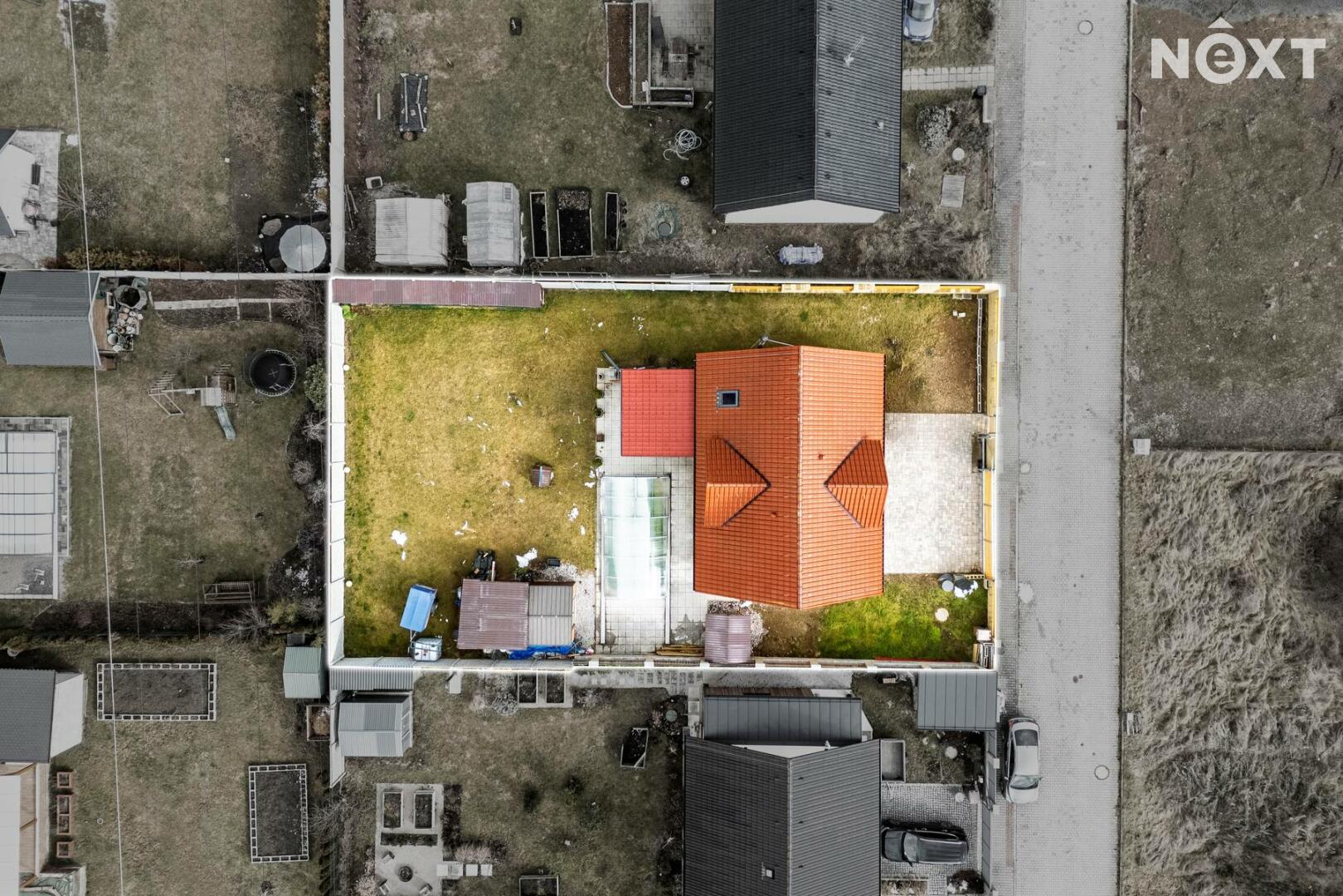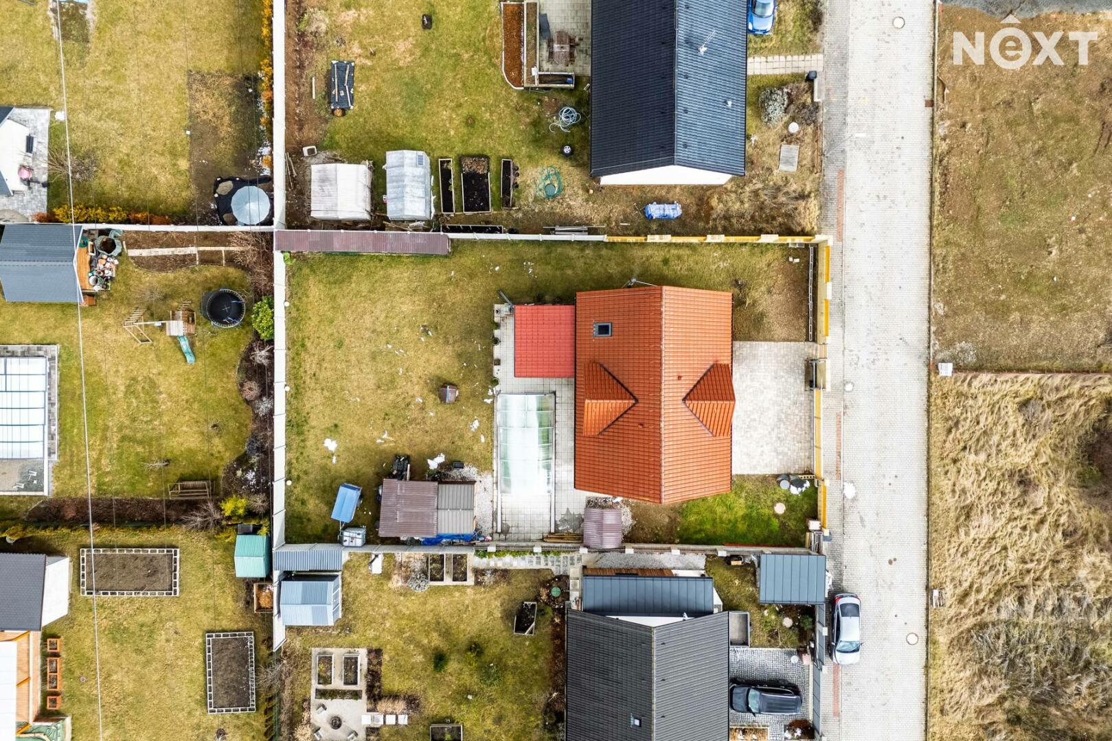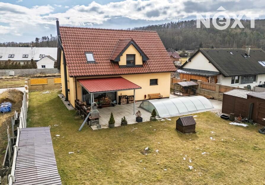 Velkou předností je také zahrada o velikosti 602 m², kde v letních měsících si zde můžete užívat vlastní bazén, posezení s rodinou či přáteli nebo klidné chvíle odpočinku v naprostém soukromí. Před domem se nachází prostorná dlážděná plocha, kde lze pohodlně zaparkovat až tři automobily. Celý pozemek je přístupný přes bránu na dálkové ovládání, která zajišťuje komfort i bezpečí.