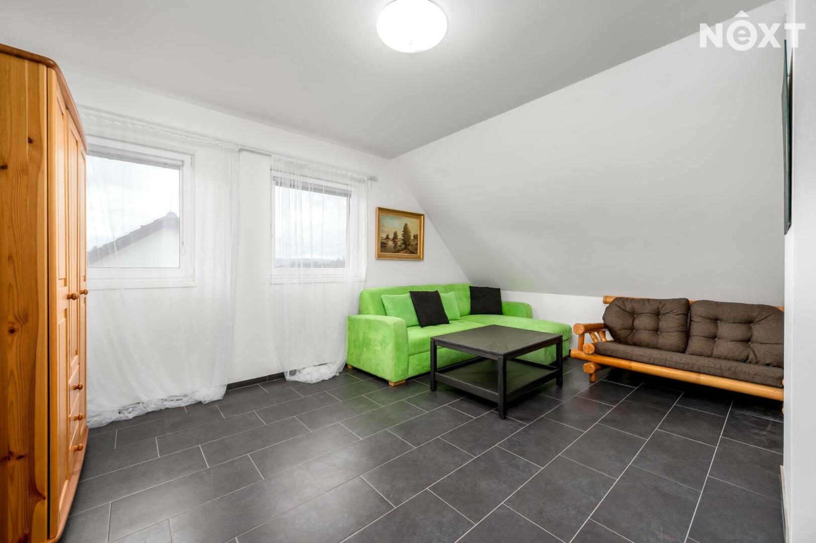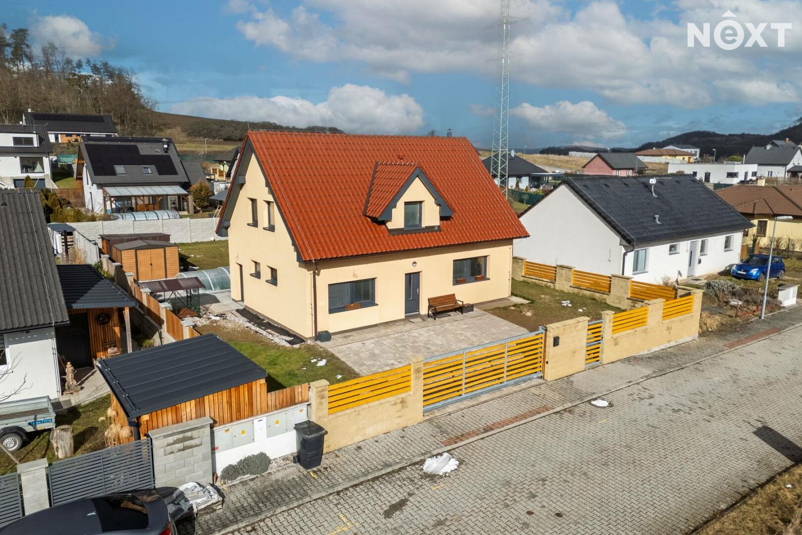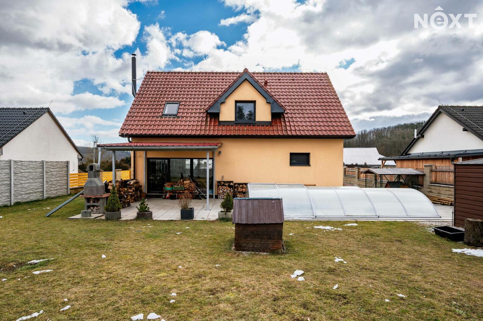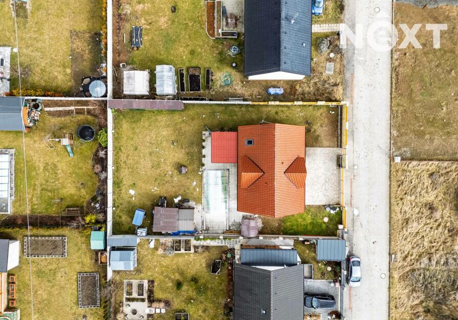 Velkou předností je také zahrada o velikosti 602 m², kde v letních měsících si zde můžete užívat vlastní bazén, posezení s rodinou či přáteli nebo klidné chvíle odpočinku v naprostém soukromí. Před domem se nachází prostorná dlážděná plocha, kde lze pohodlně zaparkovat až tři automobily. Celý pozemek je přístupný přes bránu na dálkové ovládání, která zajišťuje komfort i bezpečí.