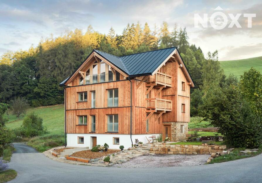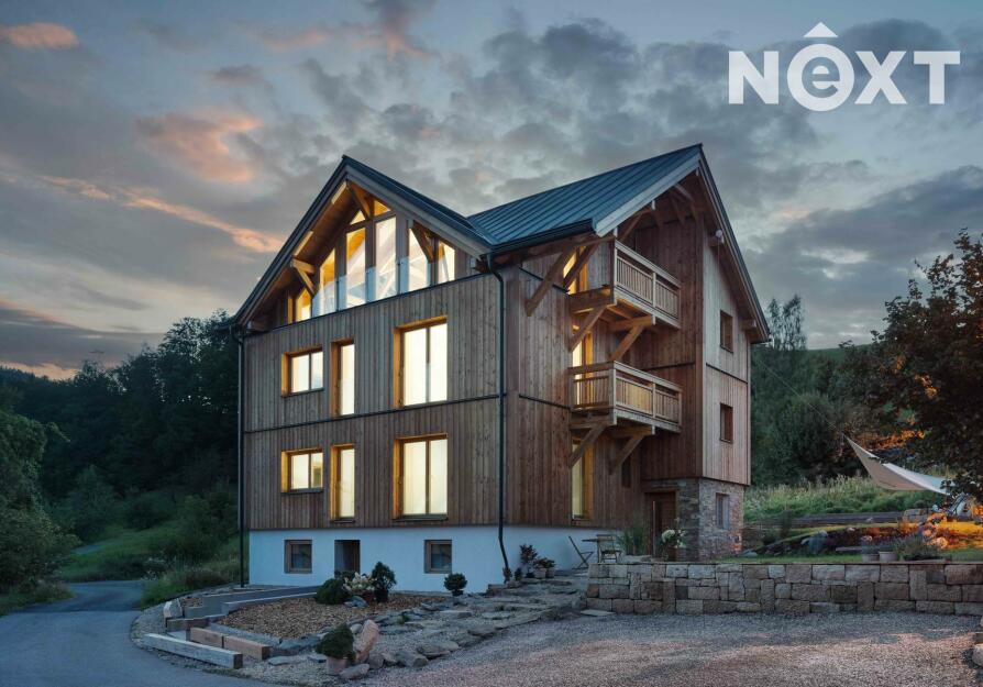 Kvalita je zde znát v každém detailu. Bezúdržbová fasáda dovezená z Rakouska, interiérové obložení ze stoletého italského domu, které v sobě nese příběh a autenticitu, ručně vyráběná izolační okna s trojskly ze sibiřského modřínu od renomované firmy Kolovrat z Lesních Albrechtic, interiérové dveře od truhlářské dílny Vais z Vidonic. Tepelný komfort zajišťuje špičkové tepelné čerpadlo Buderus a celek korunuje hliníková střecha Prefa se zárukou 40 let. Každý materiál byl vybrán s maximální pečlivostí. Tohle vše je však jen zlomek toho, co tento horský skvost skutečně nabízí.