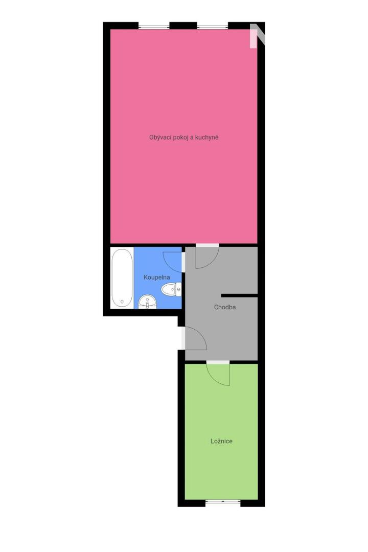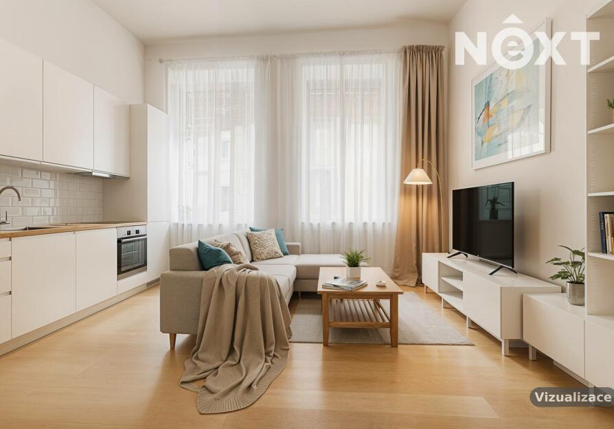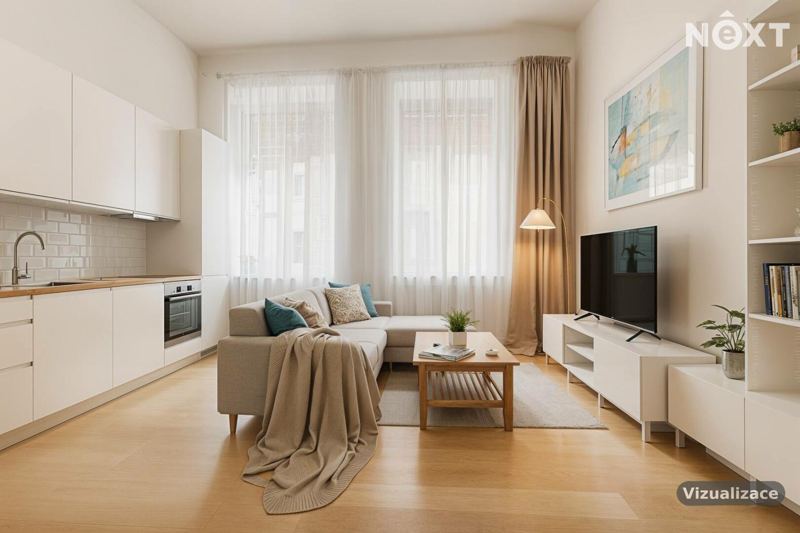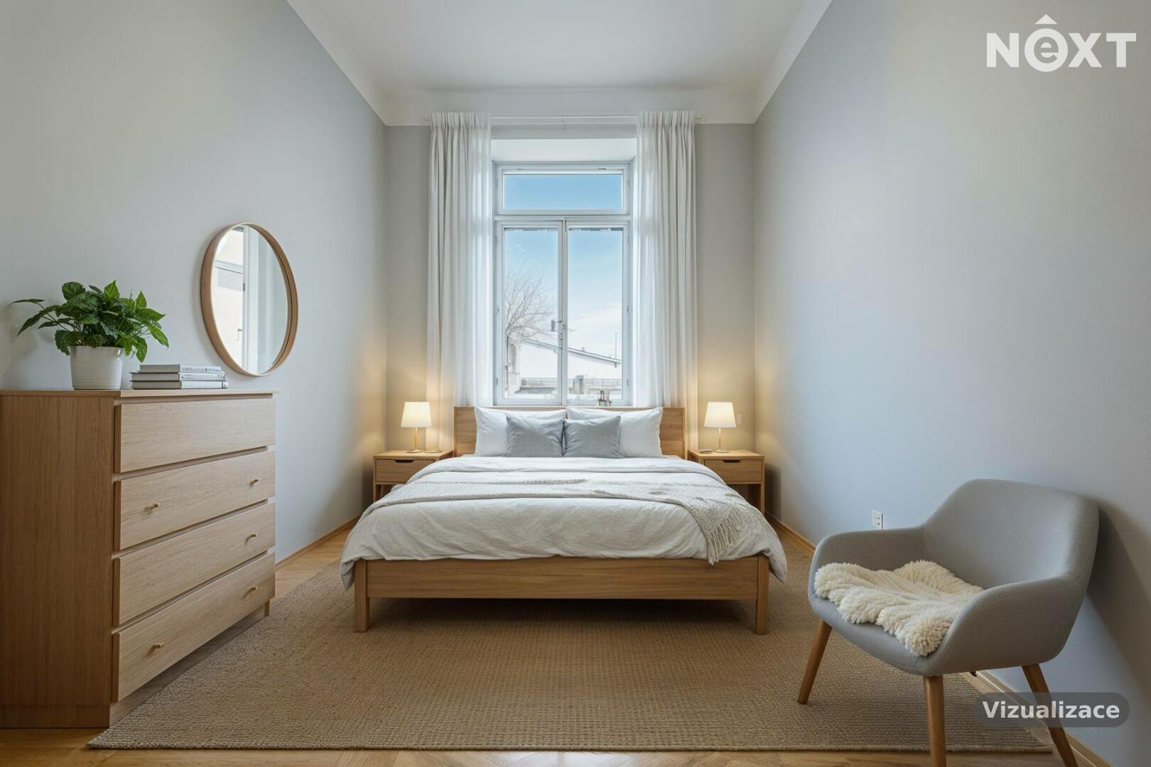 Dispozičně je byt řešen jako 2+kk a díky své velikosti poskytuje dostatek prostoru pro komfortní bydlení jednotlivce i páru. K bytu náleží také sklep, který nabízí praktické úložné prostory. Vytápění bytu je řešeno plynovými WAW. Velkým benefitem je potenciál úpravy bytu otevřením francouzského okna směrem do vnitrobloku, kde by bylo možné vybudovat schůdky a vytvořit tak přímý přístup do klidného dvora, což by výrazně zvýšilo komfort bydlení i celkovou hodnotu nemovitosti.