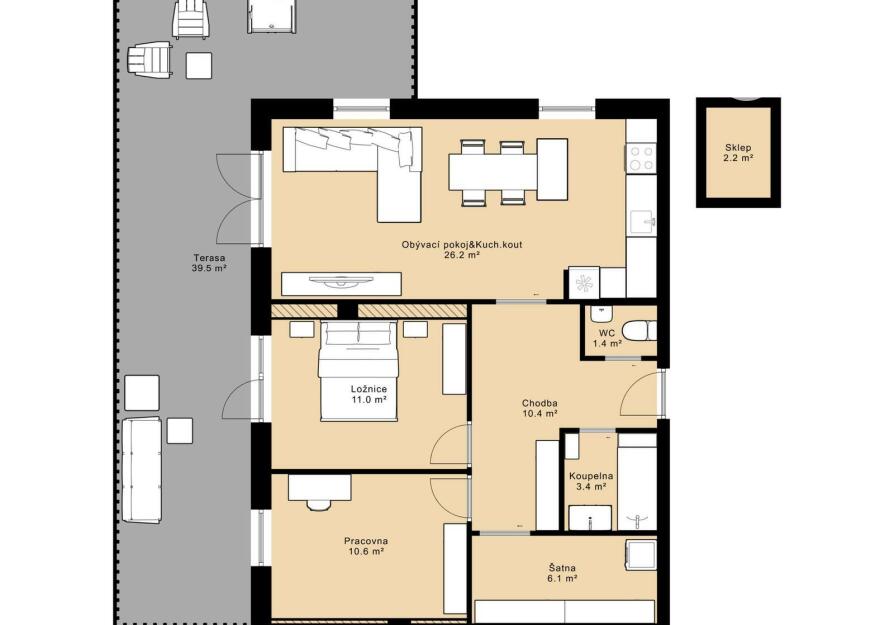 - pracovna (10,6 m²)