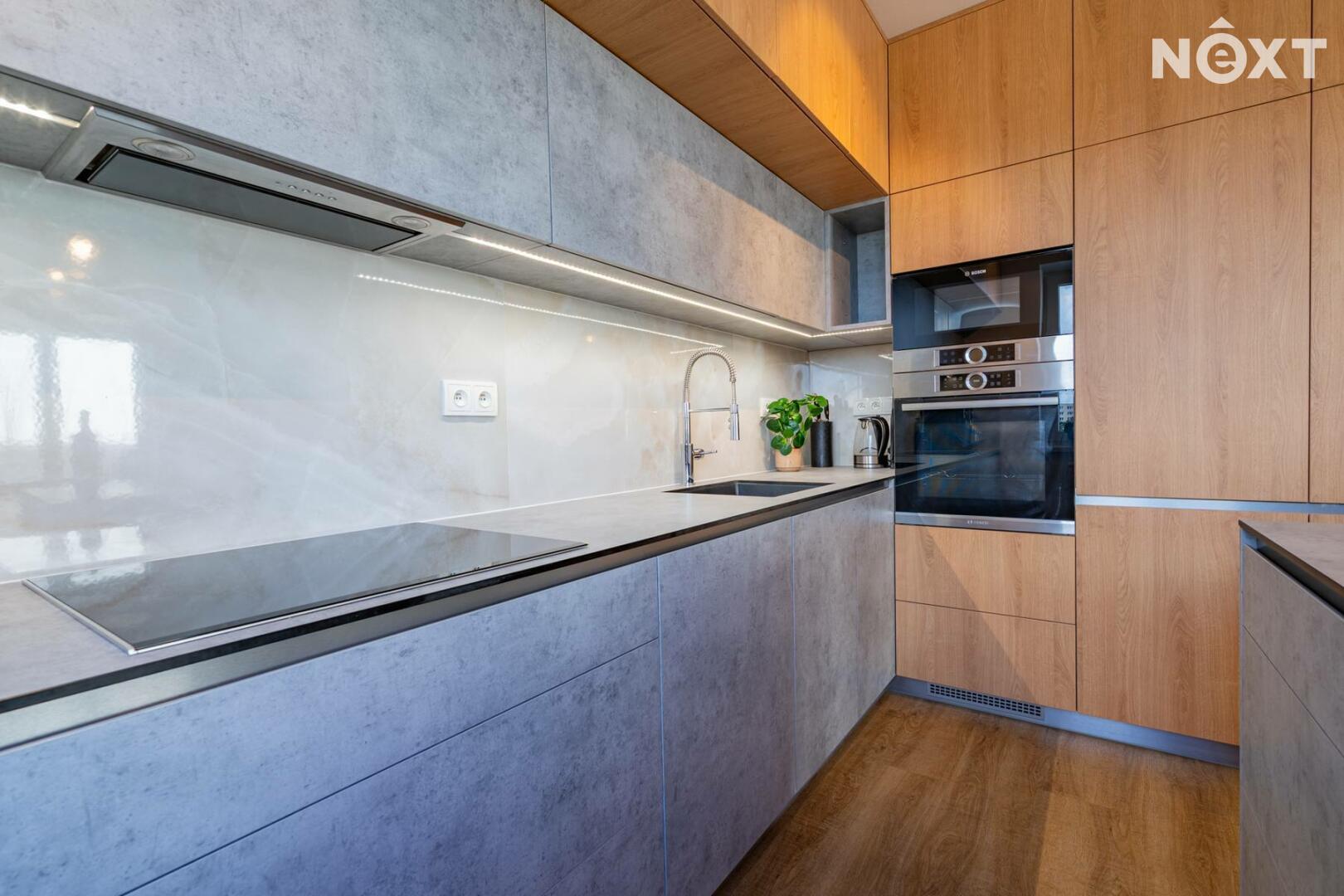 - obývací pokoj s kuchyňskou linkou (26,2 m²) vybavenou spotřebiči značky BOSCH
