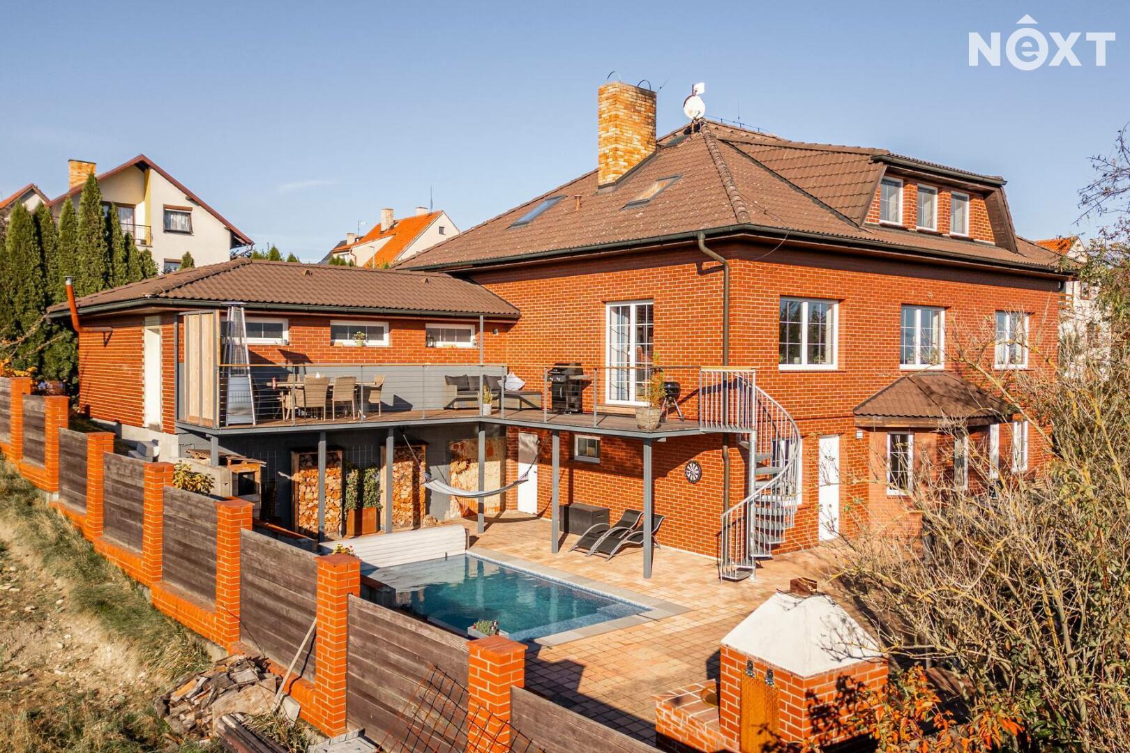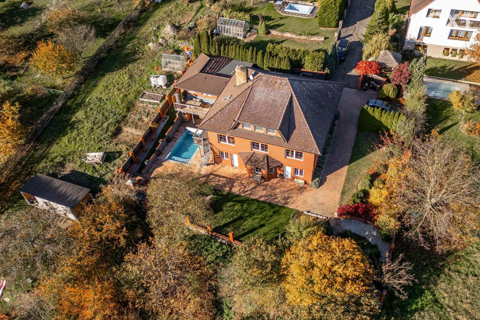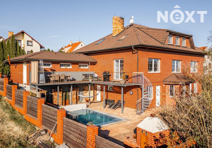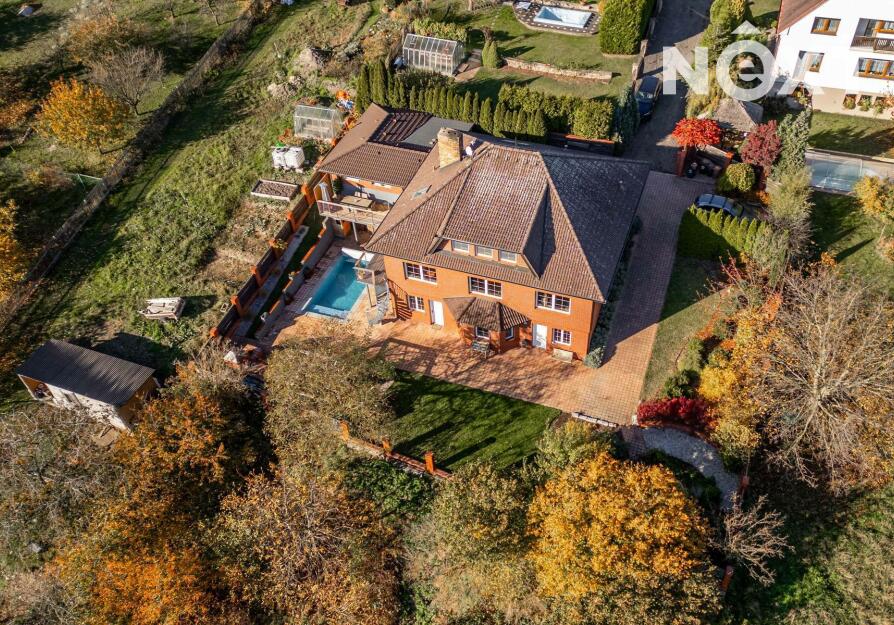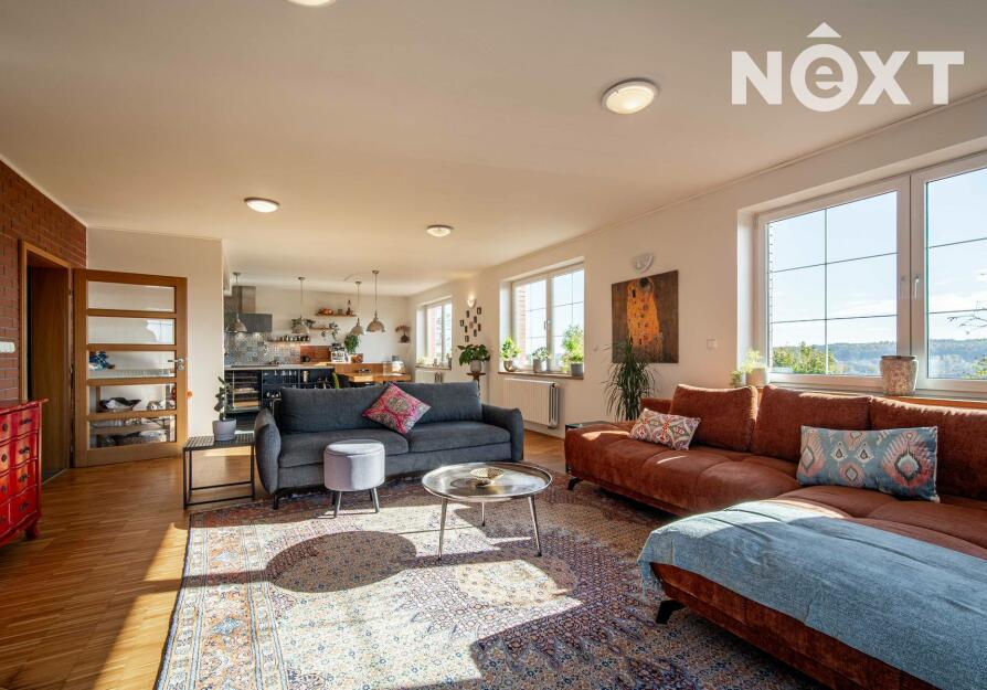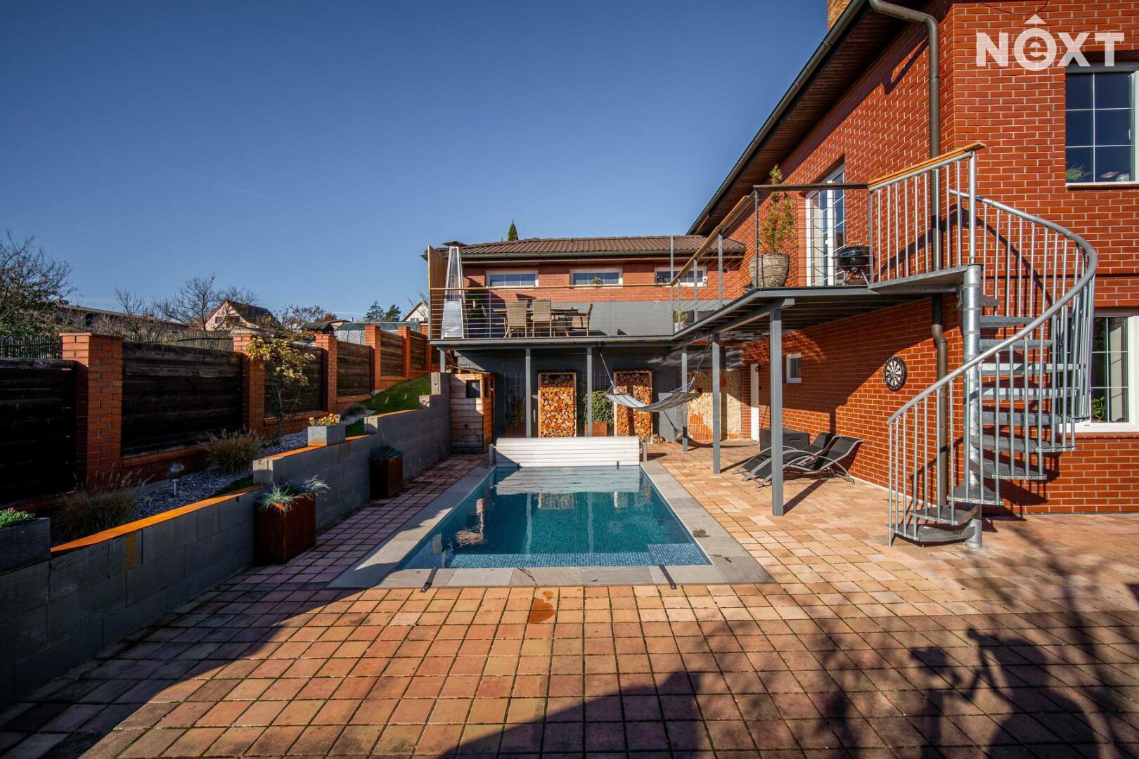 Toužíte po jedinečném bydlení, které naplňuje maximální pohodlí a dokonalé soukromí? Tento třípodlažní rodinný dům ve svahu s podlahovou plochou 348 m², na pozemku o rozloze 943 m², nabízí kombinaci moderního komfortu a přírodních krás v tiché slepé ulici městyse Mšec. Příjemné prostředí, nádherné výhledy na otevřenou krajinu a rakovnické lesy, k tomu naprosté soukromí bez okolních sousedů činí z této nemovitosti výjimečné místo pro život. Dům má elegantně řešené přízemí, které poskytuje přirozené ochlazení během horkých dnů. Nabízí dva samostatné pokoje, koupelnu se sprchovým koutem, samostatnou toaletu, prostorný obývací pokoj s kuchyní a dvěma přímými vstupy na zahradu. Praktickou stránku zajišťuje technická místnost s pračkou a sušičkou, která usnadňuje každodenní chod domácnosti. V případě potřeby lze jednoduše tento prostor oddělit od horní části domu a vznikne tak samostatná bytová jednotka s vlastním vstupem. Středobodem hlavního obytného patra je prostorný obývací pokoj s krbem, ze kterého se dostanete na terasu o ploše 36 m² s venkovním grilem a nádherným výhledem do zahrady a okolní krajiny. Tento společenský prostor je ideálním místem pro dokonalou relaxaci. Přímo navazuje na stylovou rustikální kuchyni vybavenou moderními spotřebiči, jejíž kamenné a dřevěné prvky dotvářejí útulnou atmosféru. Dále je v tomto patře prostorná kancelář, koupelna se sprchovým koutem a samostatná toaleta. Horní patro domu poskytuje velkorysou hlavní ložnici s vlastní koupelnou a šatnou, dále útulnou halu s možností posezení u TV. Také se zde nachází útočiště pro děti, které si přijdou na své v perfektně prosvětleném dětském pokoji. Toto patro je ideálním místem pro odpočinek celé rodiny a nabízí příjemné zázemí pro všechny její členy. Rozlehlá zahrada o ploše 943 m² je perfektně orientovaná a nabízí naprosté soukromí, které oceníte při koupání ve vyhřívaném bazénu tepelným čerpadlem, s protiproudem a automatickým zatahovacím systémem, při opalování se na terase nebo třeba při grilování ve venkovní udírně. Zahrada je místem, kde si najdete svůj kousek klidu pro relaxaci nebo rodinná setkání. Na dům navazuje také prostorná dvojgaráž o rozloze 56 m², která může sloužit nejen pro parkování Vašich vozidel, ale i jako velkorysá dílna nebo prostor pro vaše koníčky. Vytápění domu je zajištěno moderním kotlem na tuhá paliva s regulací Siemens. V případě zájmu je možné s majiteli domluvit přestavbu na FVE s tepelným čerpadlem. Mšec je ideální lokalitou pro sportovní a relaxační vyžití, v okolí najdete nespočet turistických tras a cyklostezek. Výborná dopravní dostupnost - do Prahy cca 25 min., Slané 15 min. Nové Strašecí do 10 min. Přímo v obci se nachází ZŠ, MŠ, pošta, obchody, restaurace, ale také kostel, či zámek. Tento dům je příležitostí pro náročné zájemce, kteří hledají ideální rodinné sídlo nebo vícegenerační bydlení. Přijďte se přesvědčit. Cena je k jednání. Pro komunikaci uvádějte evidenční číslo zakázky N116665.