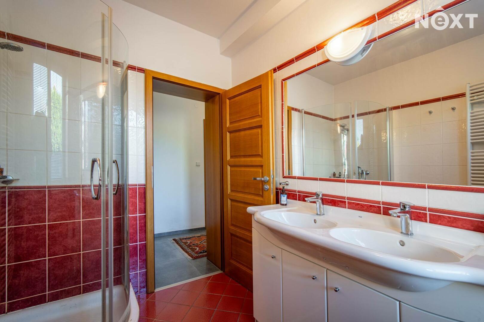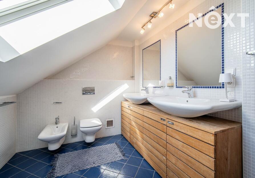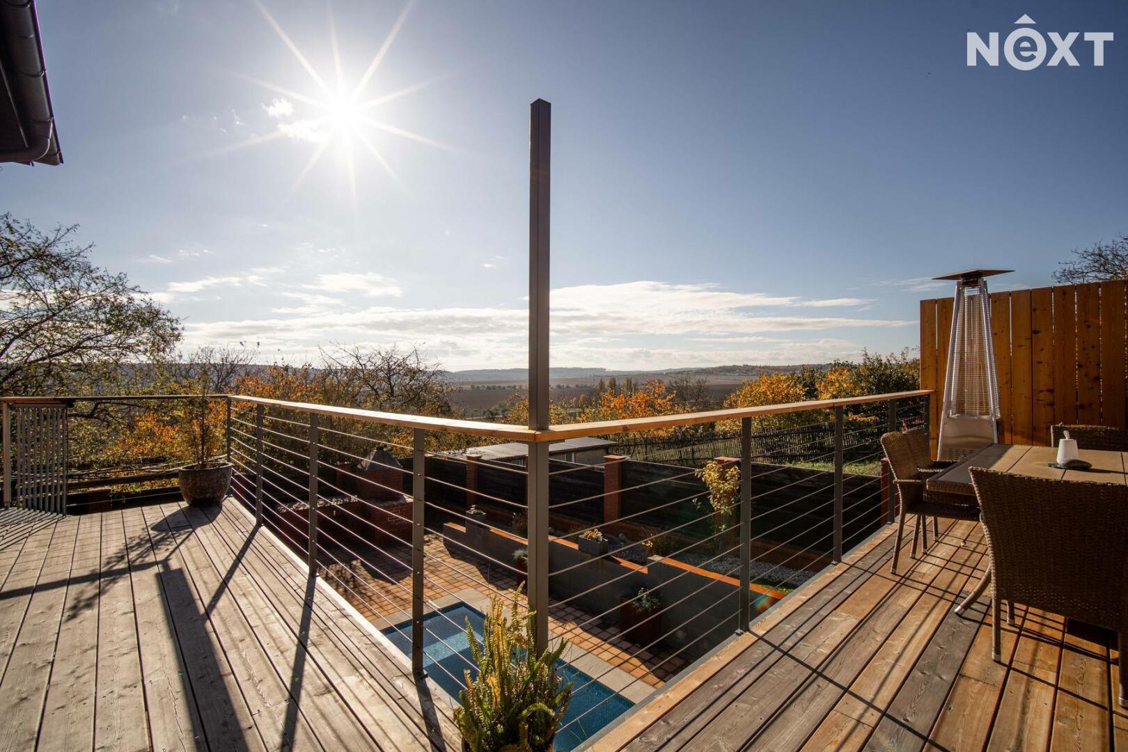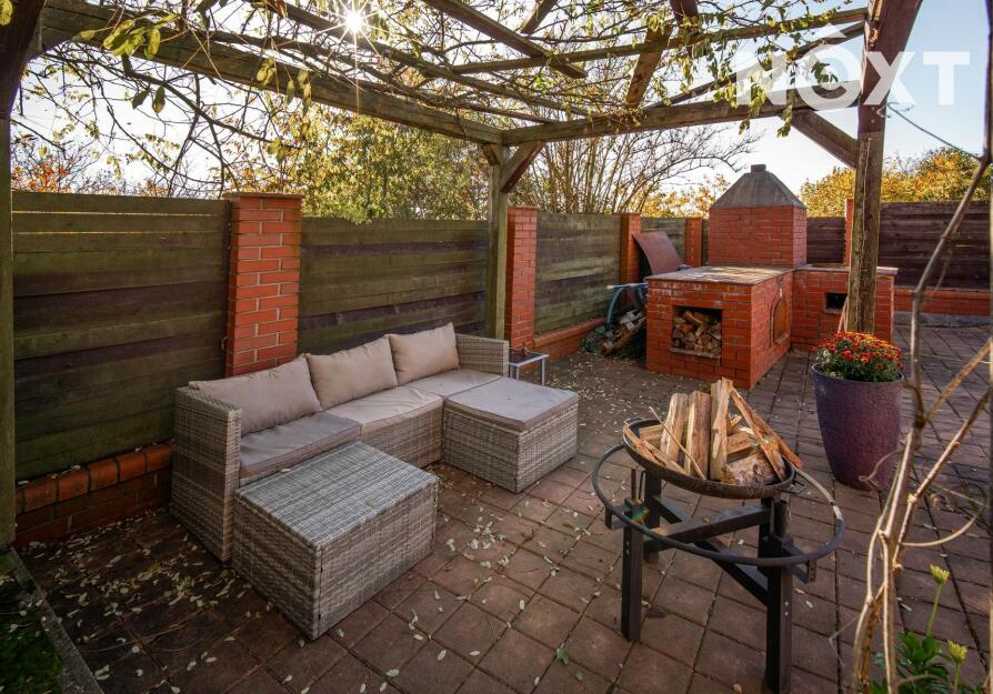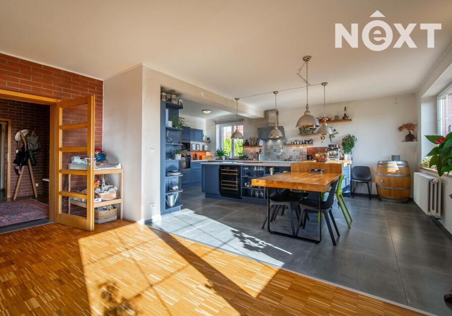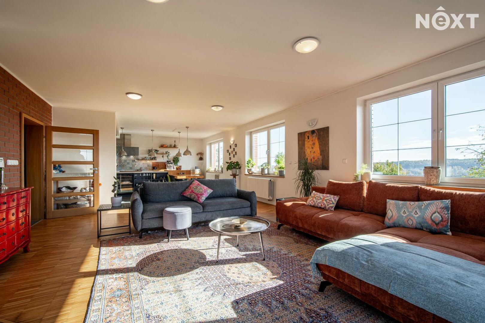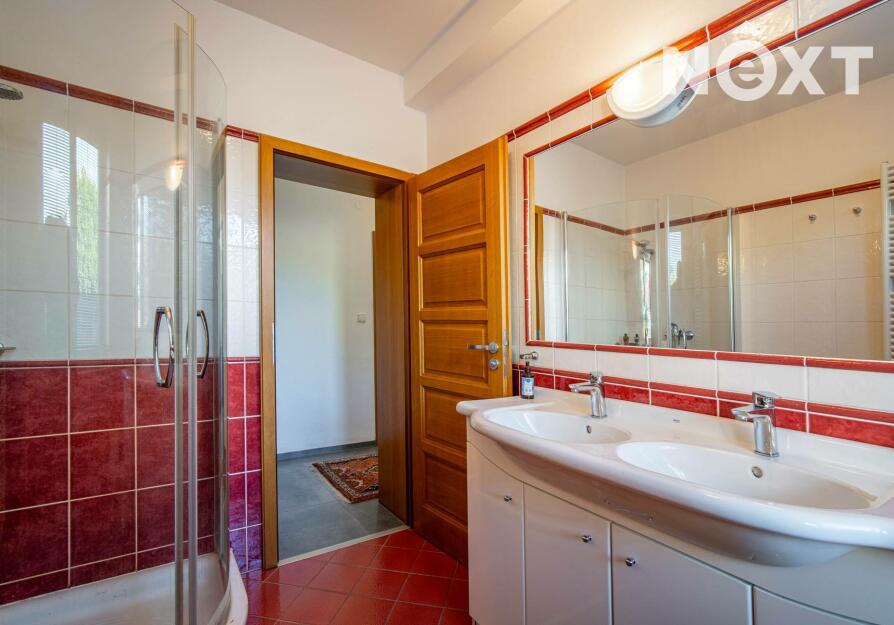 Toužíte po jedinečném bydlení, které naplňuje maximální pohodlí a dokonalé soukromí? Tento třípodlažní rodinný dům ve svahu s podlahovou plochou 348 m², na pozemku o rozloze 943 m², nabízí kombinaci moderního komfortu a přírodních krás v tiché slepé ulici městyse Mšec. Příjemné prostředí, nádherné výhledy na otevřenou krajinu a rakovnické lesy, k tomu naprosté soukromí bez okolních sousedů činí z této nemovitosti výjimečné místo pro život. Dům má elegantně řešené přízemí, které poskytuje přirozené ochlazení během horkých dnů. Nabízí dva samostatné pokoje, koupelnu se sprchovým koutem, samostatnou toaletu, prostorný obývací pokoj s kuchyní a dvěma přímými vstupy na zahradu. Praktickou stránku zajišťuje technická místnost s pračkou a sušičkou, která usnadňuje každodenní chod domácnosti. V případě potřeby lze jednoduše tento prostor oddělit od horní části domu a vznikne tak samostatná bytová jednotka s vlastním vstupem. Středobodem hlavního obytného patra je prostorný obývací pokoj s krbem, ze kterého se dostanete na terasu o ploše 36 m² s venkovním grilem a nádherným výhledem do zahrady a okolní krajiny. Tento společenský prostor je ideálním místem pro dokonalou relaxaci. Přímo navazuje na stylovou rustikální kuchyni vybavenou moderními spotřebiči, jejíž kamenné a dřevěné prvky dotvářejí útulnou atmosféru. Dále je v tomto patře prostorná kancelář, koupelna se sprchovým koutem a samostatná toaleta. Horní patro domu poskytuje velkorysou hlavní ložnici s vlastní koupelnou a šatnou, dále útulnou halu s možností posezení u TV. Také se zde nachází útočiště pro děti, které si přijdou na své v perfektně prosvětleném dětském pokoji. Toto patro je ideálním místem pro odpočinek celé rodiny a nabízí příjemné zázemí pro všechny její členy. Rozlehlá zahrada o ploše 943 m² je perfektně orientovaná a nabízí naprosté soukromí, které oceníte při koupání ve vyhřívaném bazénu tepelným čerpadlem, s protiproudem a automatickým zatahovacím systémem, při opalování se na terase nebo třeba při grilování ve venkovní udírně. Zahrada je místem, kde si najdete svůj kousek klidu pro relaxaci nebo rodinná setkání. Na dům navazuje také prostorná dvojgaráž o rozloze 56 m², která může sloužit nejen pro parkování Vašich vozidel, ale i jako velkorysá dílna nebo prostor pro vaše koníčky. Vytápění domu je zajištěno moderním kotlem na tuhá paliva s regulací Siemens. V případě zájmu je možné s majiteli domluvit přestavbu na FVE s tepelným čerpadlem. Mšec je ideální lokalitou pro sportovní a relaxační vyžití, v okolí najdete nespočet turistických tras a cyklostezek. Výborná dopravní dostupnost - do Prahy cca 25 min., Slané 15 min. Nové Strašecí do 10 min. Přímo v obci se nachází ZŠ, MŠ, pošta, obchody, restaurace, ale také kostel, či zámek. Tento dům je příležitostí pro náročné zájemce, kteří hledají ideální rodinné sídlo nebo vícegenerační bydlení. Přijďte se přesvědčit. Cena je k jednání. Pro komunikaci uvádějte evidenční číslo zakázky N116665.