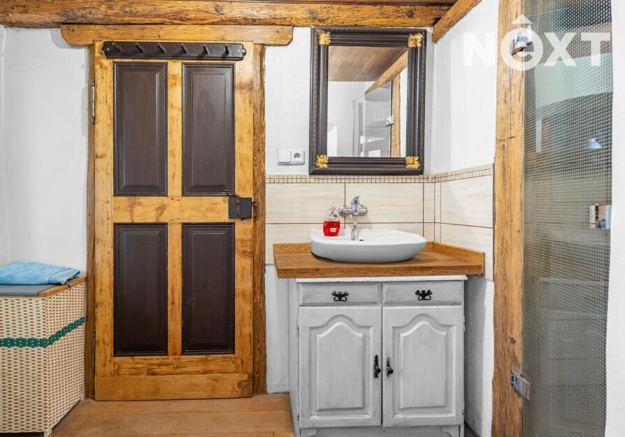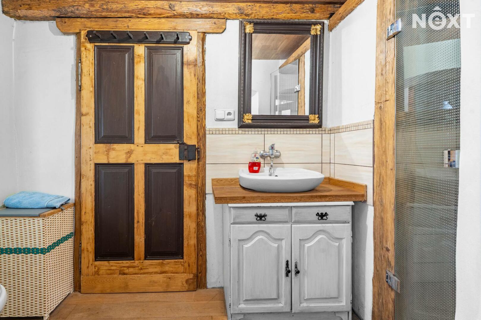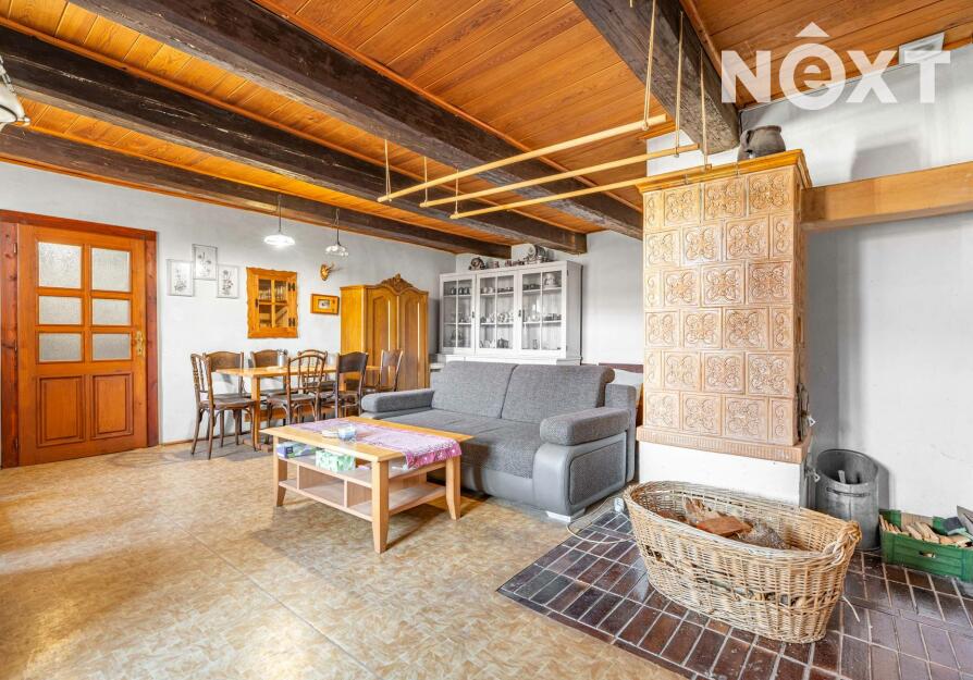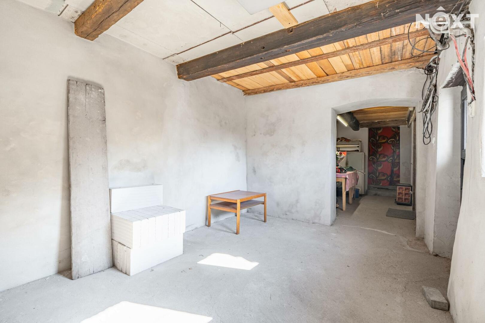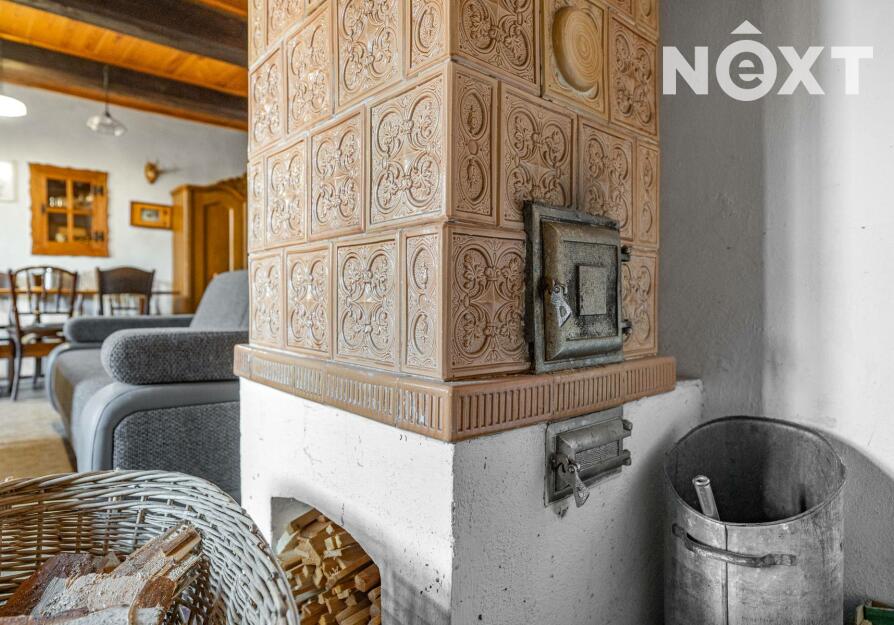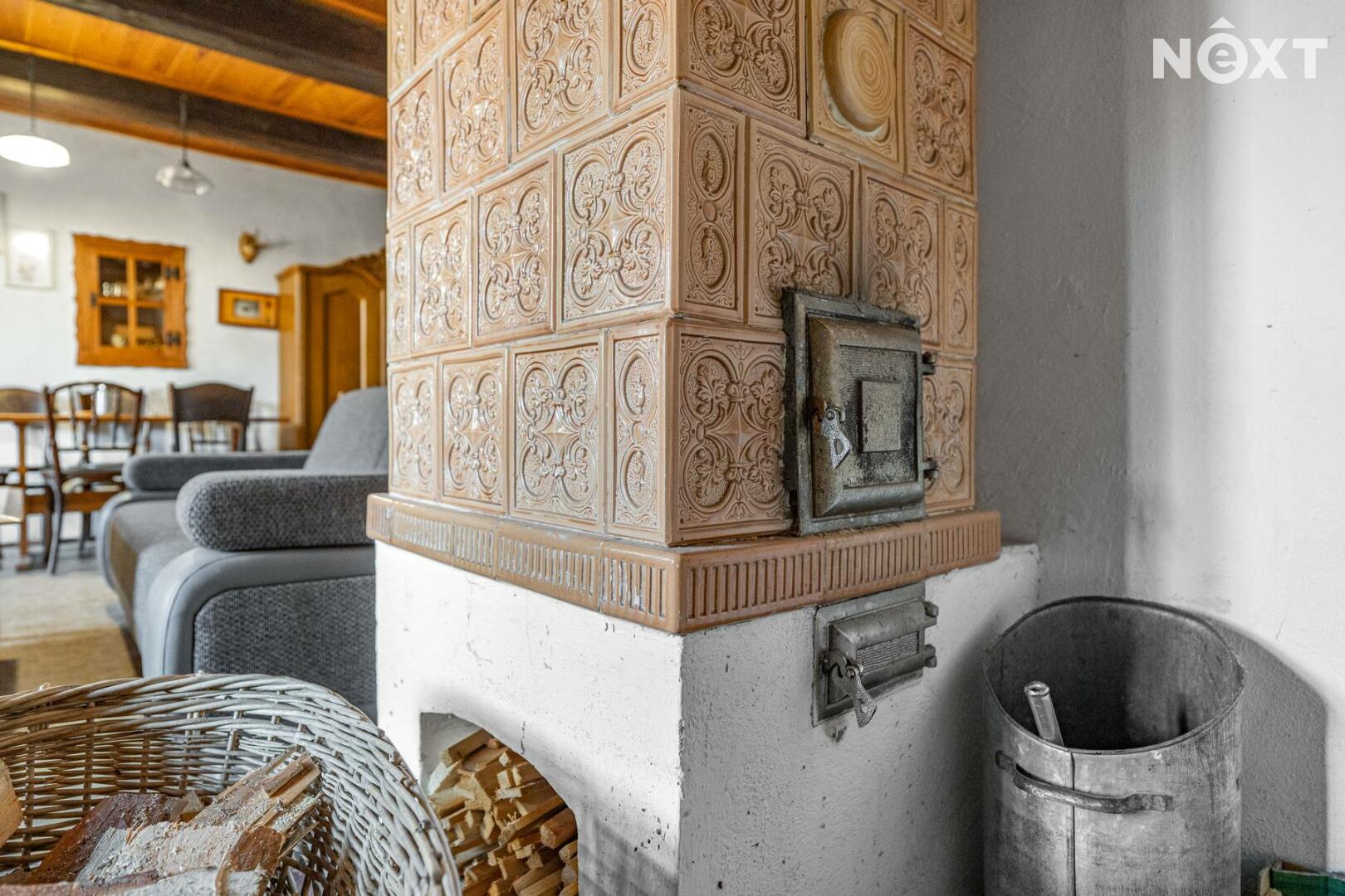 Přízemí v rustikálním stylu, které je plně funkční a kde se o teplo starají kachlová kamna. Také zde najdete malou kuchyňku, koupelnu s toaletou a další místnosti, jejích určení už bude na vás.